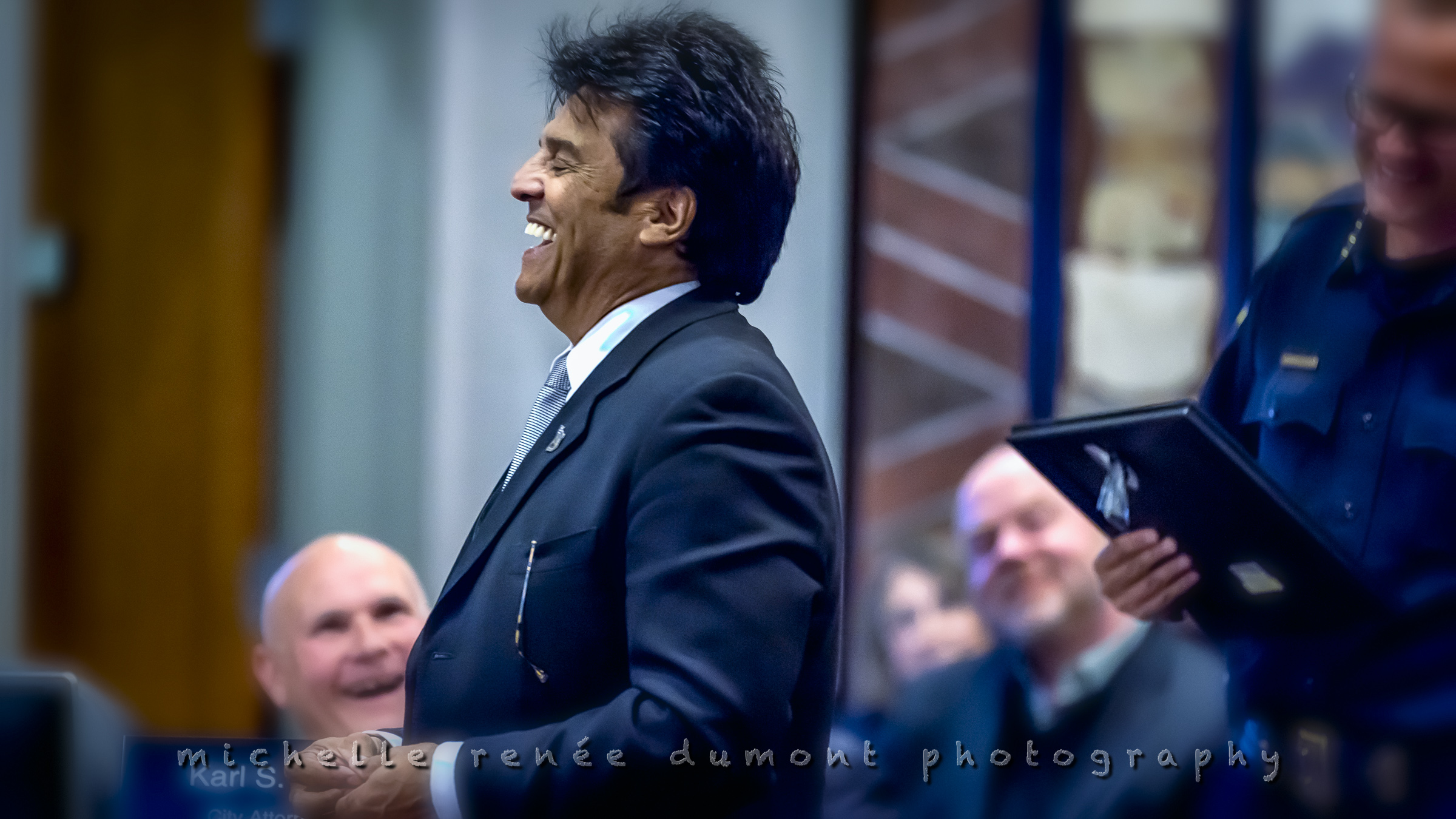Erik Estrada of CHiPs fame, who is also the Grand Marshall for Reno’s Street Vibrations, addressed the City Council during today’s city council meeting. Of course everyone was star struck and after he handed out a photo of himself, posed for a group photo.