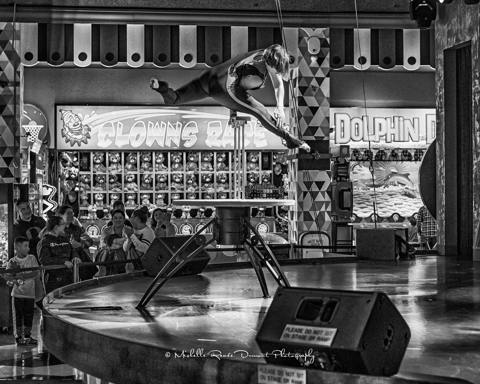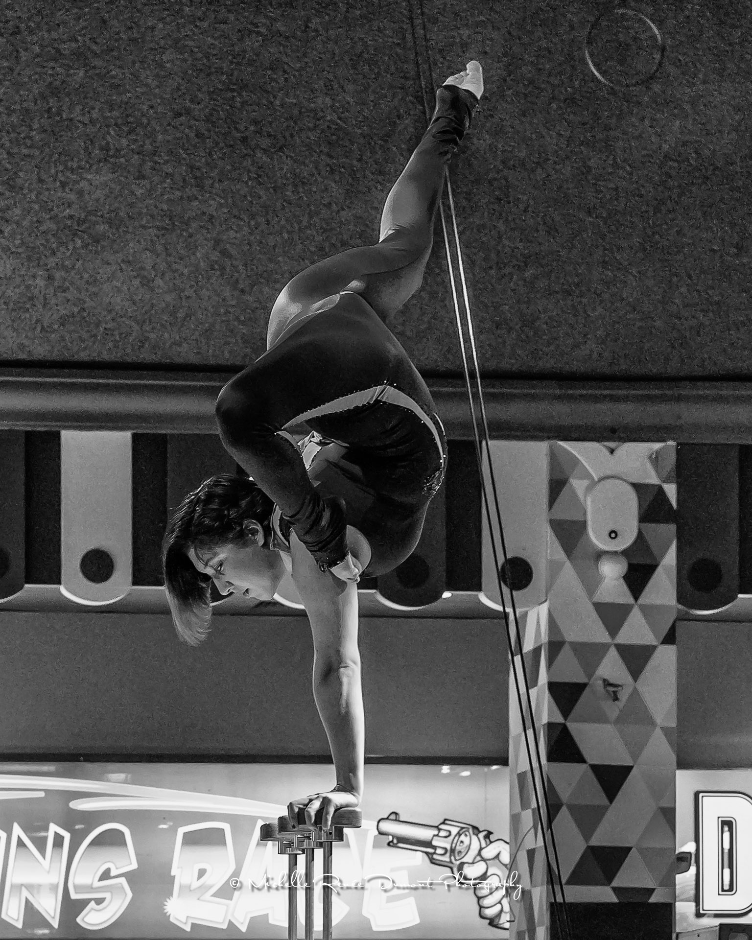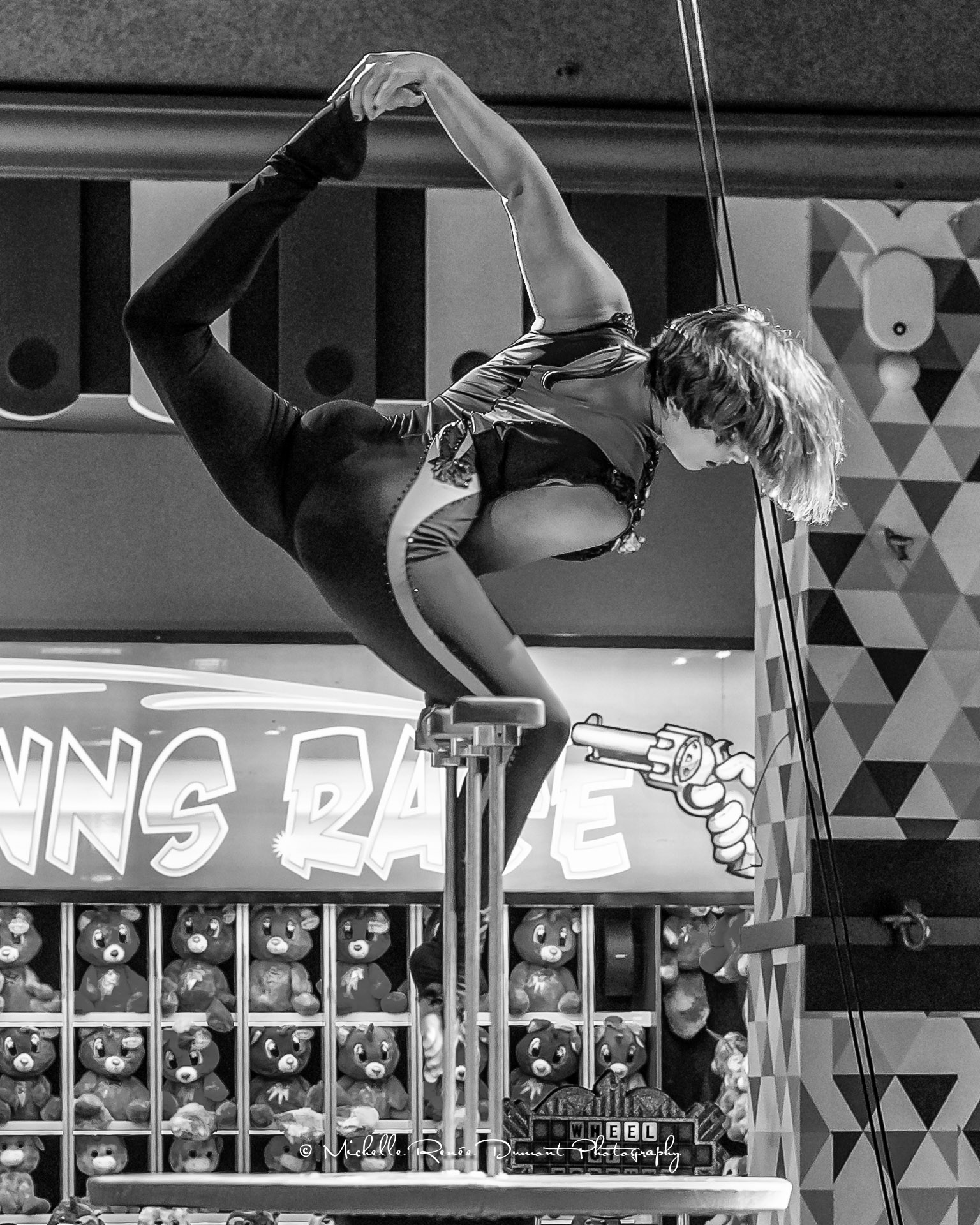 A different circus performer showing her craft at the Circus Circus Casino Arcade. She happens to be the daughter of Goulia and Nelson, also Circus performers at Circus Circus Reno