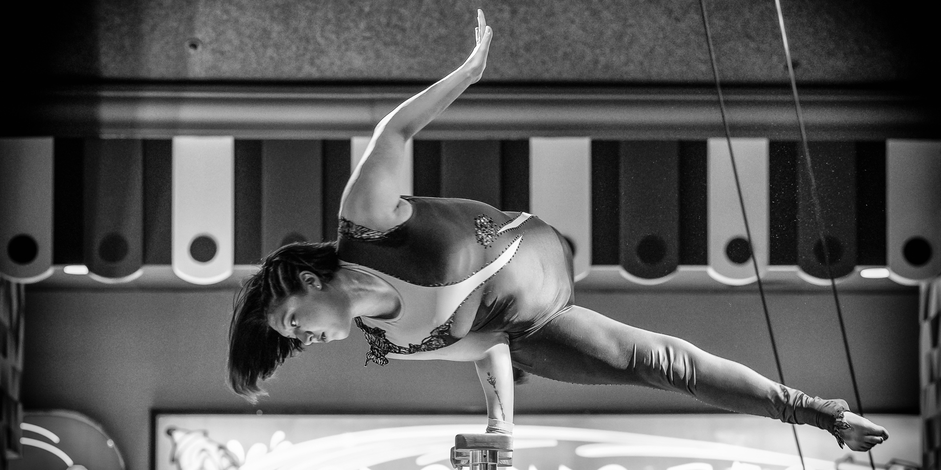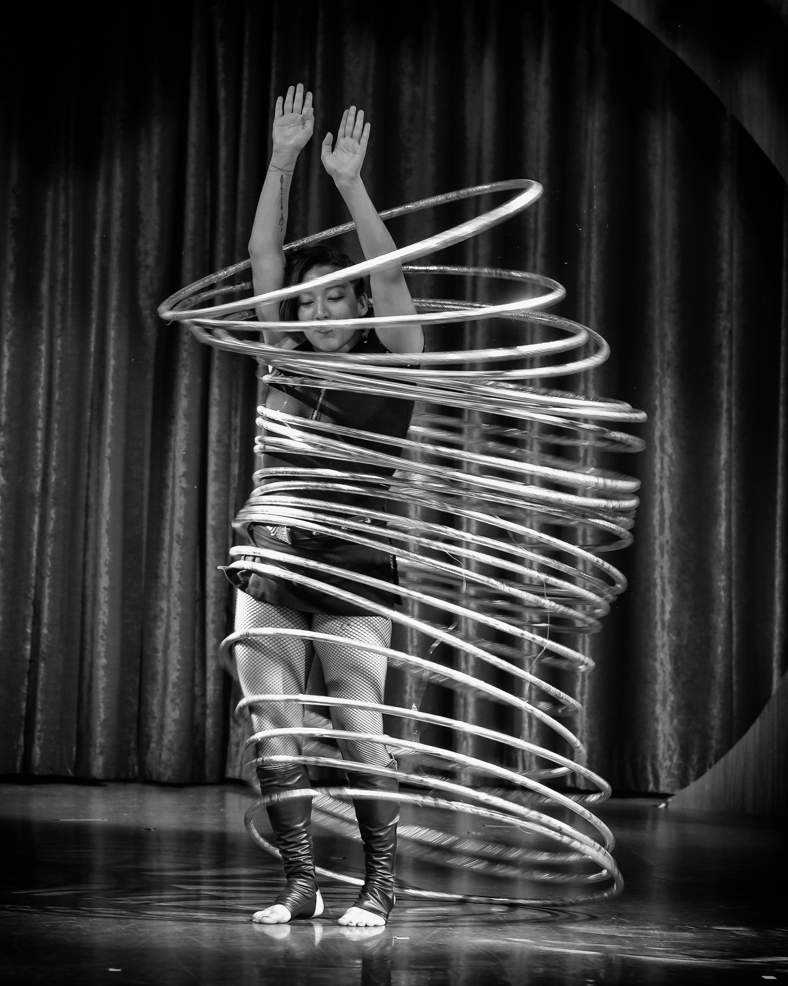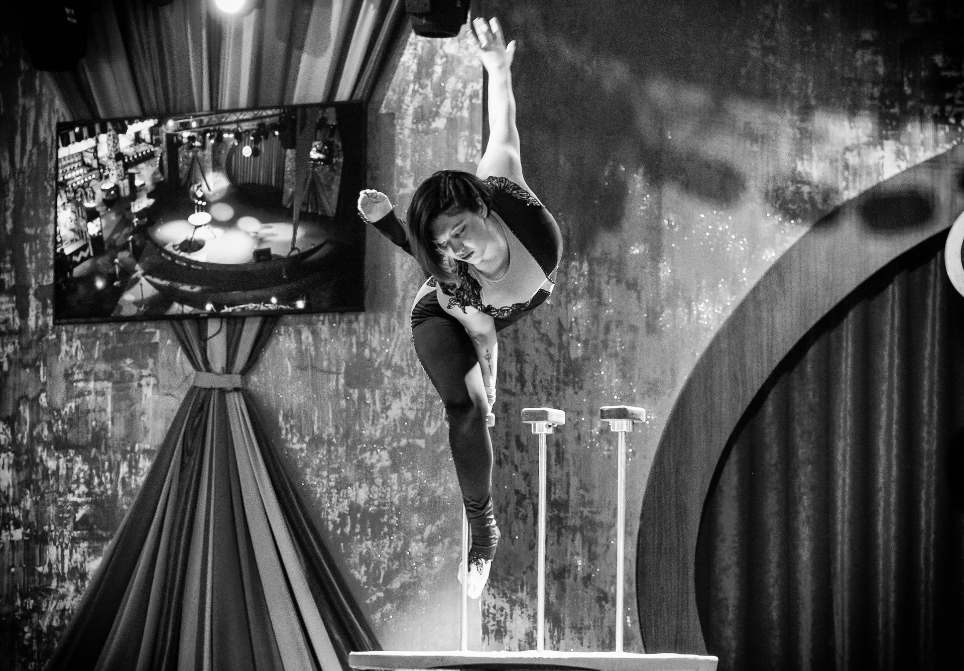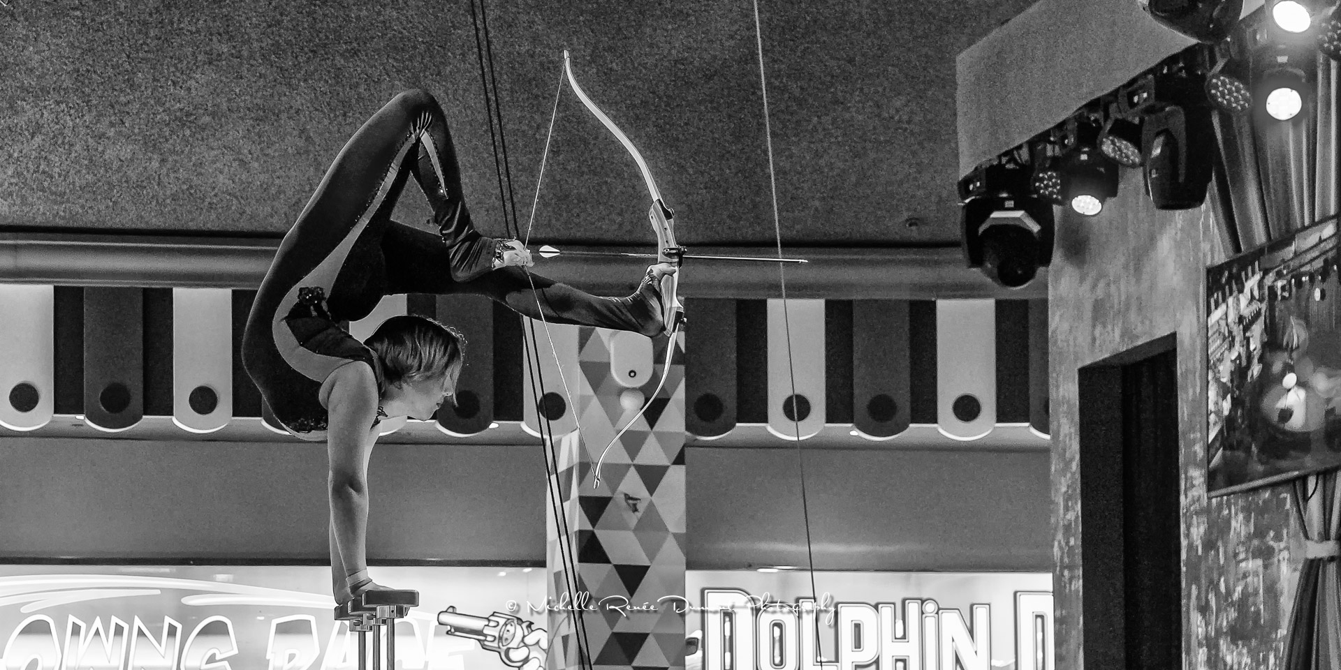 A different circus performer showing her craft at the Circus Circus Casino Arcade. She happens to be the daughter of Goulia and Nelson, also Circus performers at Circus Circus Reno
