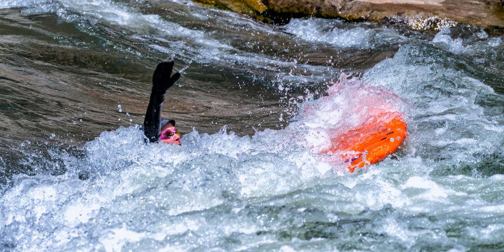 This river surfer almost made it. After numerous attempts to stand up on her board, she eventually gave up. The river flow just wasn’t ideal for surfing…