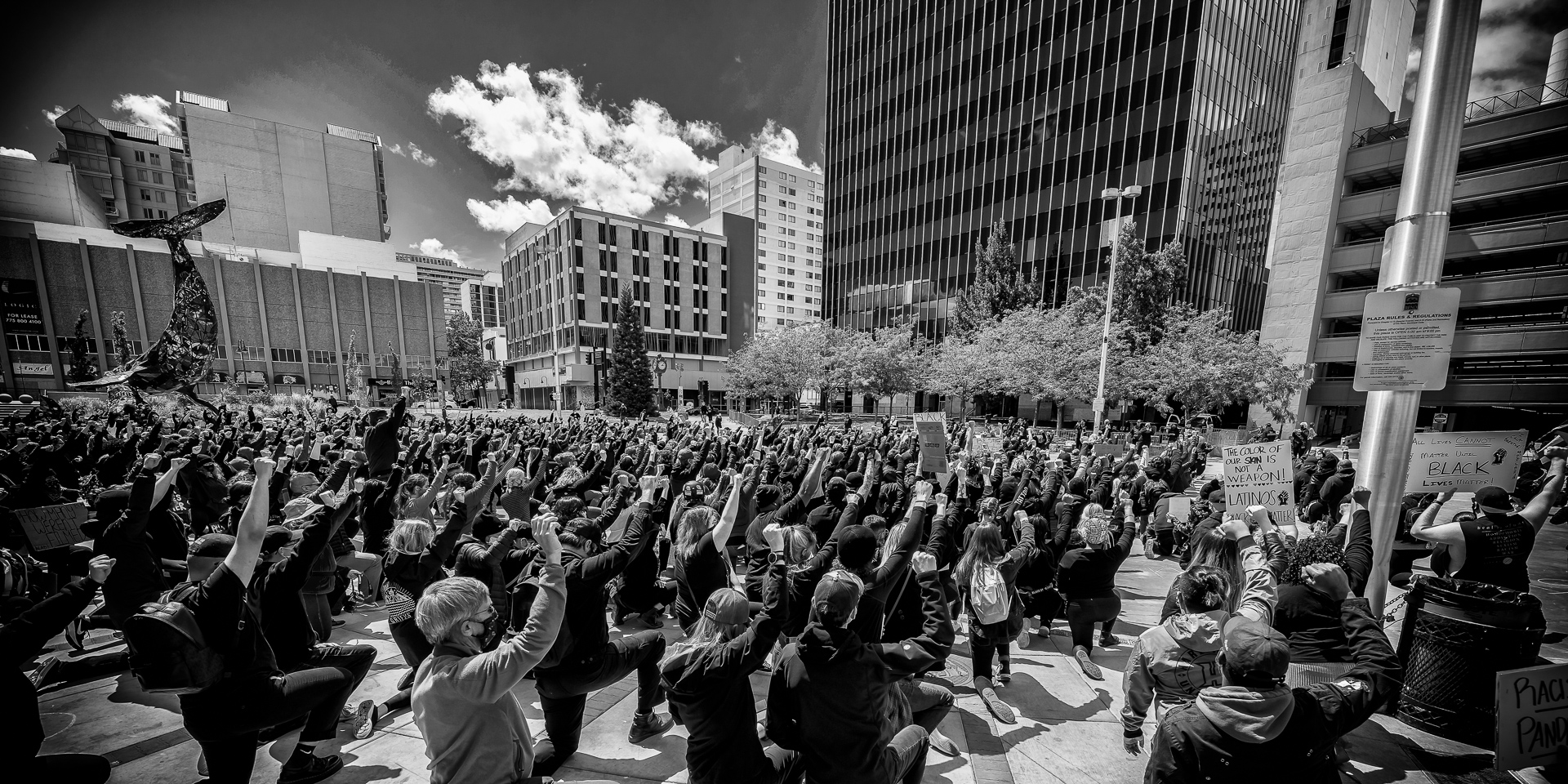 There was a tremendous turnout for this evenings peaceful vigil for George Floyd at the Downtown City Plaza, organized by the local Black Lives Matter chapter. #BLM #BlackLivesMatter #GeorgeFloyd