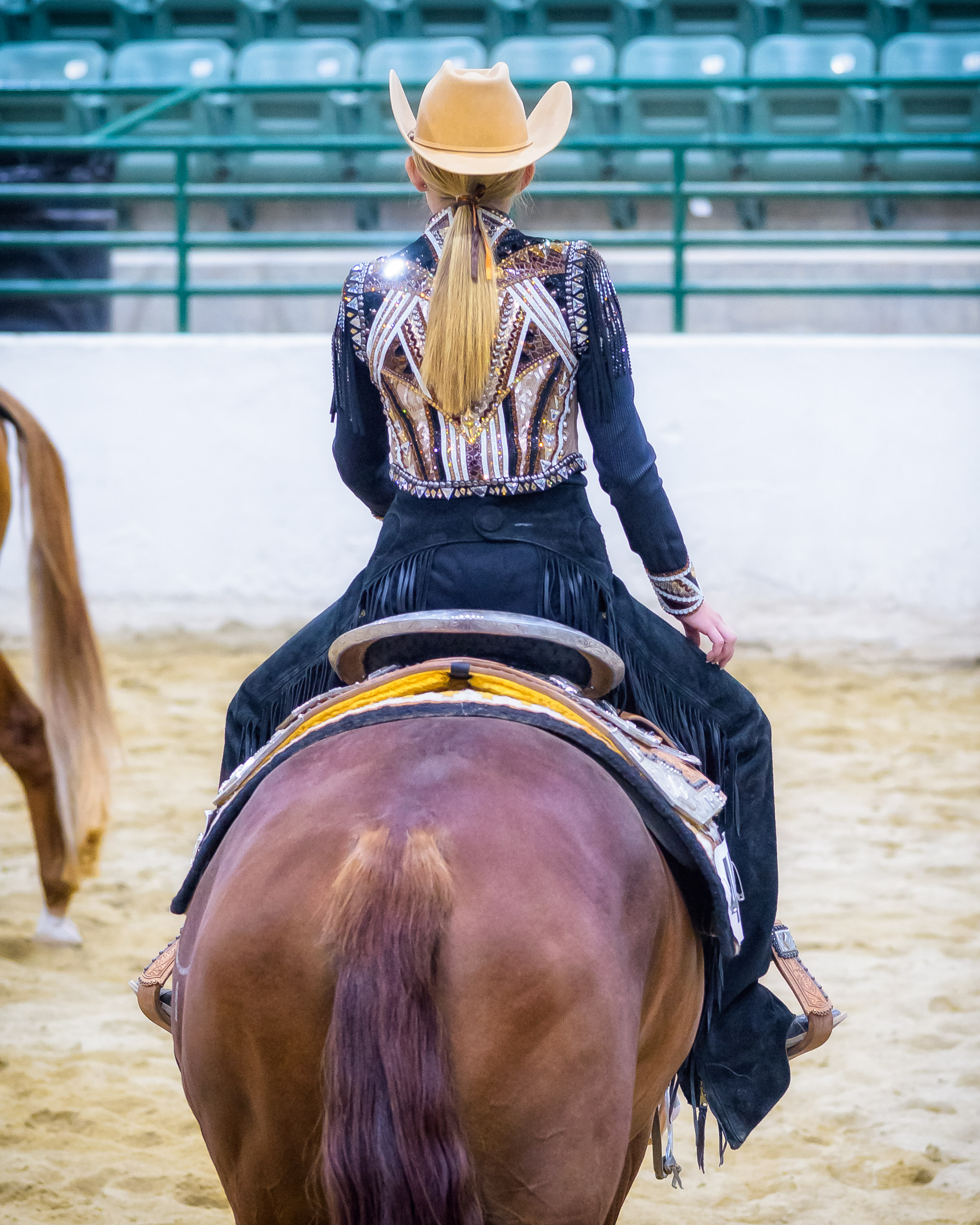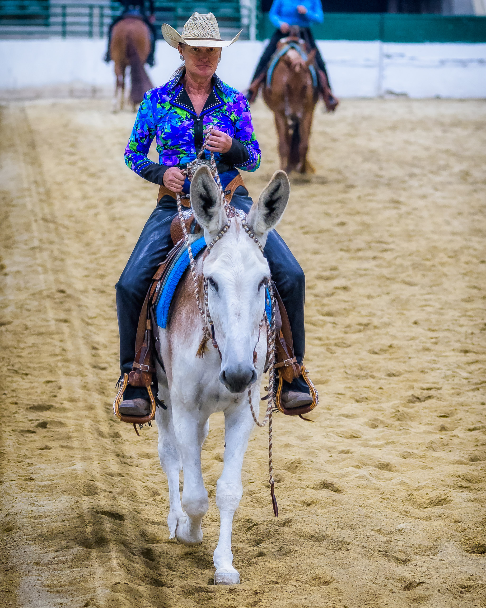 There was a lot of Lopin, Jogging, Trotting, and Walking going on at the Goldmine Battle of the Breeds horse competition this weekend at the Reno Sparks Livestock Events Center. Among the many equines was a Donkey, a cute and popular member of the competition. My images are centered on the seriousness of the riders and their outfits, and that quarter pint in the saddle in the first image. Isn’t she a doll?