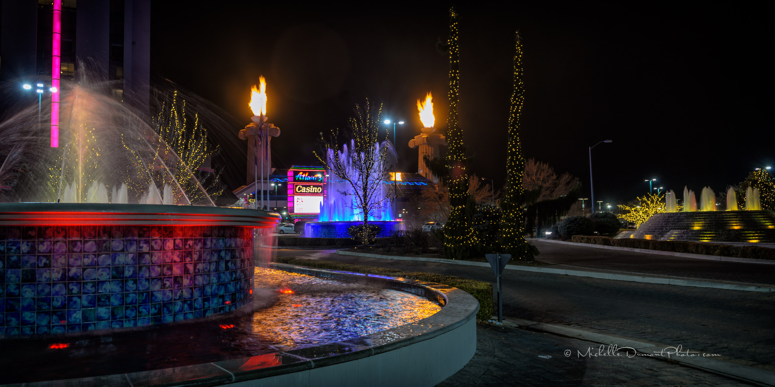 Went to capture some long exposure shots of the water fountains that light up at night. But then the bonus shot was the lighting of the torches…