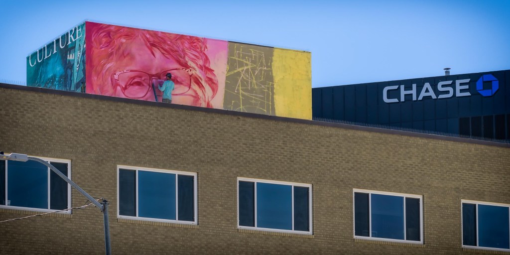 Reno’s own, artist Erik Burke, has been busy with this realistic looking mural. This one is at the top of a downtown building, far away from the ever present taggers.