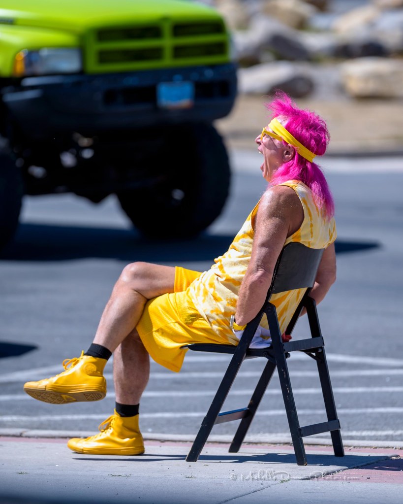 I don’t think anyone can get any more colorful than this guy, who is normally dancing for passersby to his loud boombox music. He definitely gets people’s attention, even when he’s resting between sets…
