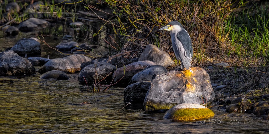 It’s been a while since both Night Herons have found their way to the downtown area, but this evening was my lucky day. They were on opposite sides of the river looking for that elusive meal…