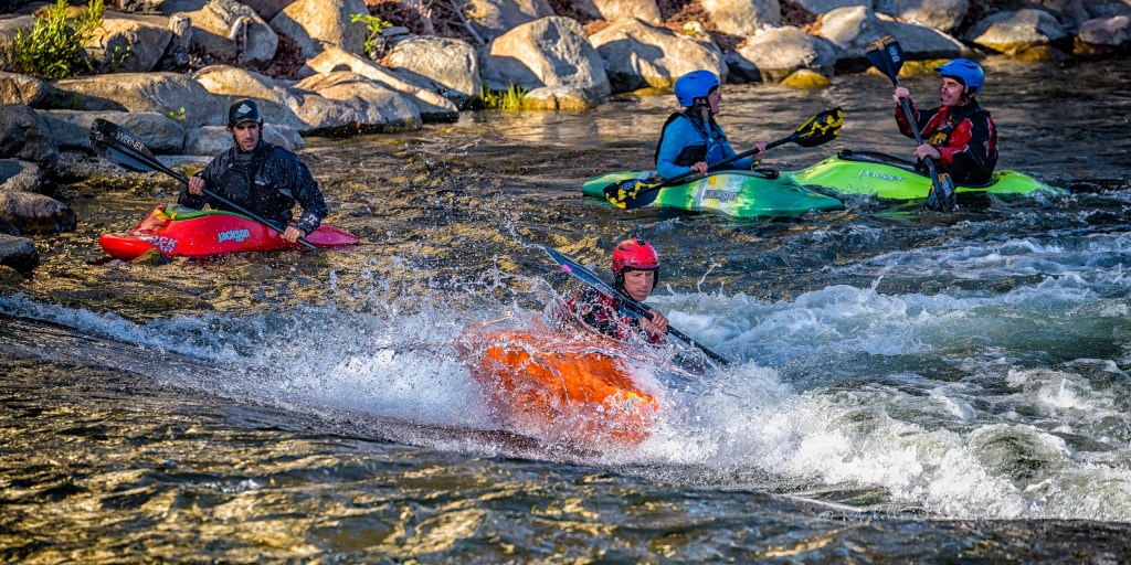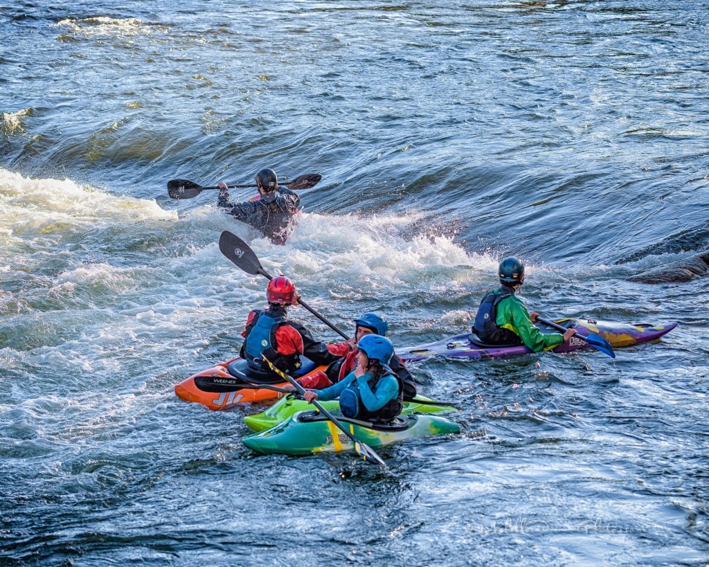 One of my favorite subjects to capture with my 300mm lens are the kayakers on the river. I love capturing the facial expressions and stopping the action of the water swirling around them. There was a small group this evening attempting to practice their tricks in the rapids