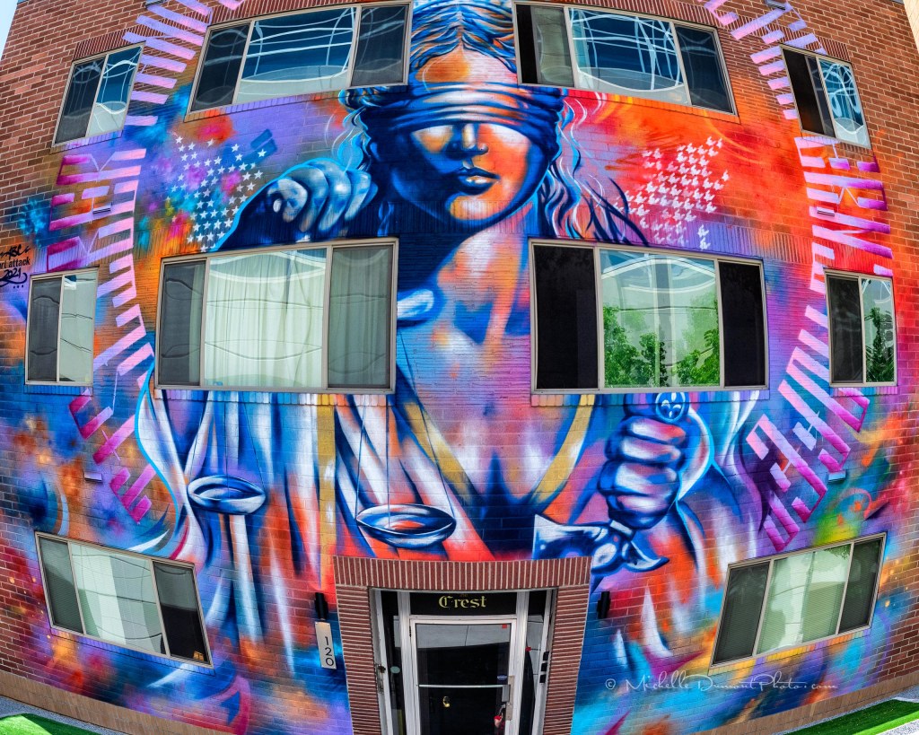 I wanted to get a shot of this mural before the afternoon sun cast it’s shadows upon it. Shown here optically changed to appear like it was shot with a fisheye lens