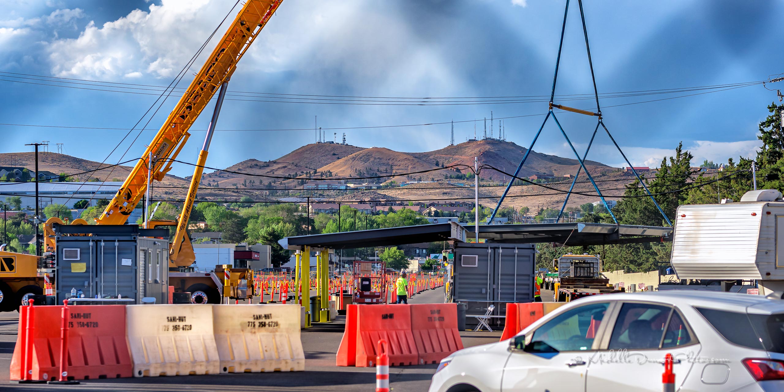 Following months of, first testing, then vaccinating thousands for the Coronavirus, workmen were busy on Friday evening dismantling the semi-permanent vaccination station structure to make way for upcoming events on the Reno Sparks Livestock Events Center grounds. While this vital service will be continued elsewhere, soon this immediate area will be occupied by horse trailers and RV’s for the Reno Rodeo.