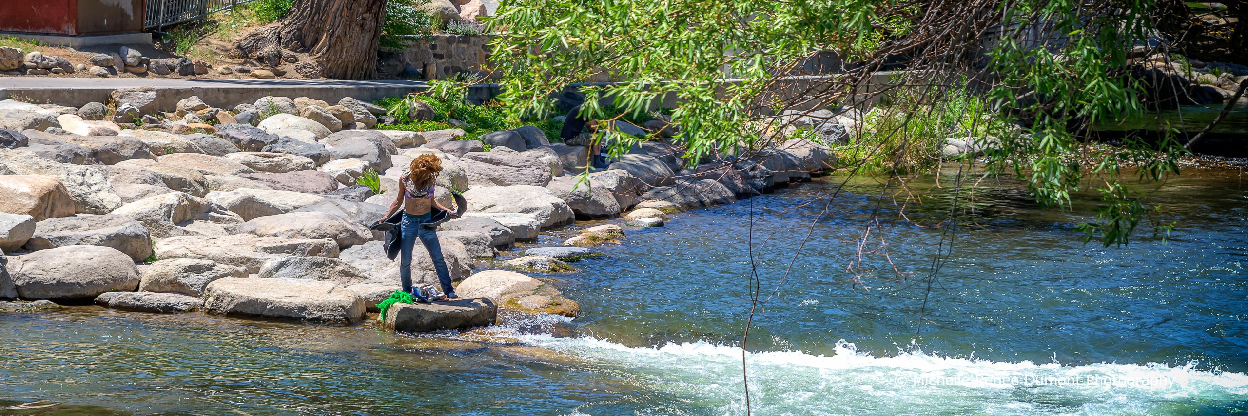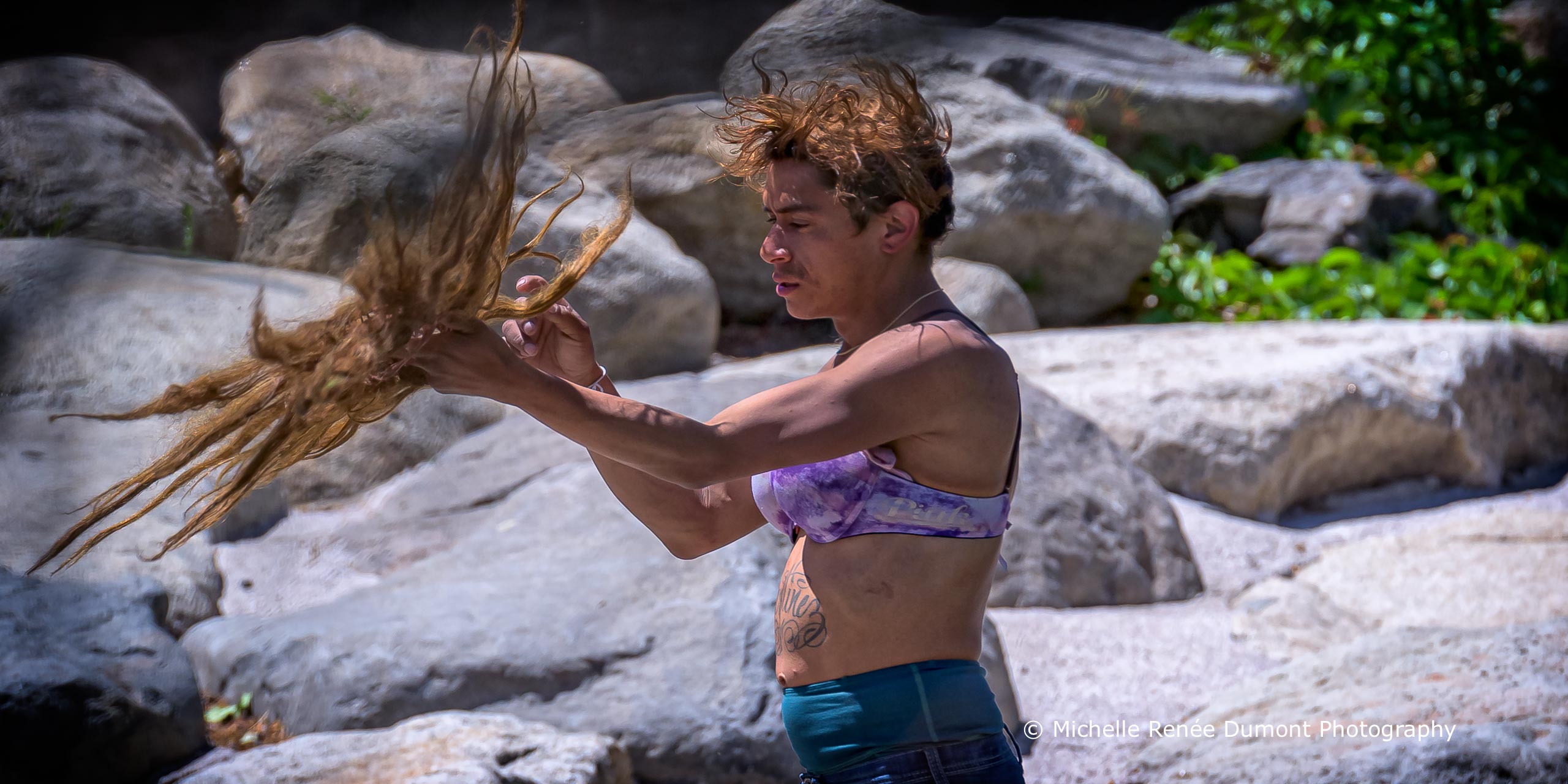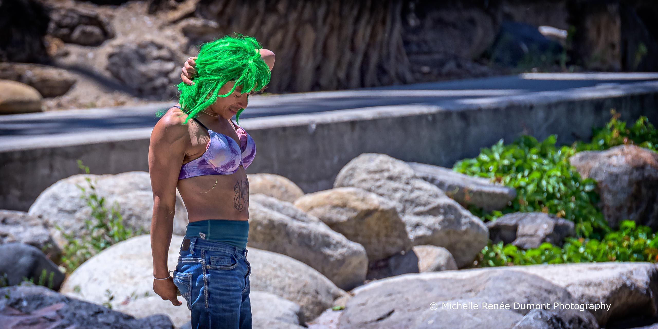 I photograph just about everything. The good, the bad, and sometimes the ugly. I photographed a suicidal man a few years back as he jumped from 5 story parking garage onto the pavement below. Needless to say, he didn’t survive. An event that still haunts me to this day as I walk past the spot he landed. This series of images is not along those extreme lines of mental illness, but it is a mental illness on the rise here on the streets. People who project their anger with the world, appearing to yell at something or someone which is only in their mind. This very animated person caught my attention when he was yelling and seemingly having a meltdown on the bank of the river. I guess he couldn’t decide which wig to wear