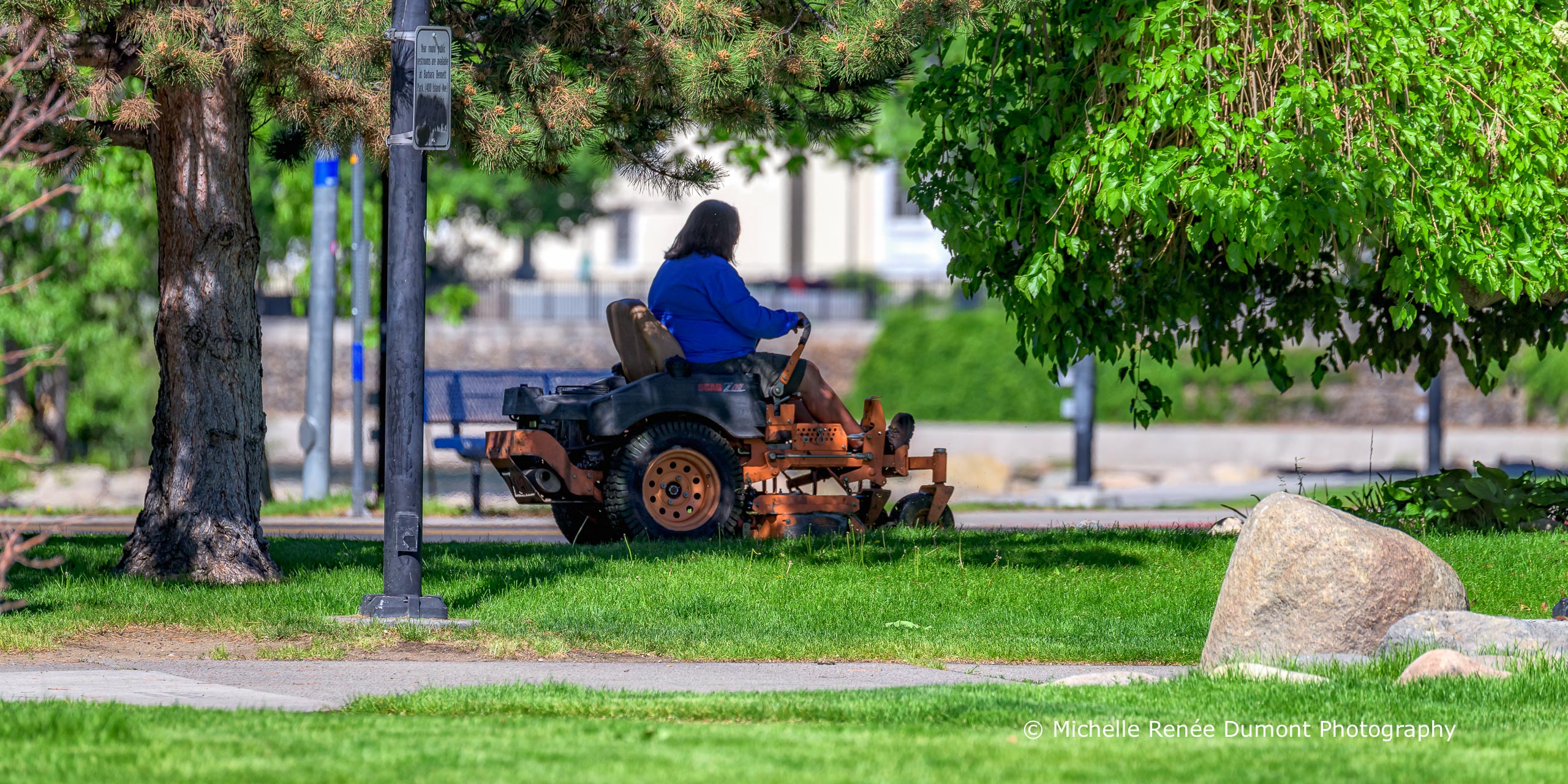 Members of Reno’s Parks & Recreation crew were out grooming the grassy areas of Wingfield Park this AM. Can’t beat the aroma of freshly mowed grass