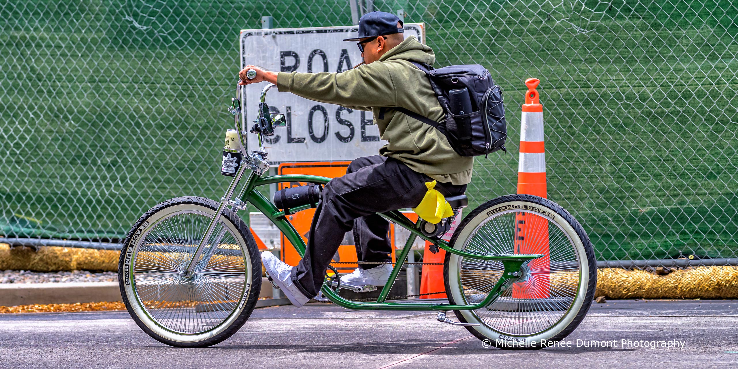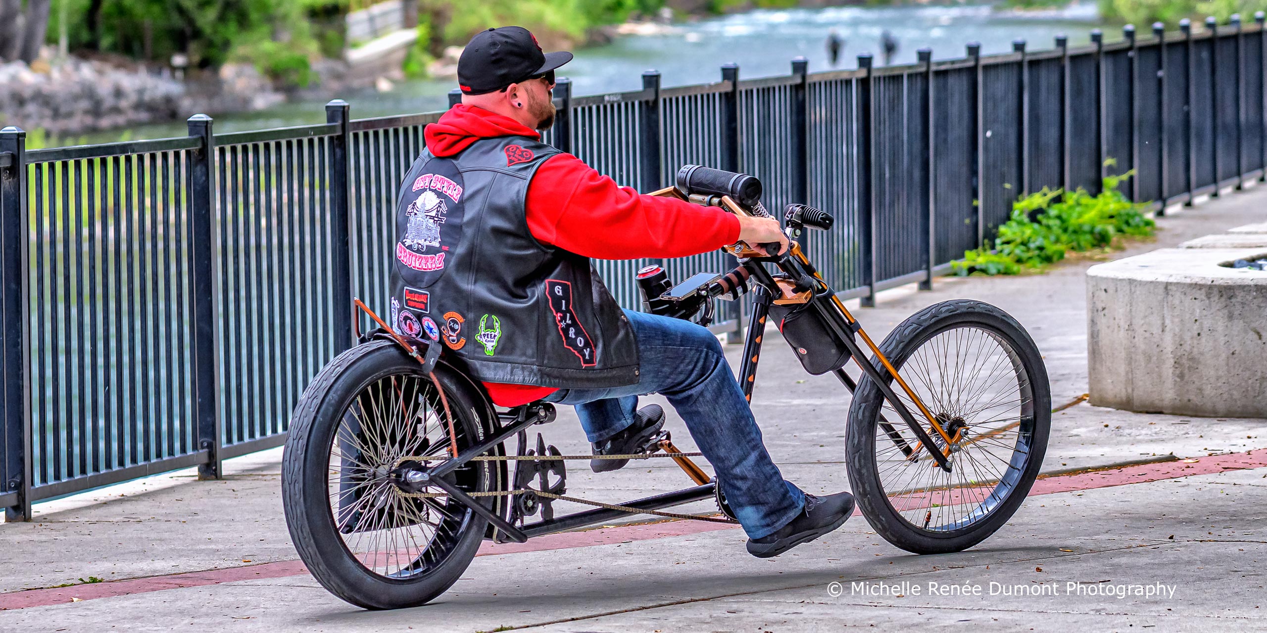 Even though the weather was atrocious today, cold and rainy with the occasional snow shower, there were a lot of people out enjoying the fresh air. The following are a few of the images I shot while on my own fresh air walk. From a bicycle gang (yes, a gang from Gilroy, CA wearing their gang vests riding their low-rider bicycles), to a group walking their dogs along the river, to fishermen and their prize catch, to the ever present kayaker