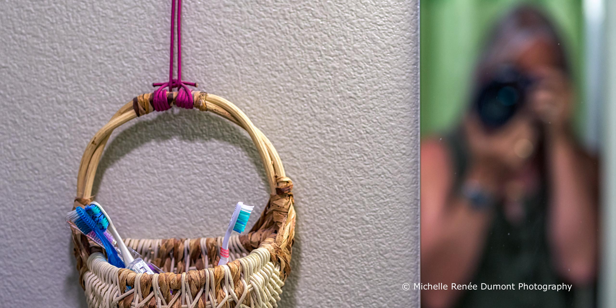 I shoot strictly with Sigma lenses. The Art series lenses allows for fine tuning the focus points by accessing the firmware. I was noticing an issue with the focusing point on my 85mm recently, so I made an adjustment. While testing the adjustment in my well lit bathroom, I happened to notice, in processing the image, my reflection in the mirror, in a perfect bokeh blur….