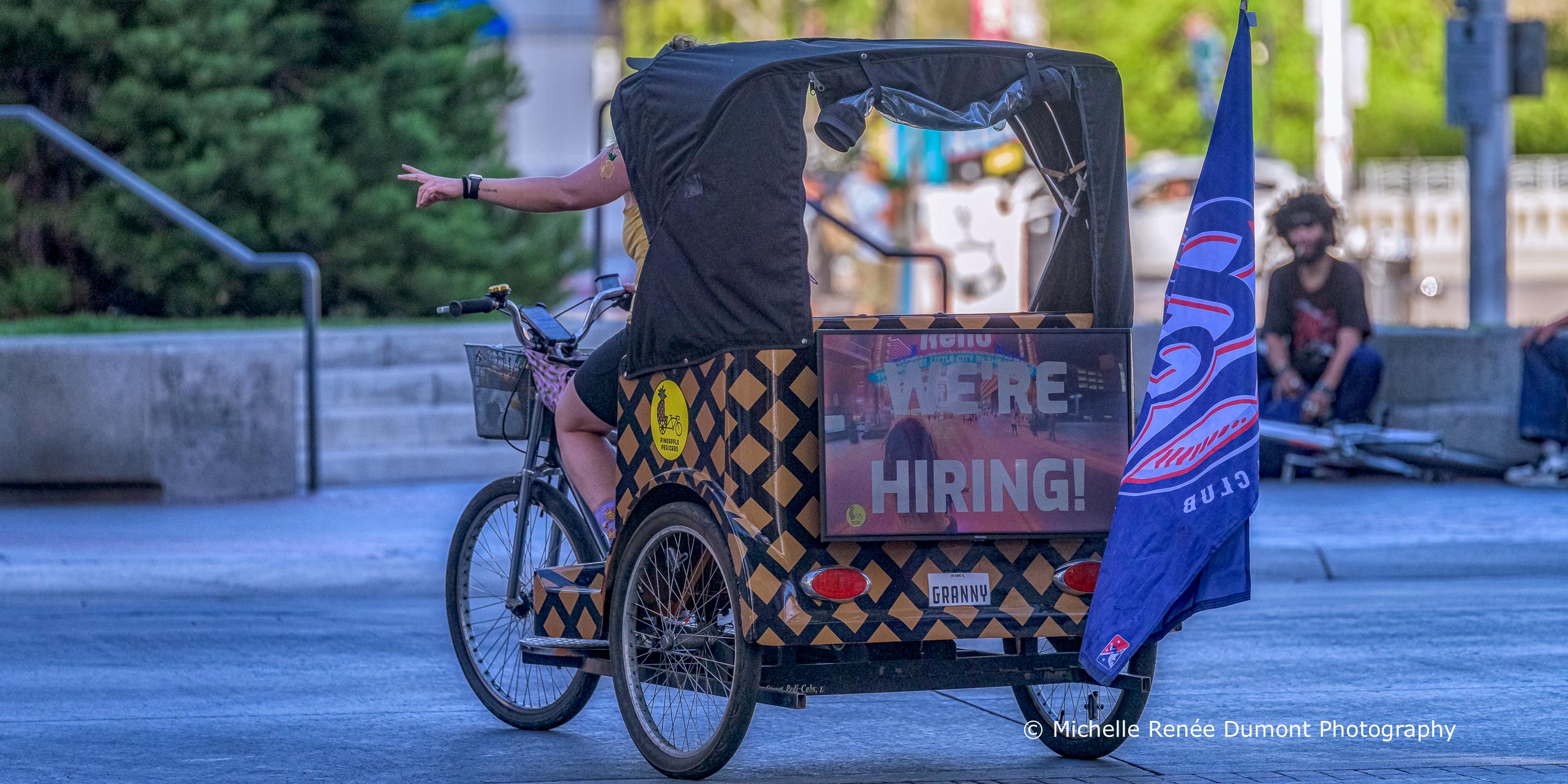Even the Pedicab company is advertising for drivers of their rickshaw style bicycle cabs