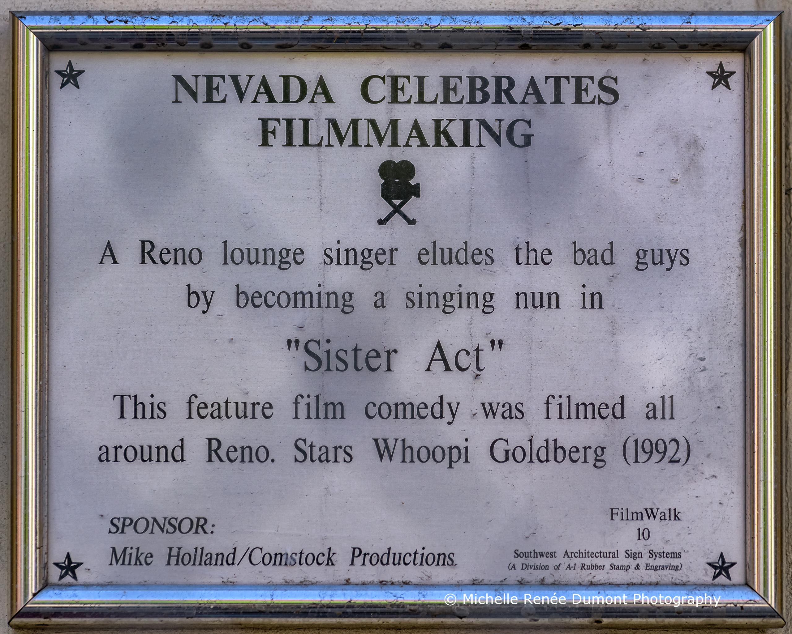 Are people stealing the celebrity hand print tiles from the outside walls of the now closed Planet Hollywood restaurant in Reno? Located in a corner of the now closed Harrah’s Casino, signs of the once popular restaurant are slowly disappearing. These are just a few of the remaining tiles with what appear to be hand prints left by celebrities and two plaques commemorating movies filmed locally.