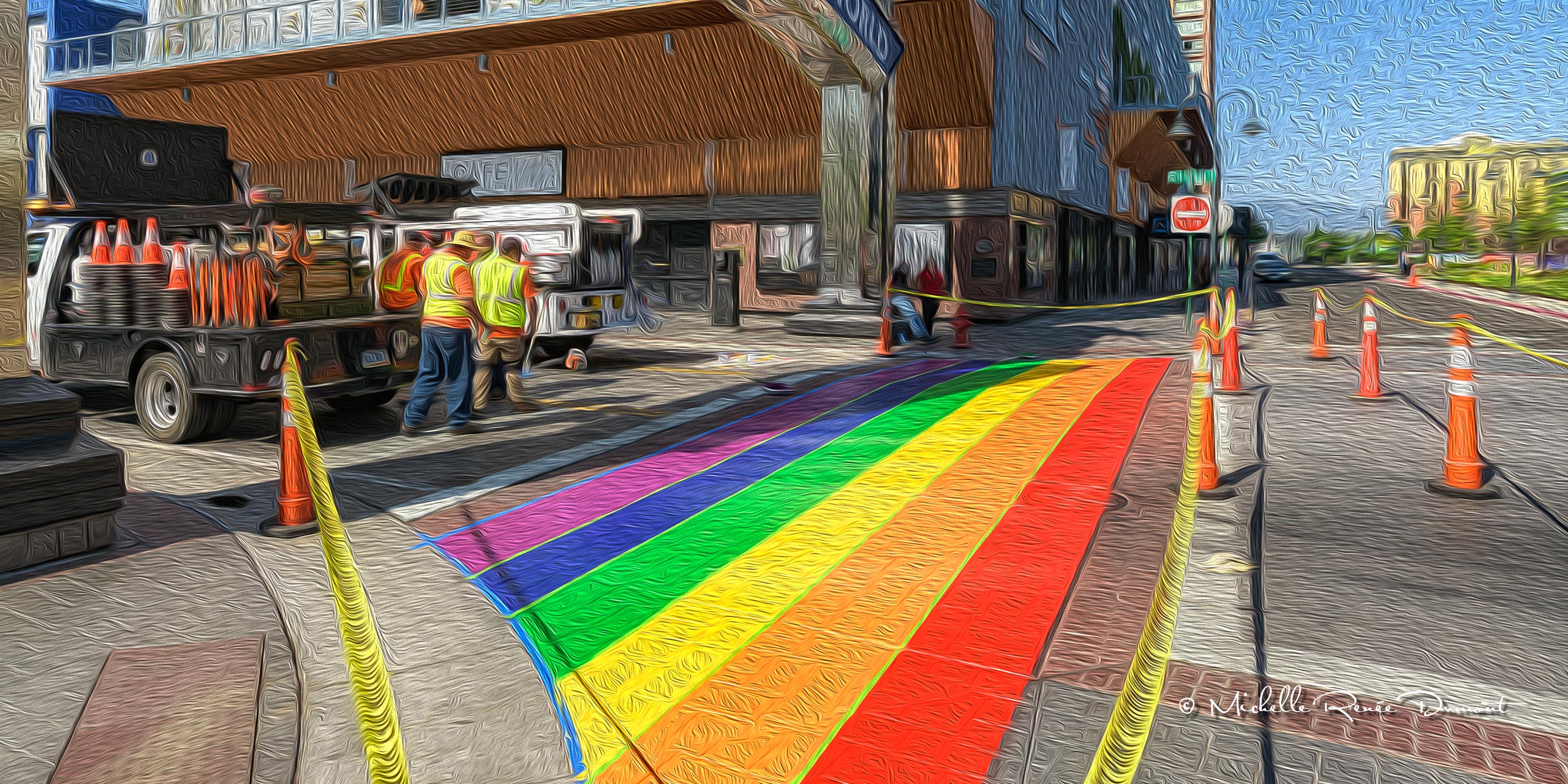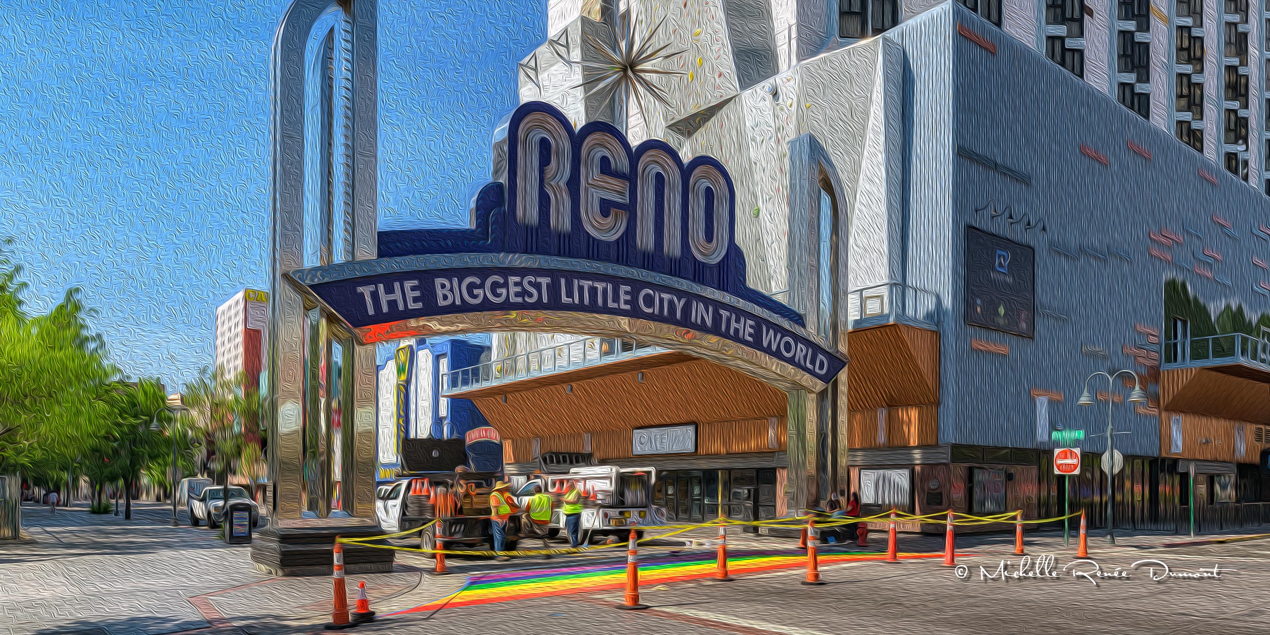 …at painting the rainbow flag under the Reno Arch to show the city’s support for Pride Month and the LGBTQ community. The street mural was originally painted last month, but was vandalized within hours of it’s unveiling.