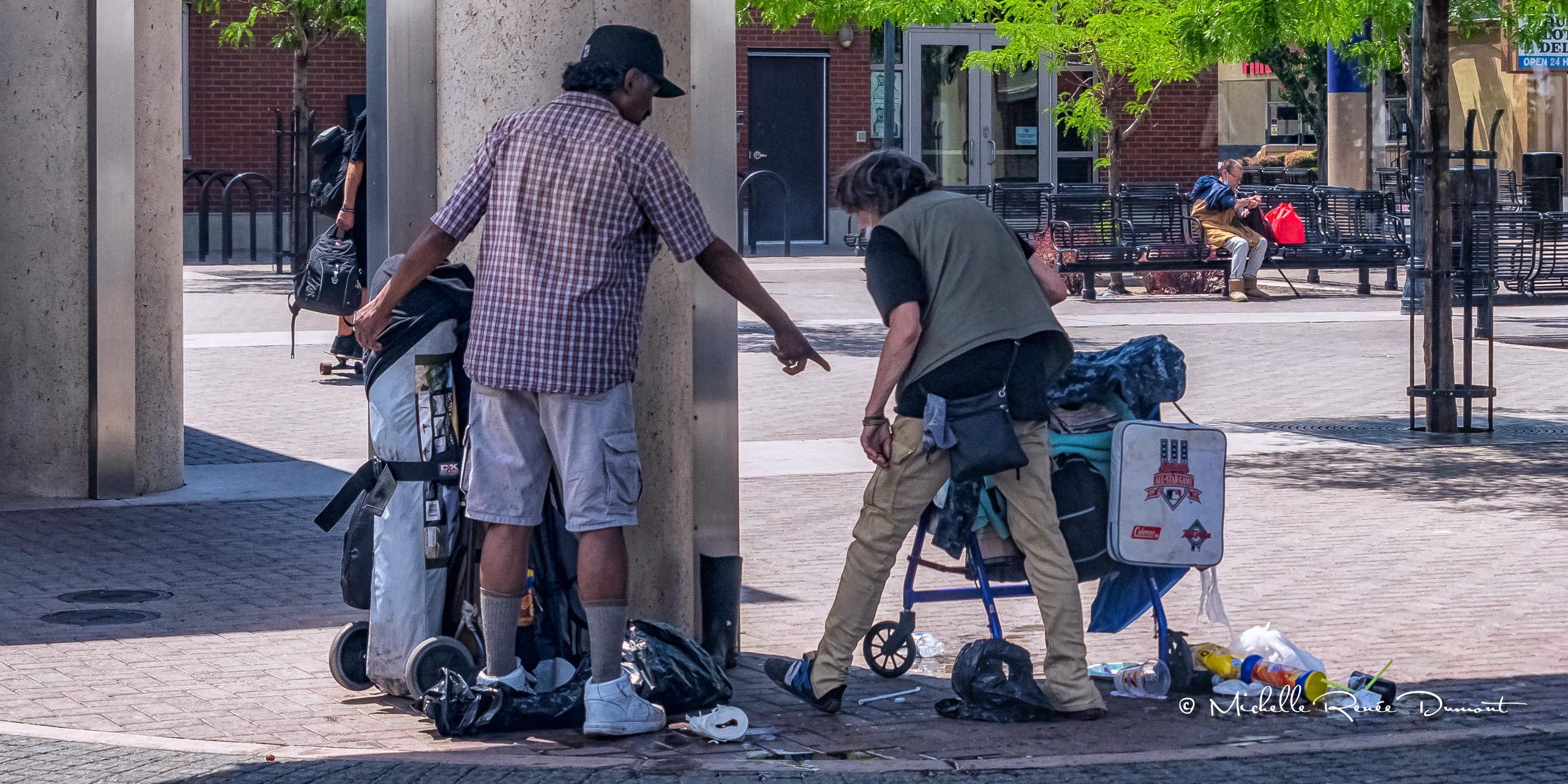 The downtown bus station is always a place for the city’s down and out to gather and hangout. And sometimes someone will have a mental meltdown and belongings will go flying out of frustration with someone or just life in general. These images were shot from the window of a bus as we pulled into the station shortly after witnessing this ladies stuff go flying everywhere. It was hard to tell if the fella with her was the instigator of the outburst, but there was obvious tension between them…