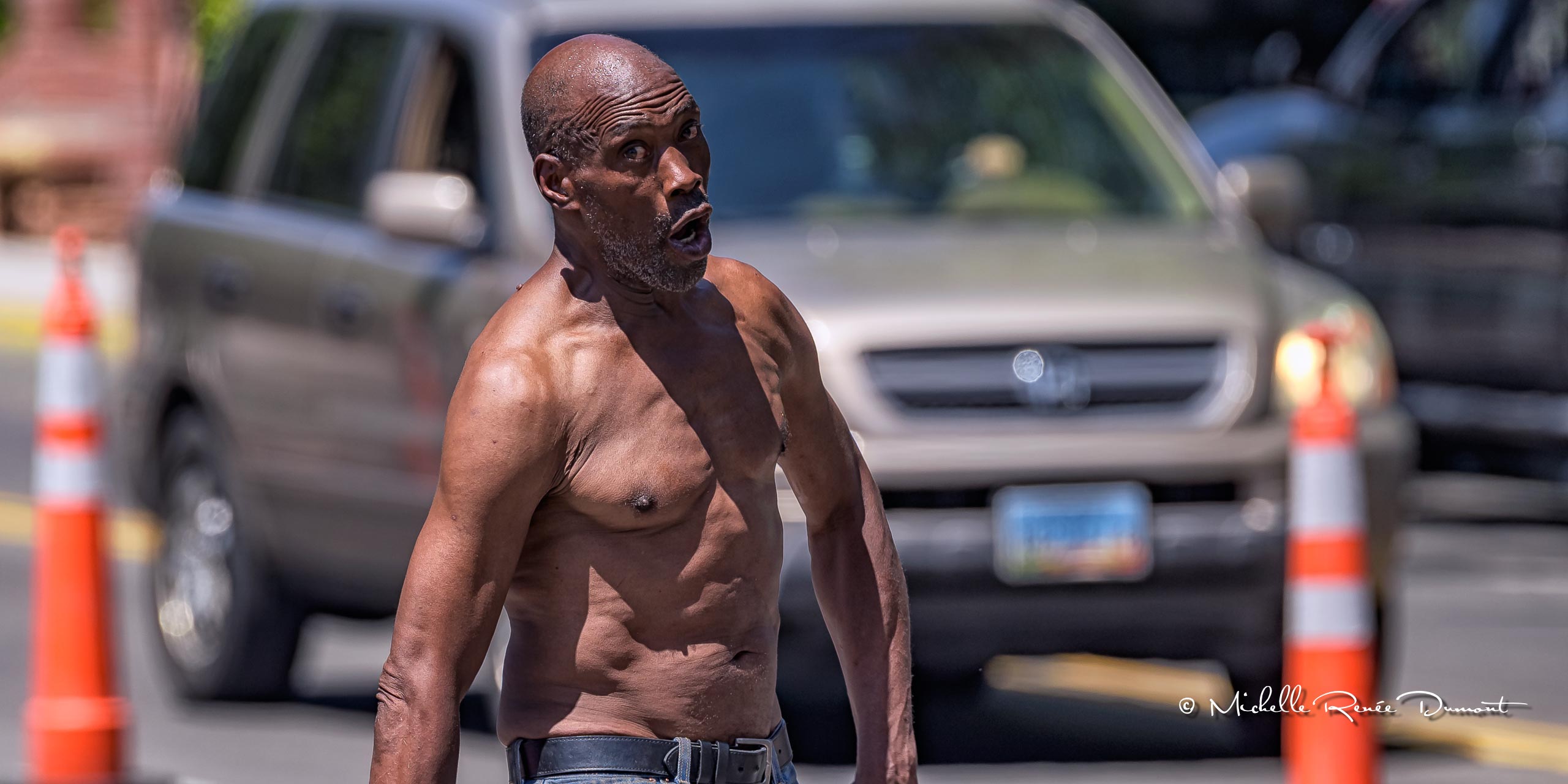 As I walked up the street, this fella was being escorted by law enforcement from an event being held at Wingfield Park. A two day event celebrating Independence Day. Evidently he was being disruptive and was asked to leave the premises. He wasn’t taken into custody, but merely escorted from the area. In these images you can see he’s having difficulty controlling himself.
