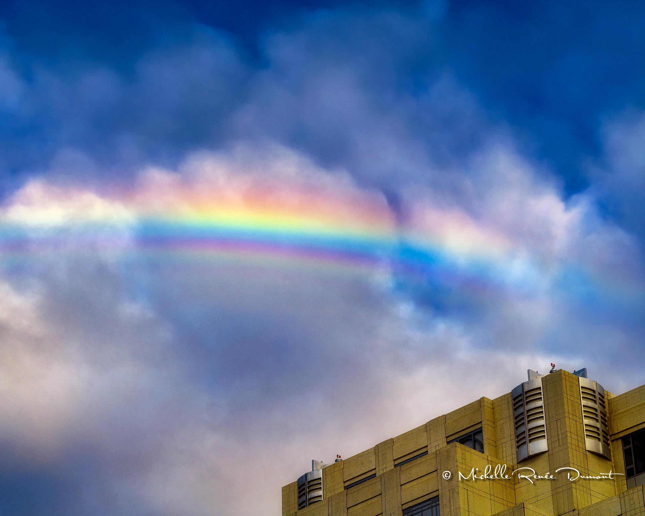 There was some high altitude rain from an incoming storm over the weekend that never reached the ground but did create this small section of a rainbow over the Federal Court House visible to me on my morning walk