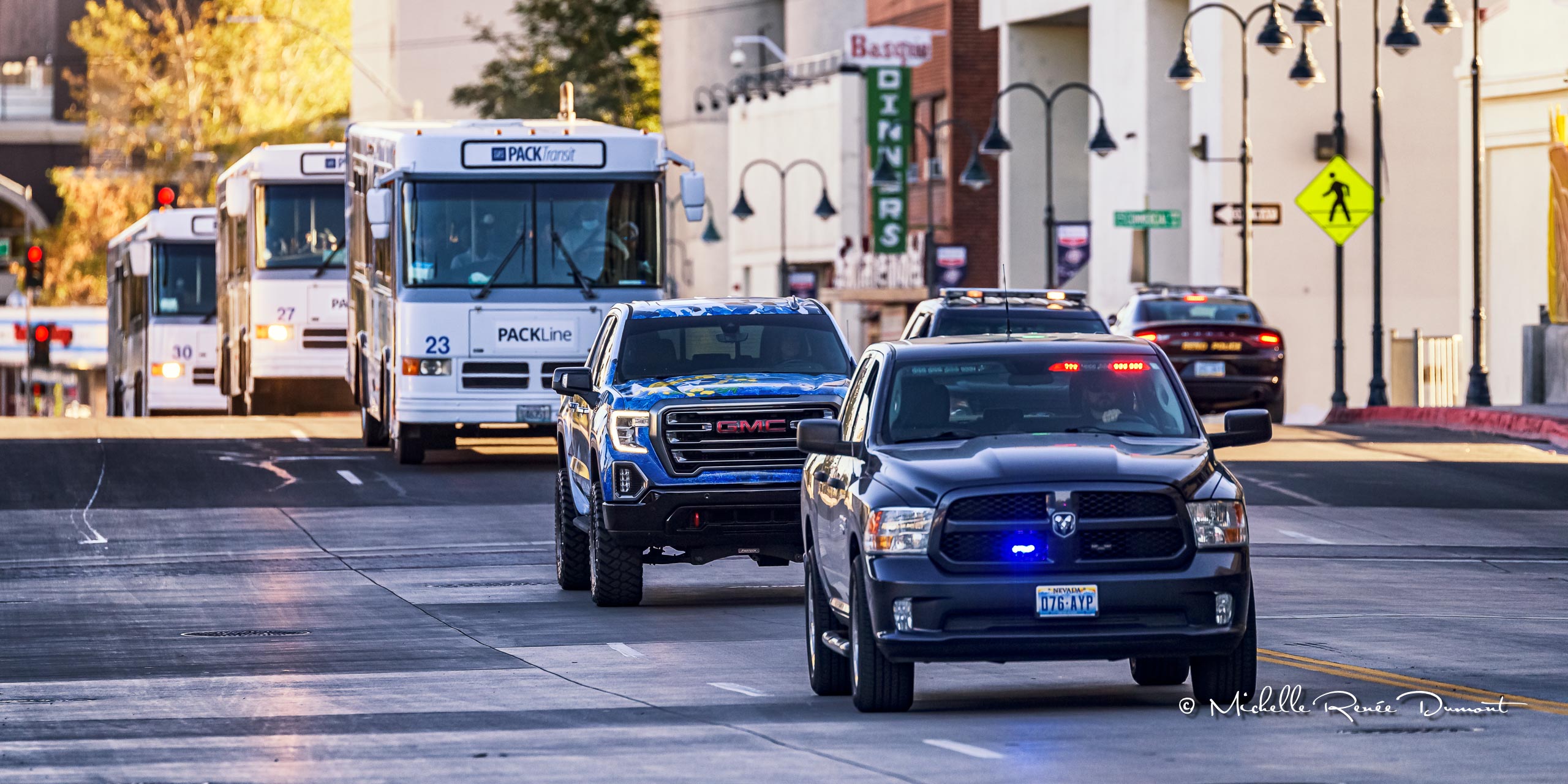 …for the University of Nevada Reno (UNR) Football team through downtown on their way from the airport to the stadium