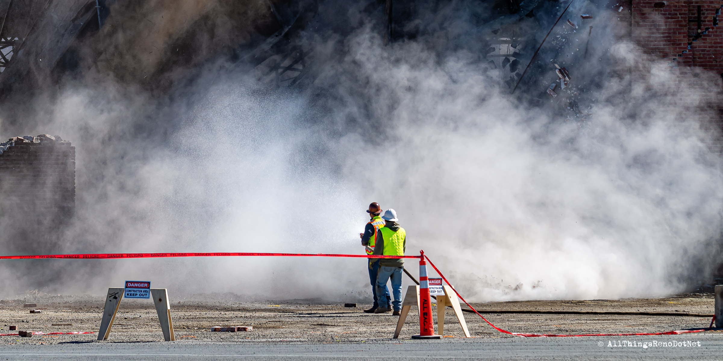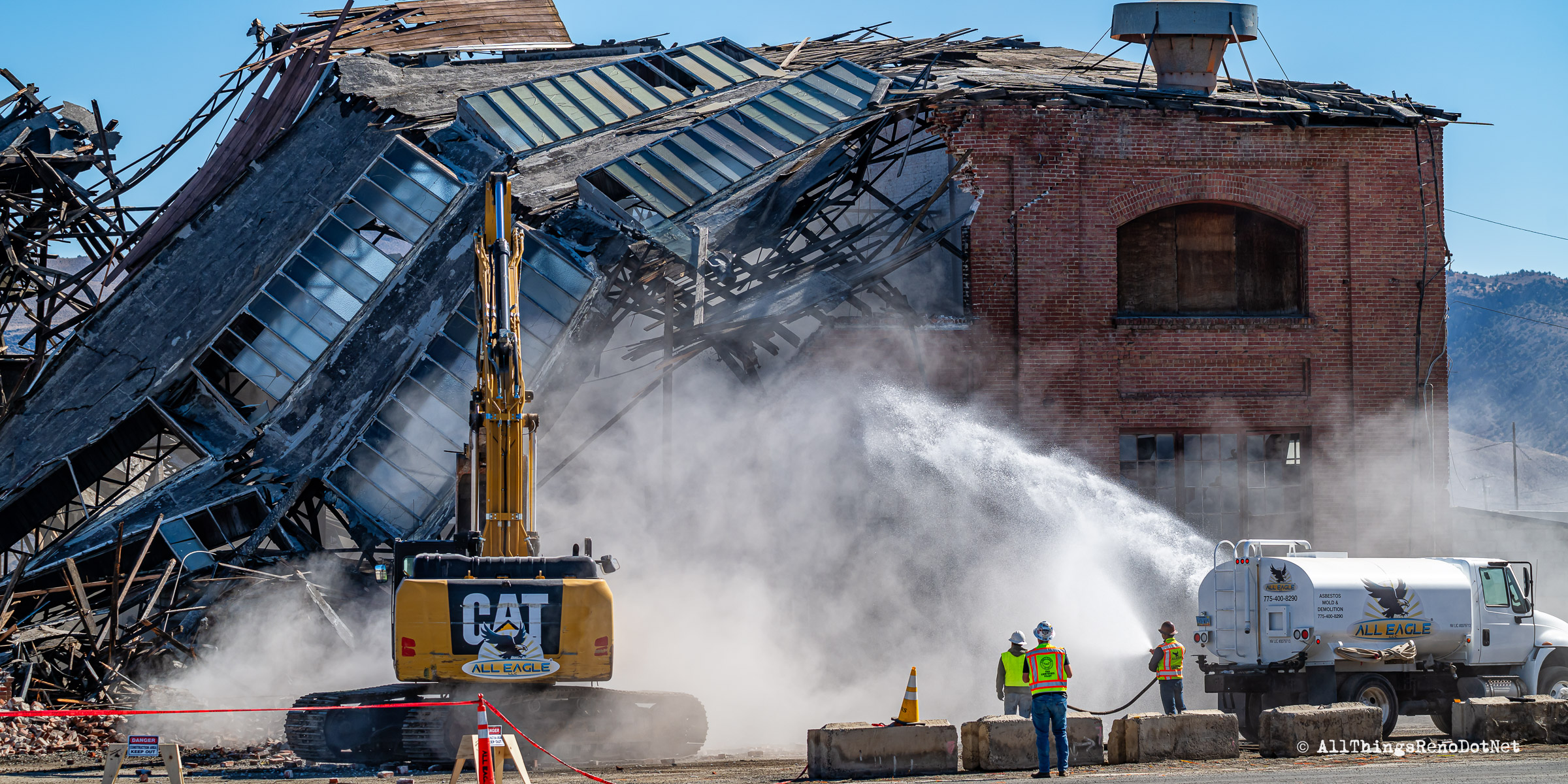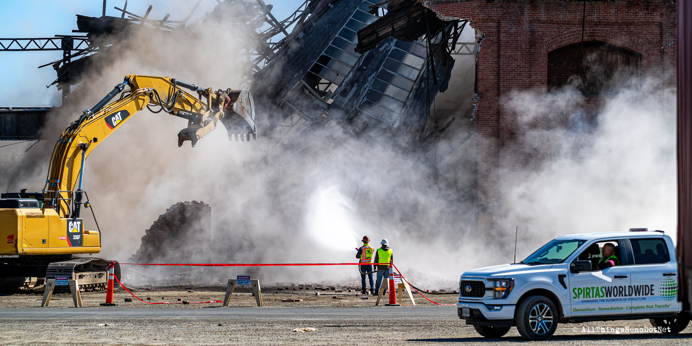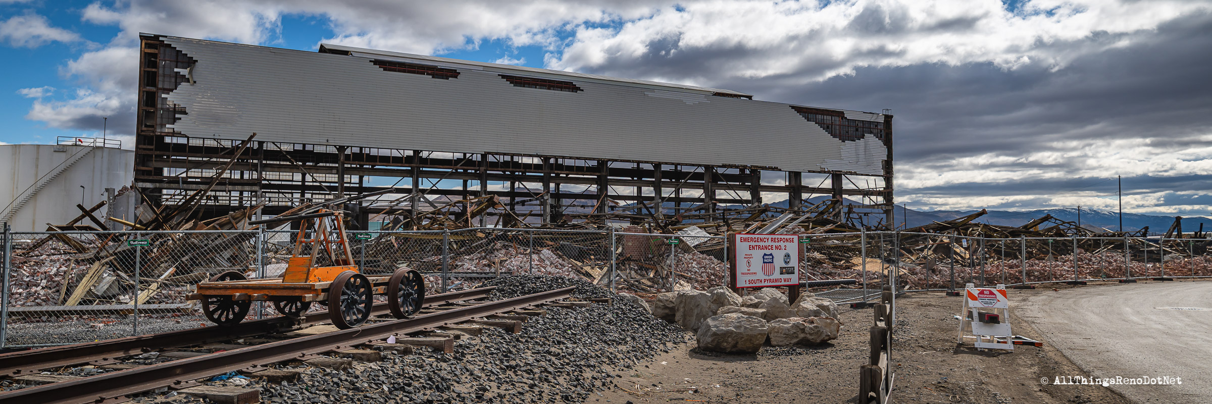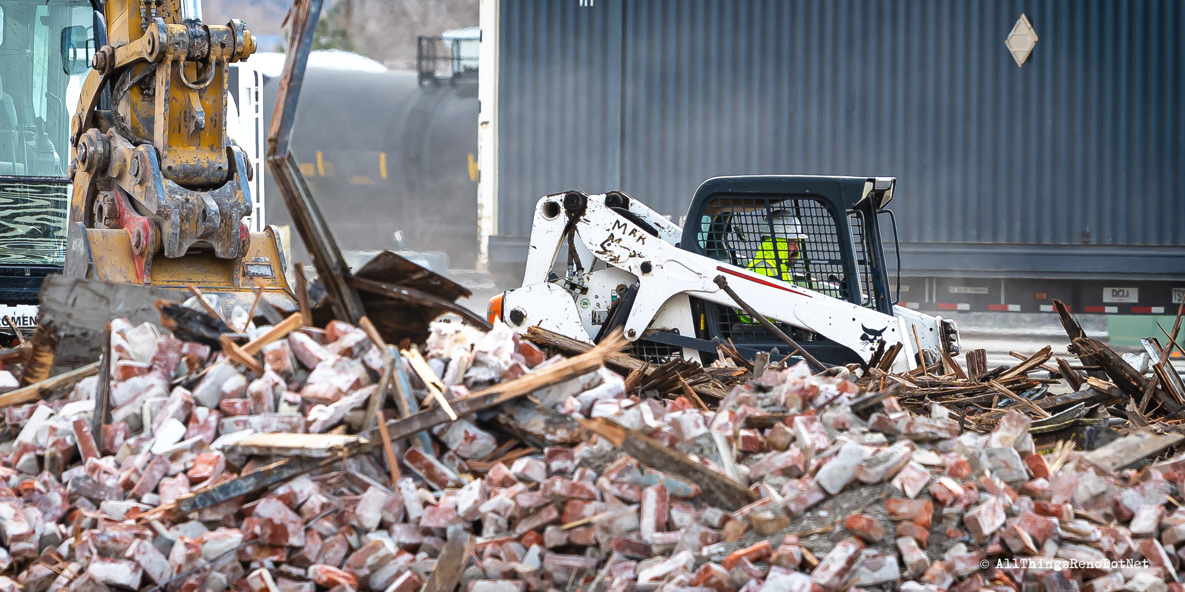 The Union Pacific Railroad Machine Shop, built 120 years ago, was being razed to make way for their expansion of Intermodal Container handling. In other words, a parking lot for container trailers. The building hadn’t been used as a machine shop in years, instead as storage for RV’s, etc. The demolition was seemingly being done in three phases. Cleaning up the resulting debris from each before moving on to the next.