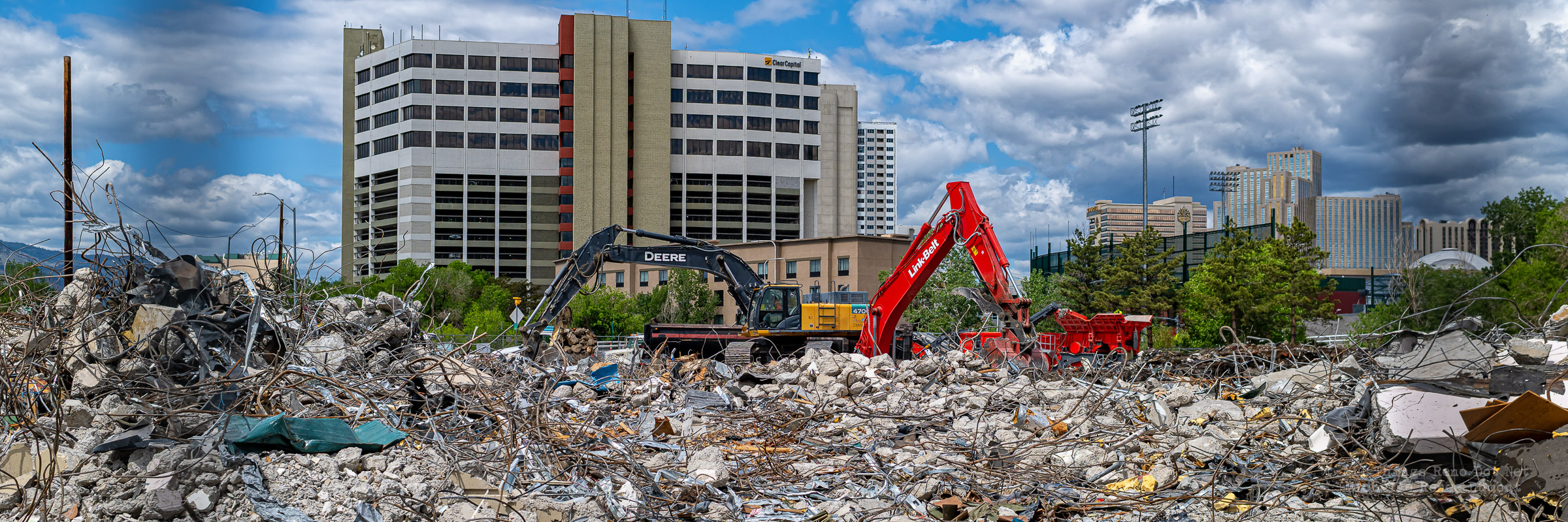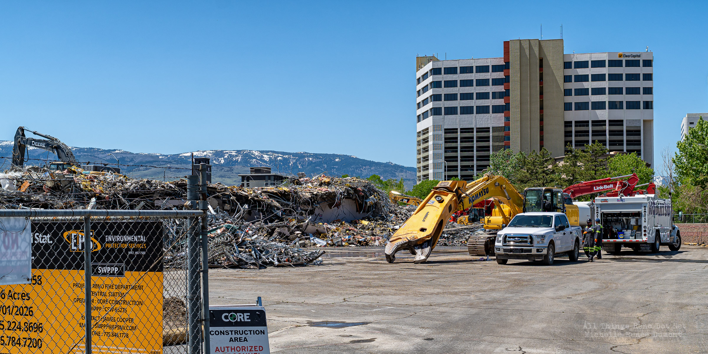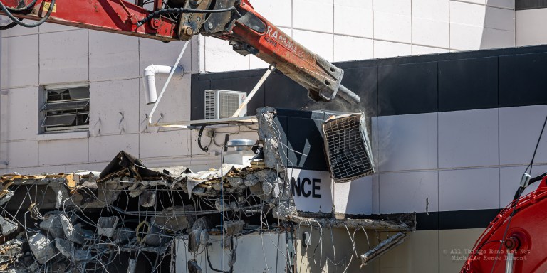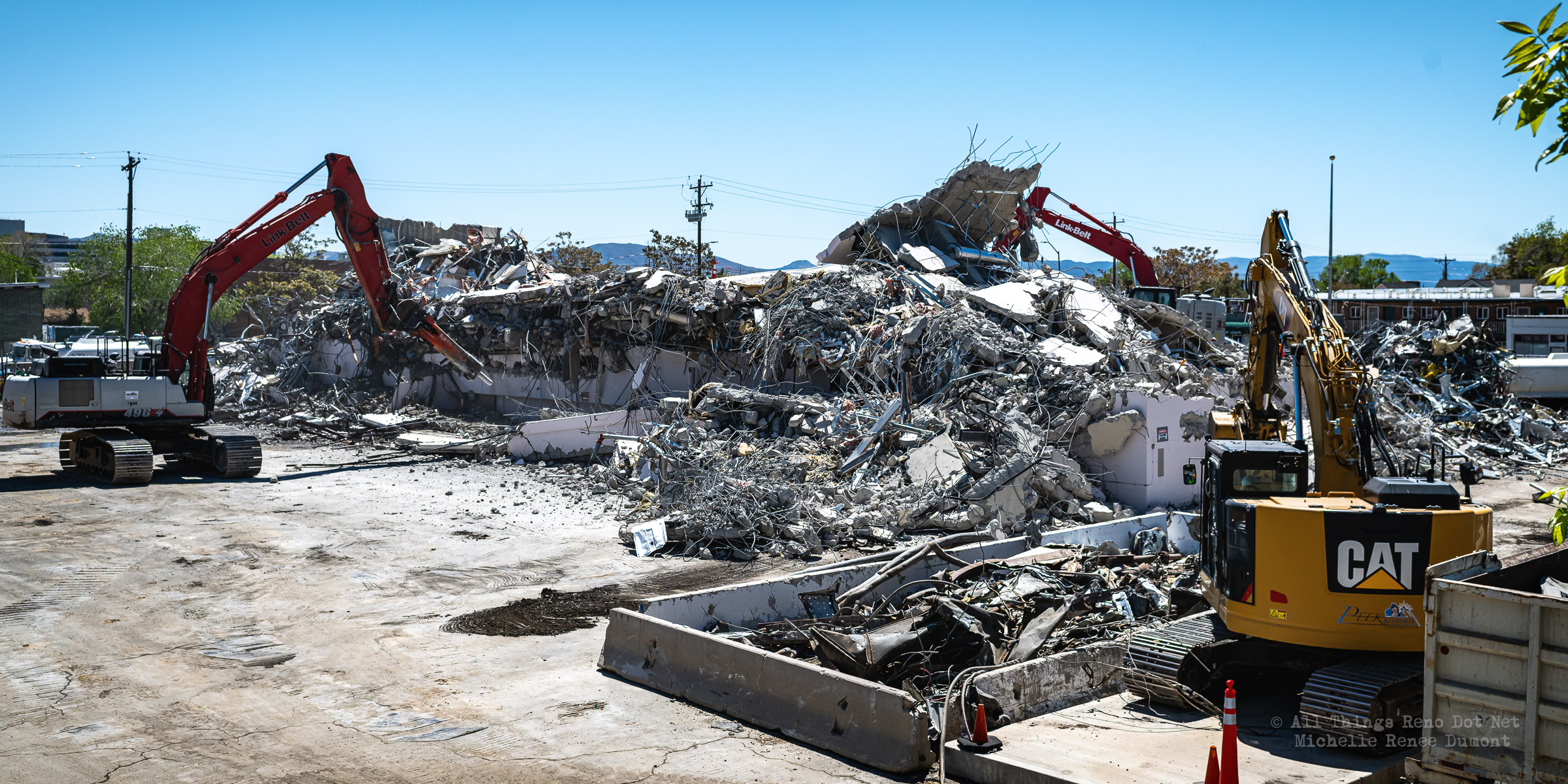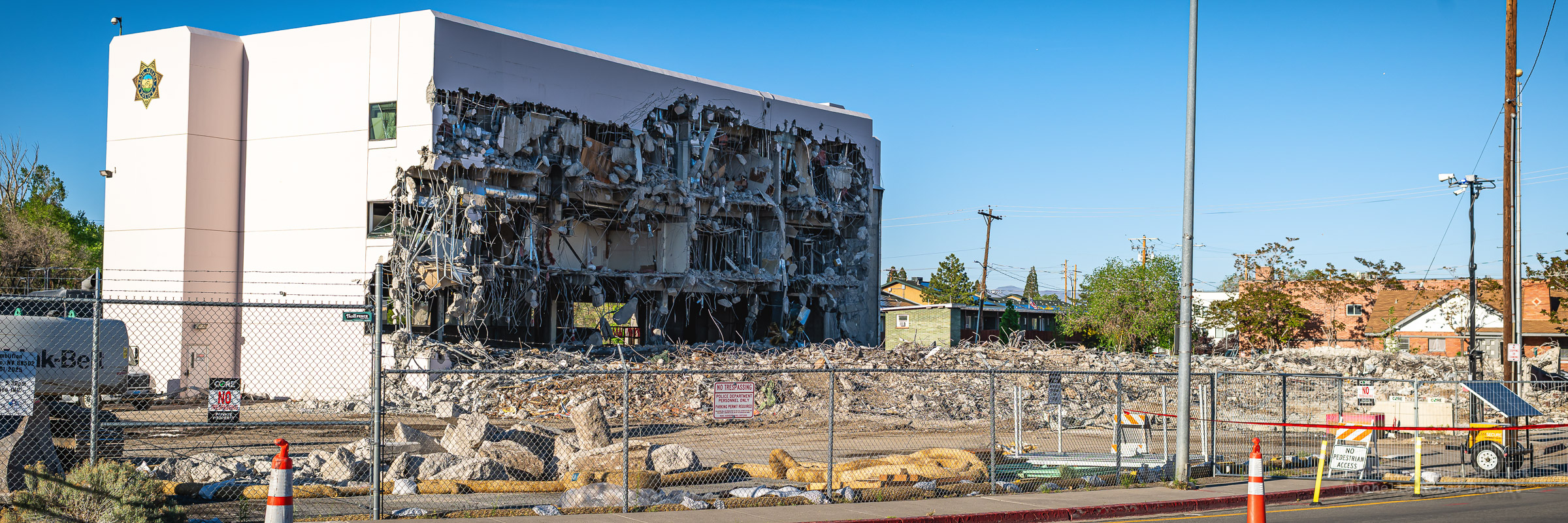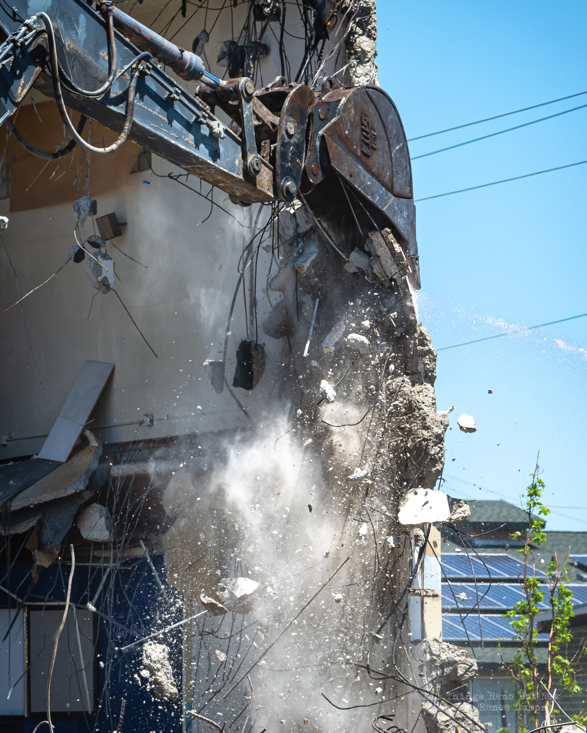 Reno Police Department (RPD) recently moved their operations to a larger building. A building that consolidated a number of city departments into one building. I thought the plan for the old building was to repurpose it. But I was wrong. Demolition evidently was the plan and it started today.