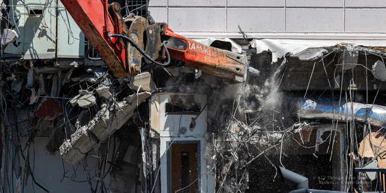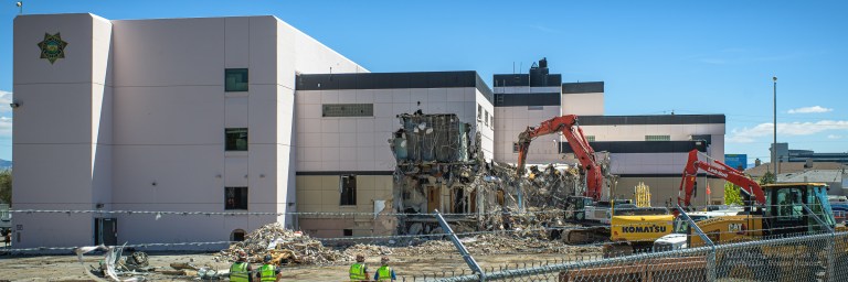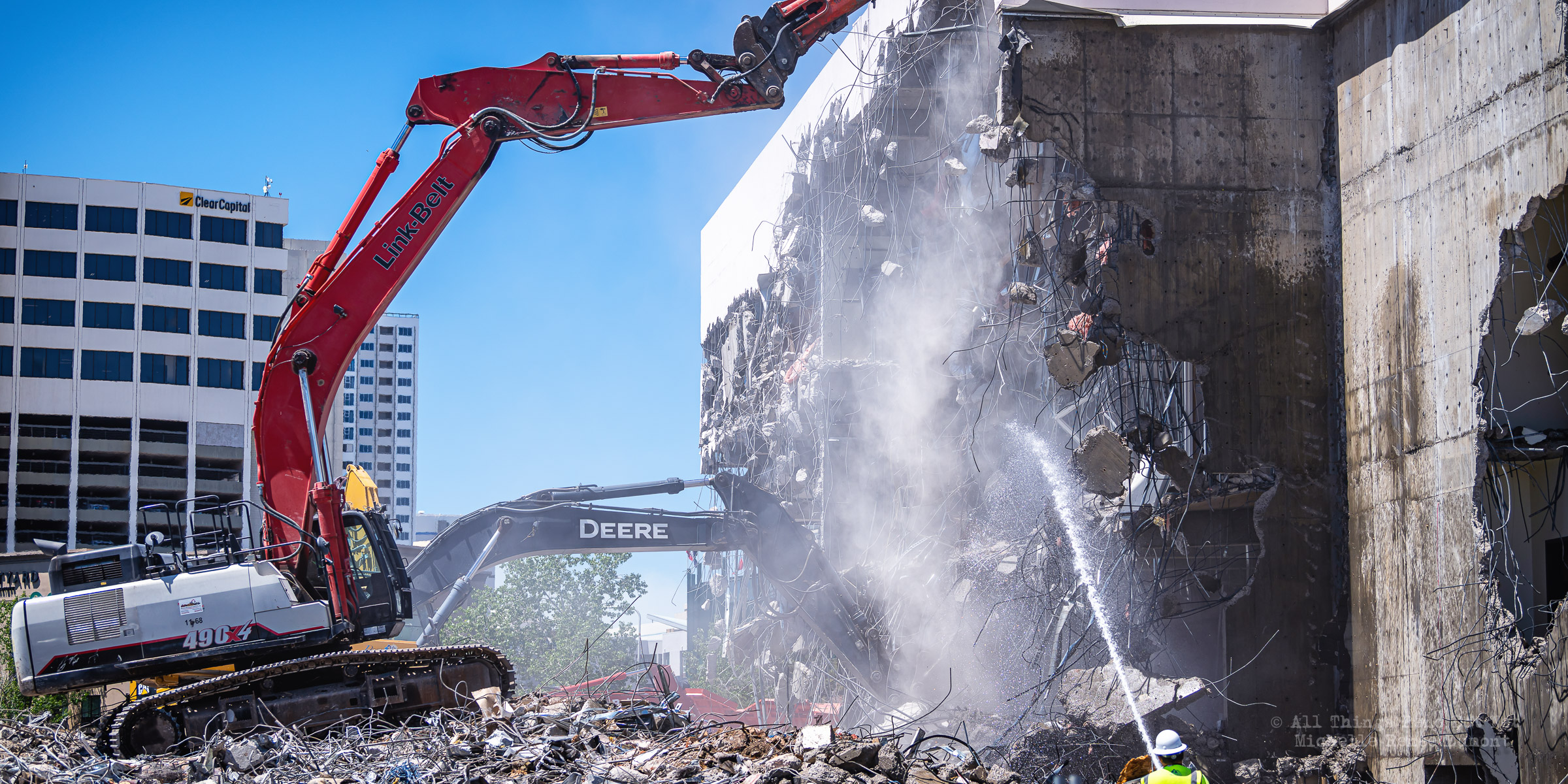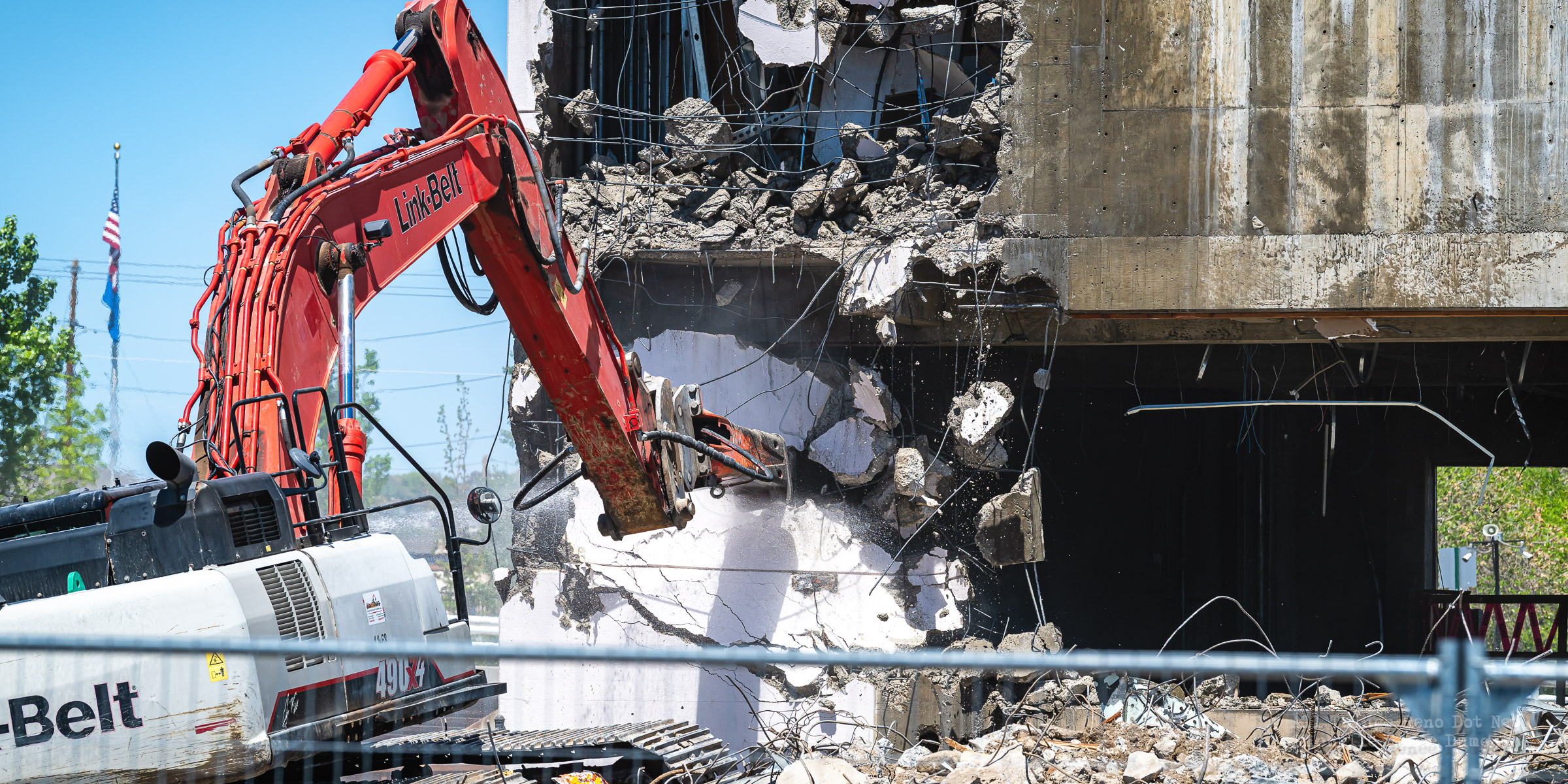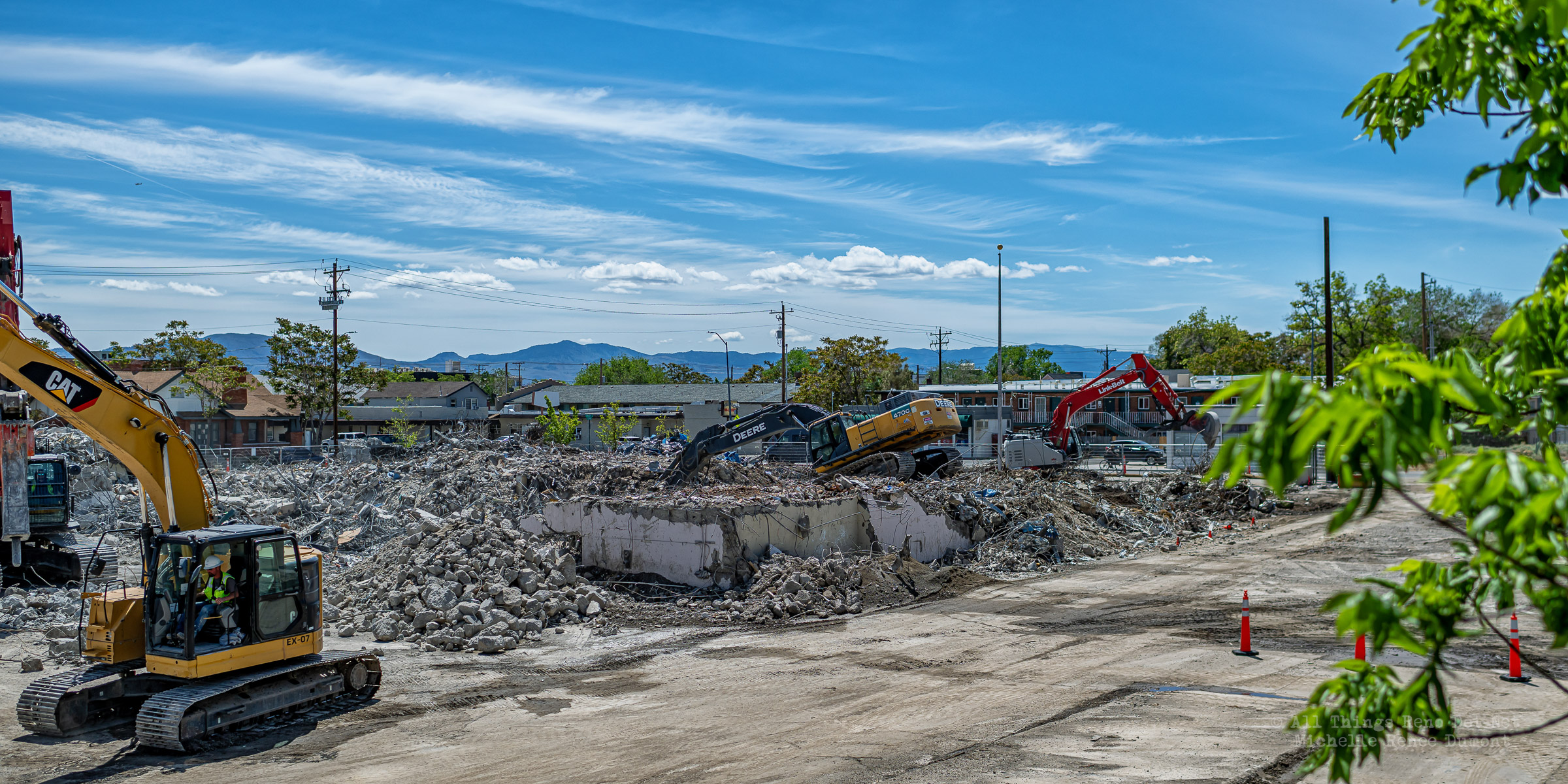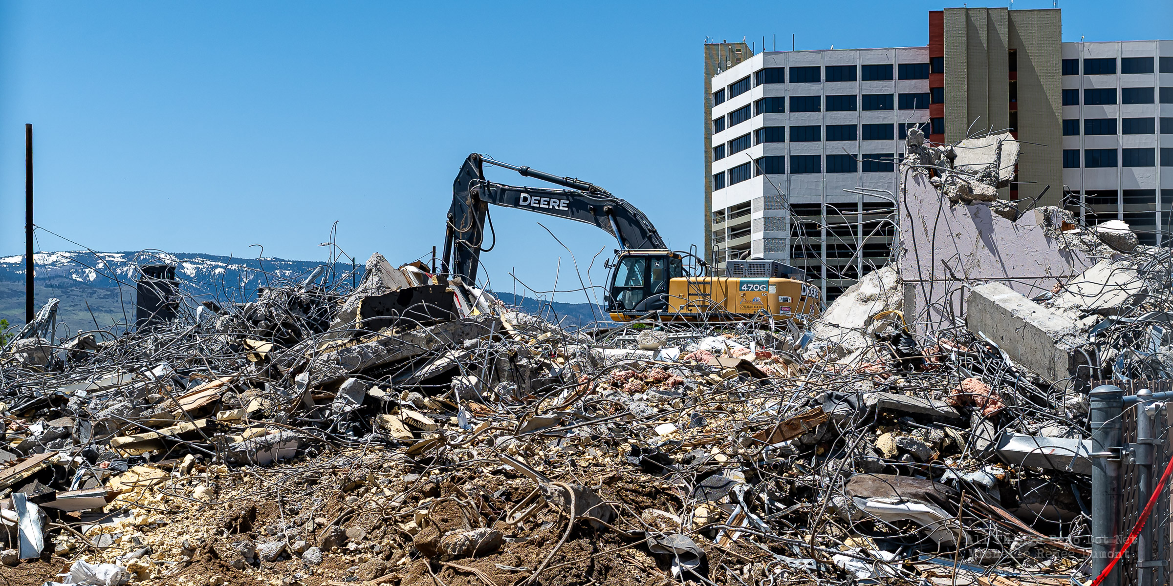 Reno Police Department (RPD) recently moved their operations to a larger building. A building that consolidated a number of city departments into one building. I thought the plan for the old building was to repurpose it. But I was wrong. Demolition evidently was the plan and it started today.