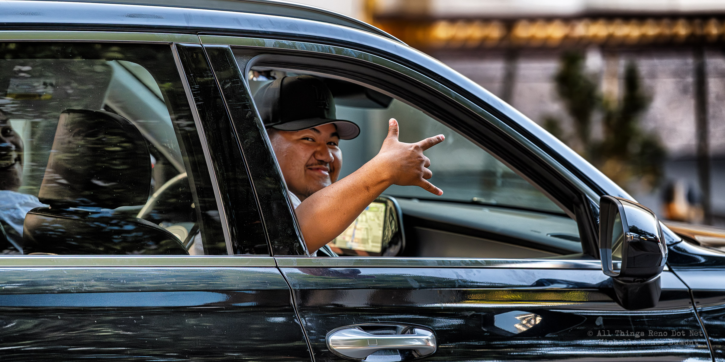 I don’t normally respond to people’s request for an impromptu photograph when they pull up to me on the sidewalk, but I figured I may as well start doing it. They pulled up to a red traffic light and yelled out the window for me to take their picture. So I did. And this is the result