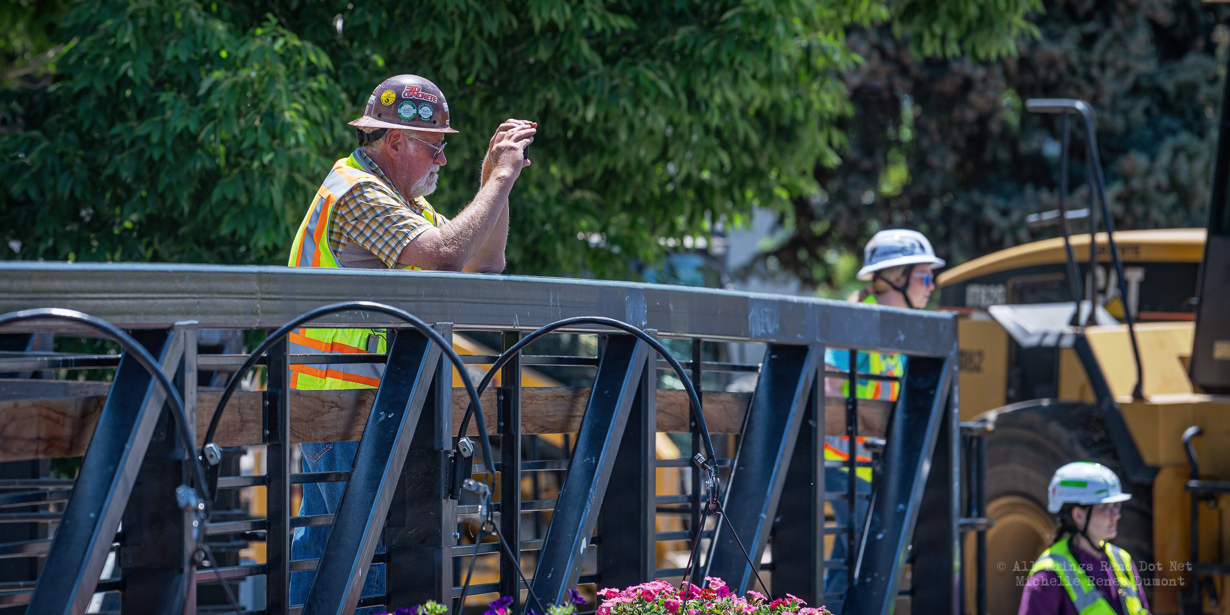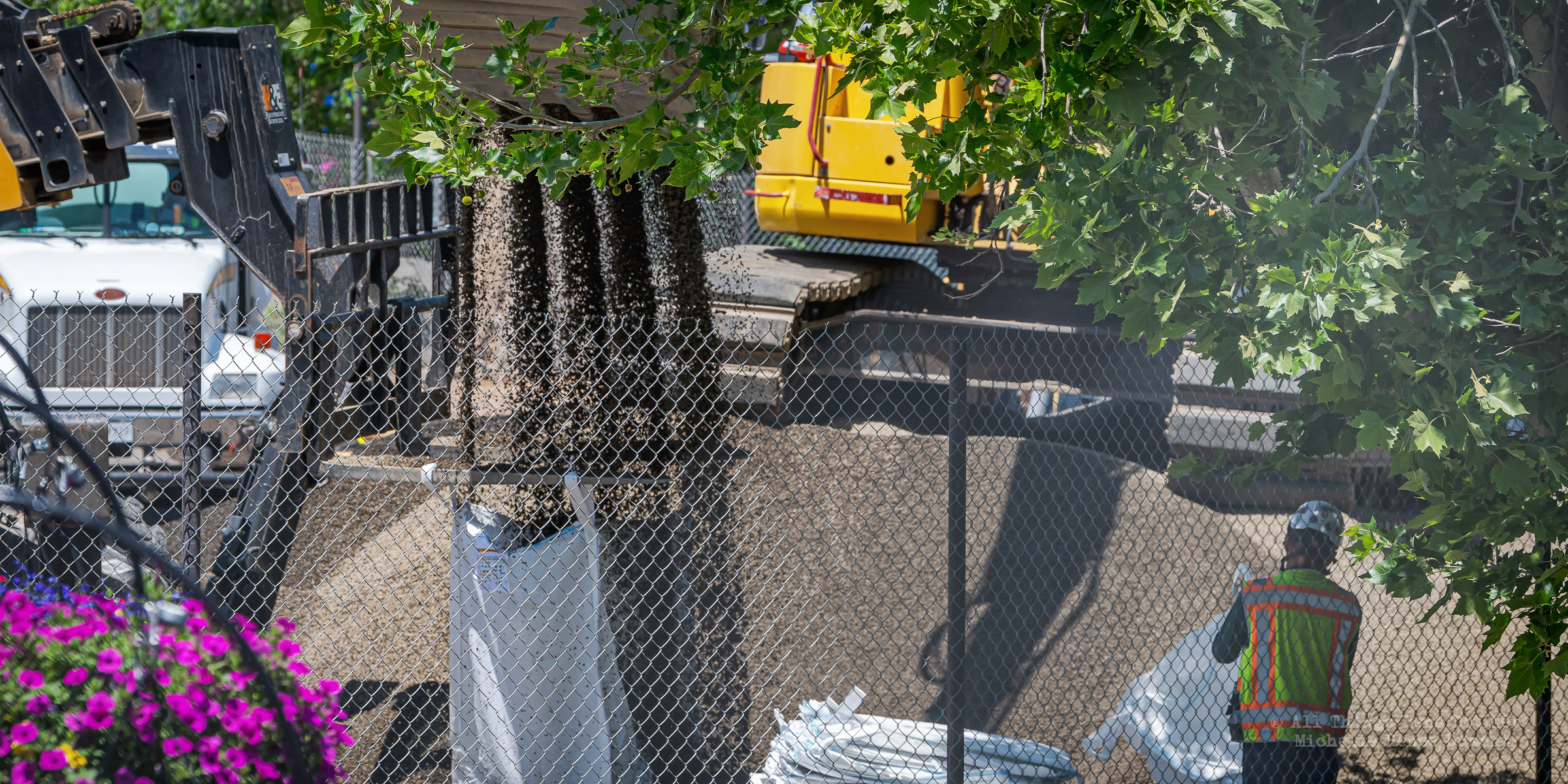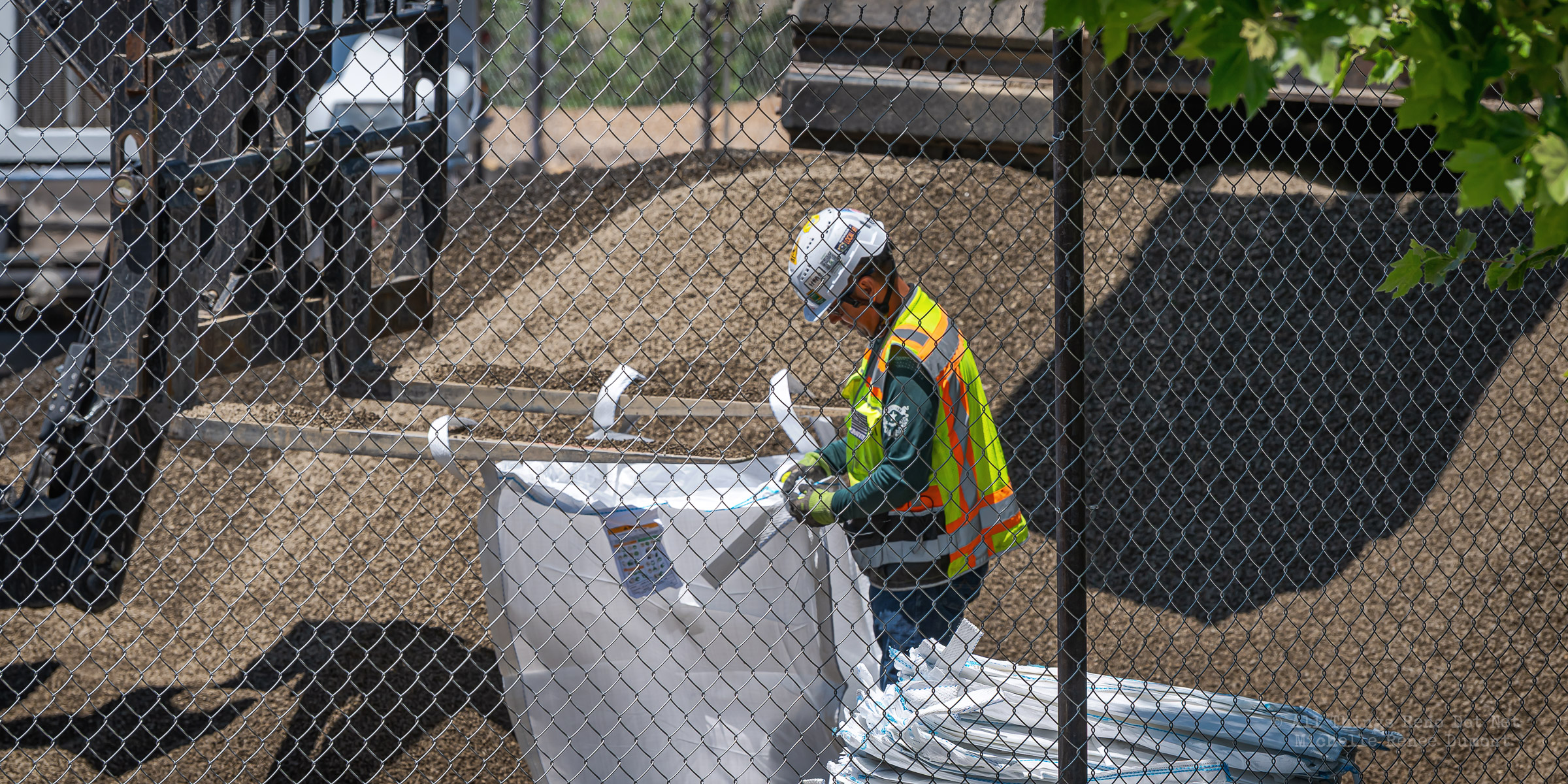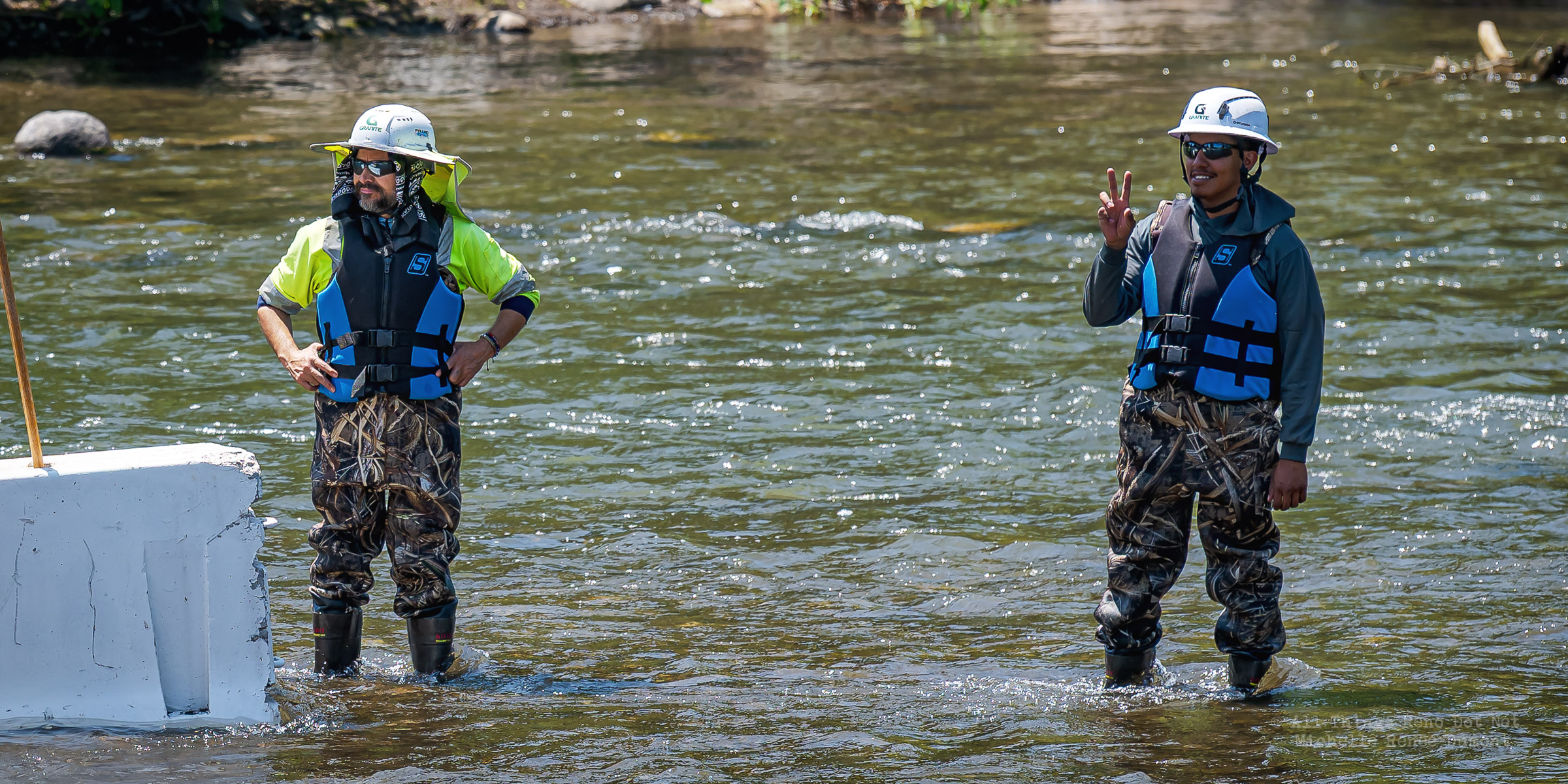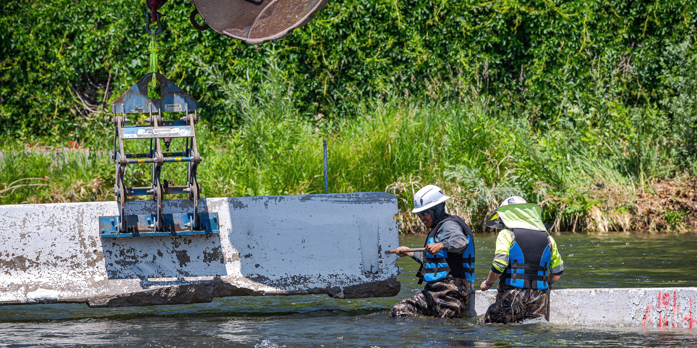 Workmen were busy moving sandbags and concrete barriers out Into the river to dam it up and reroute the flow to the south side channel of Wingfield Park.