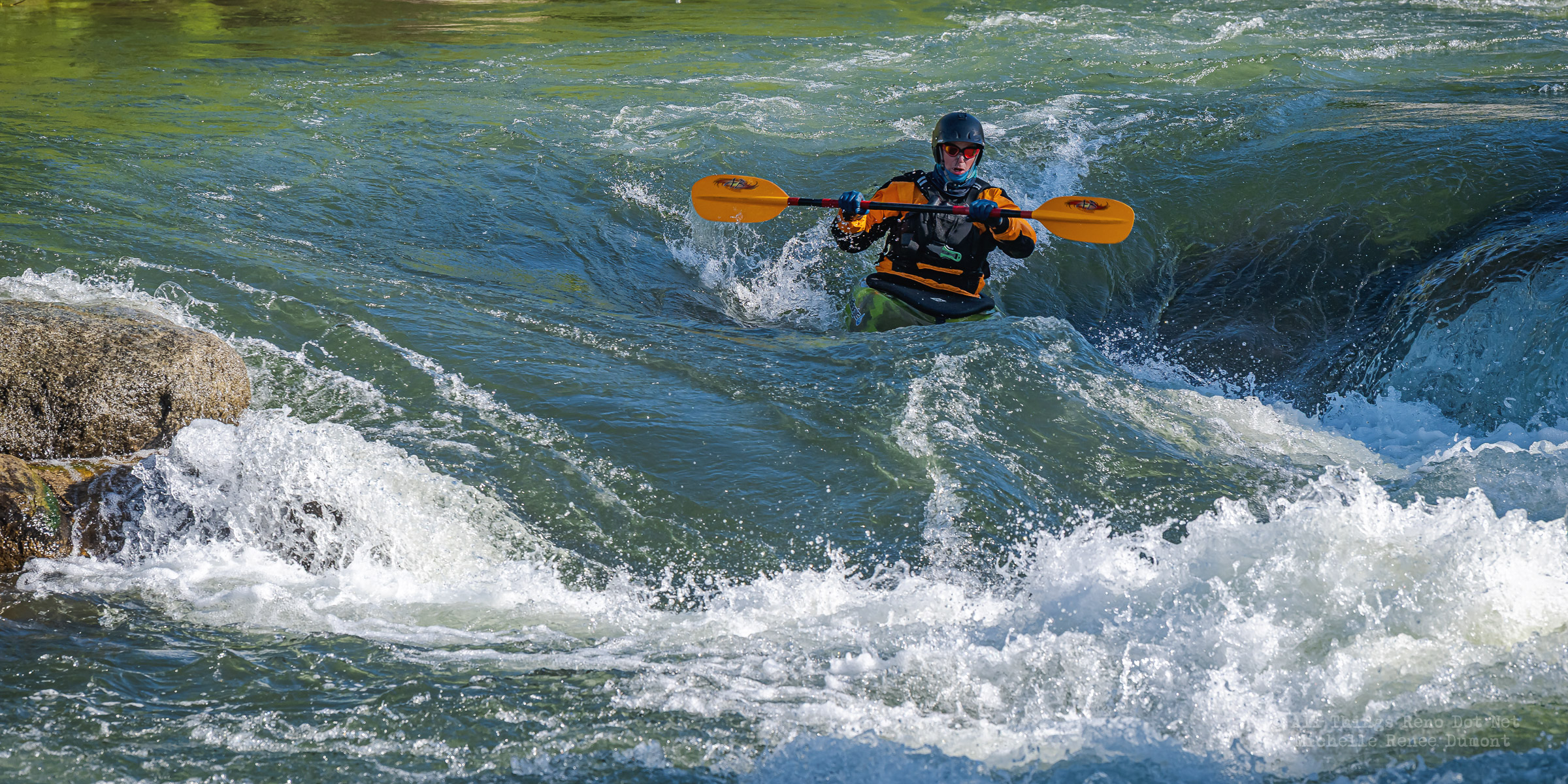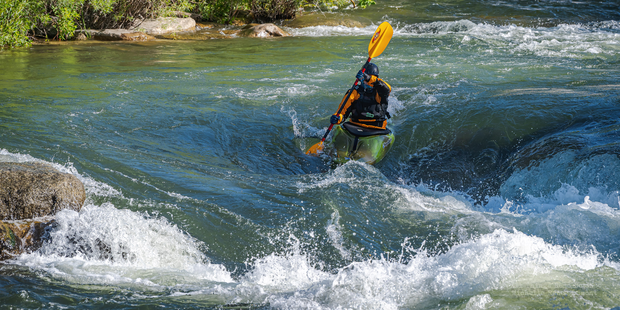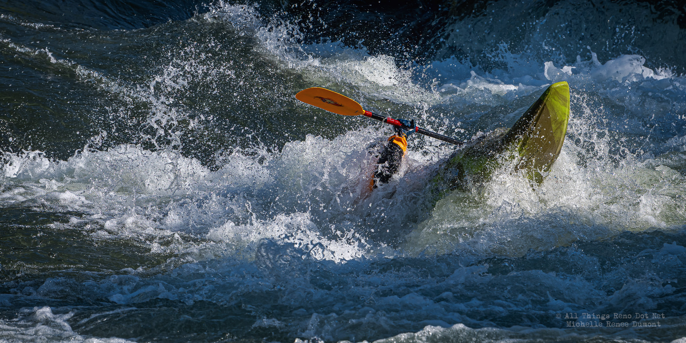 I took a break from my Reno Rodeo photo processing and ventured downtown to the river and came across this guy running the rapid. This impressive rapid was a result of the river diversion done for the Arlington Avenue Bridge Project. This is the first Kayaker I’ve seen take advantage of this high energy rapid. And he did well…