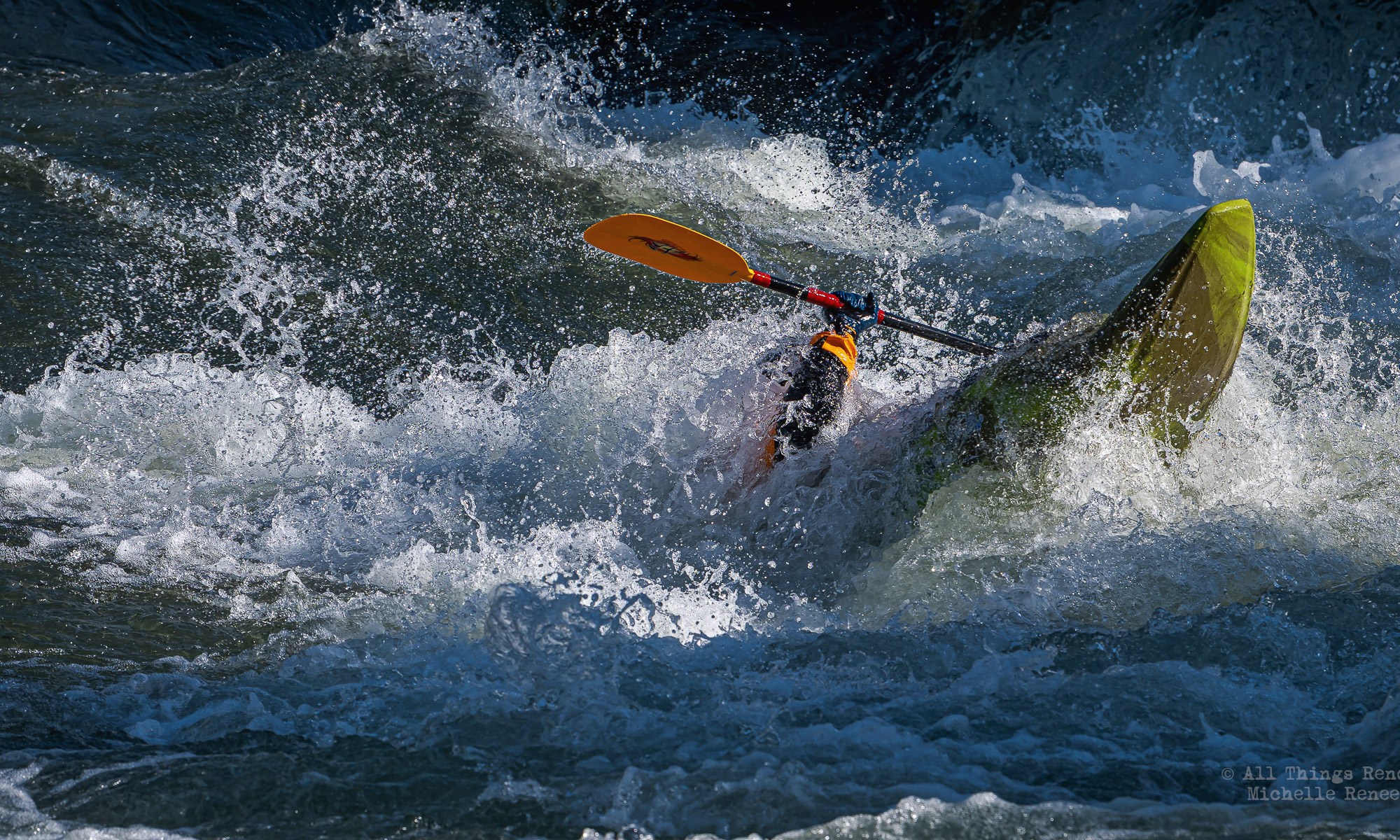 I took a break from my Reno Rodeo photo processing and ventured downtown to the river and came across this guy running the rapid. This impressive rapid was a result of the river diversion done for the Arlington Avenue Bridge Project. This is the first Kayaker I’ve seen take advantage of this high energy rapid. And he did well…
