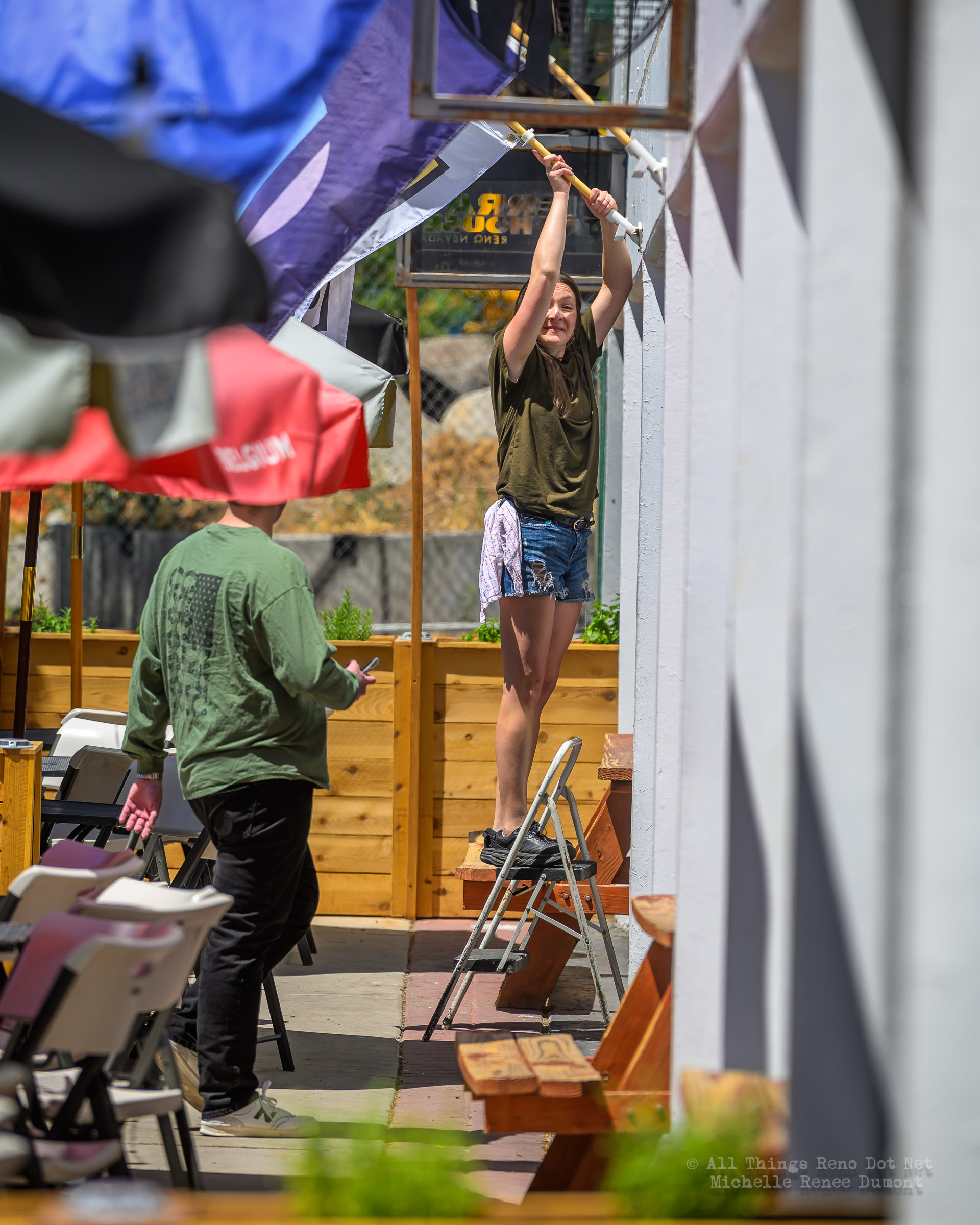 Katy, of the Sierra Tap House, doing her daily prepping of the outdoor patio