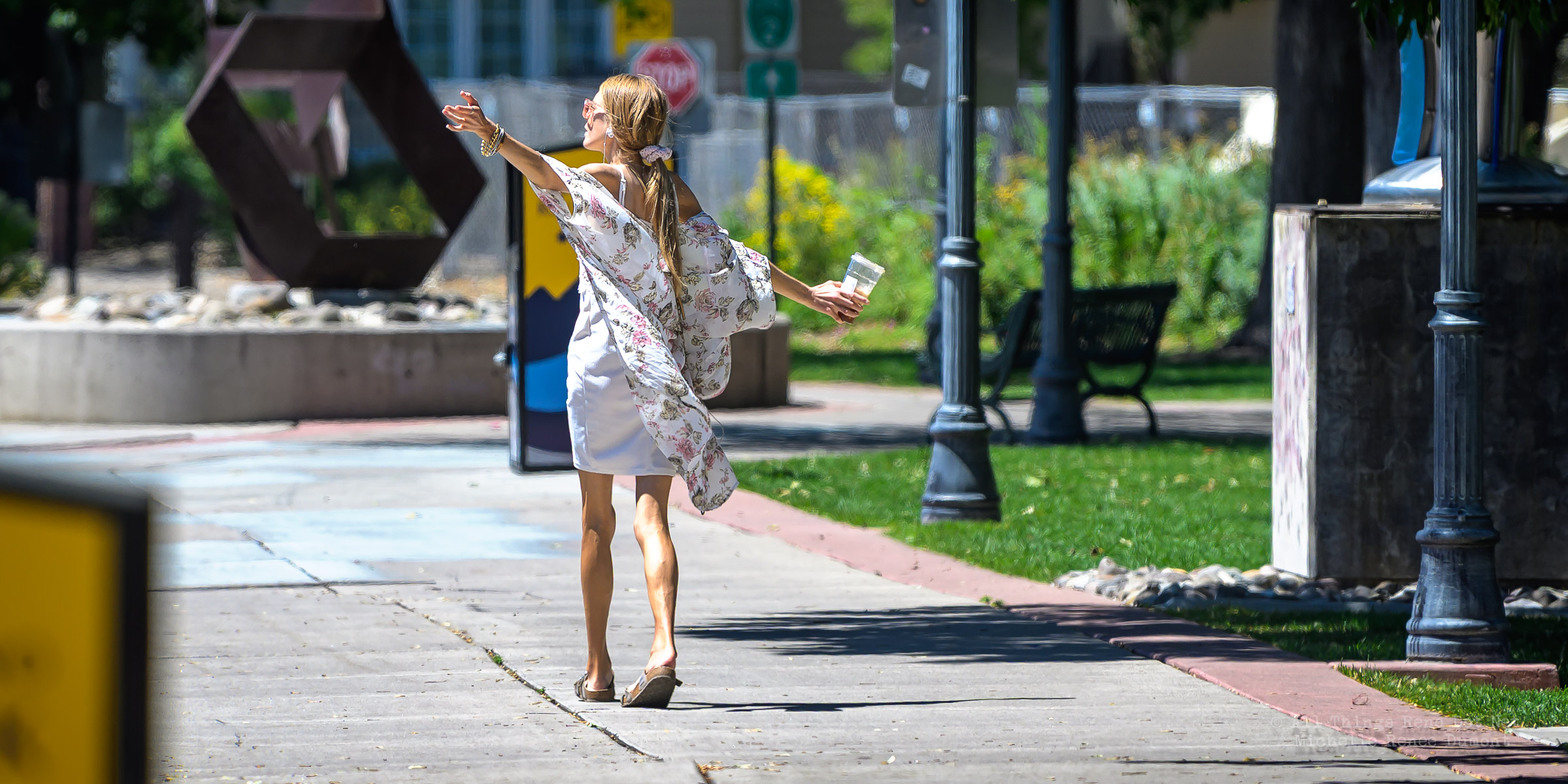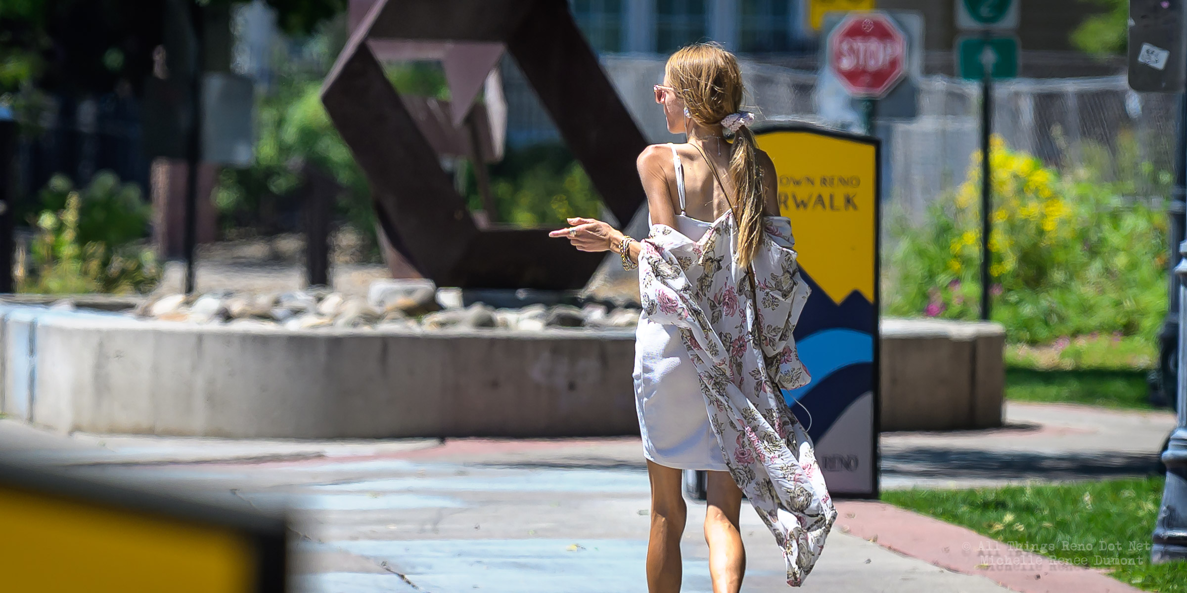 Couldn’t help but notice this girl walking with what looked like a hospital gown draped over her shoulders, flowing in the light Summer breeze. She then lowered her garment down to her elbows, revealing her shoulders as if it had been the first time she’d been out enjoying the warmth of the Sun. She appeared to me, to be a little on the anorexic side.