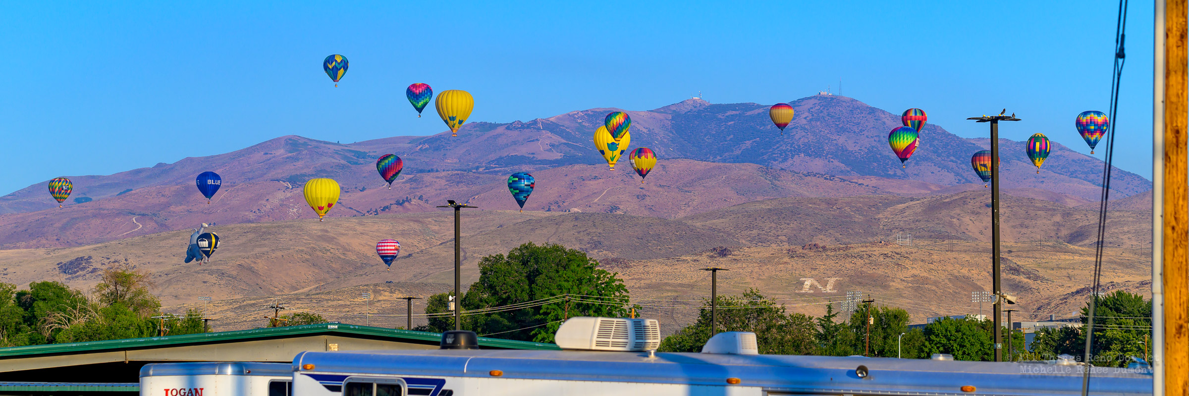 The annual 3 day event kicked off bright and early this morning. These were shot from my apartment building about 2 miles away. The Friday launch is usually tame compared to the weekend mass ascension, where the promoter usually expects upwards of 100 balloons to participate in this colorful event