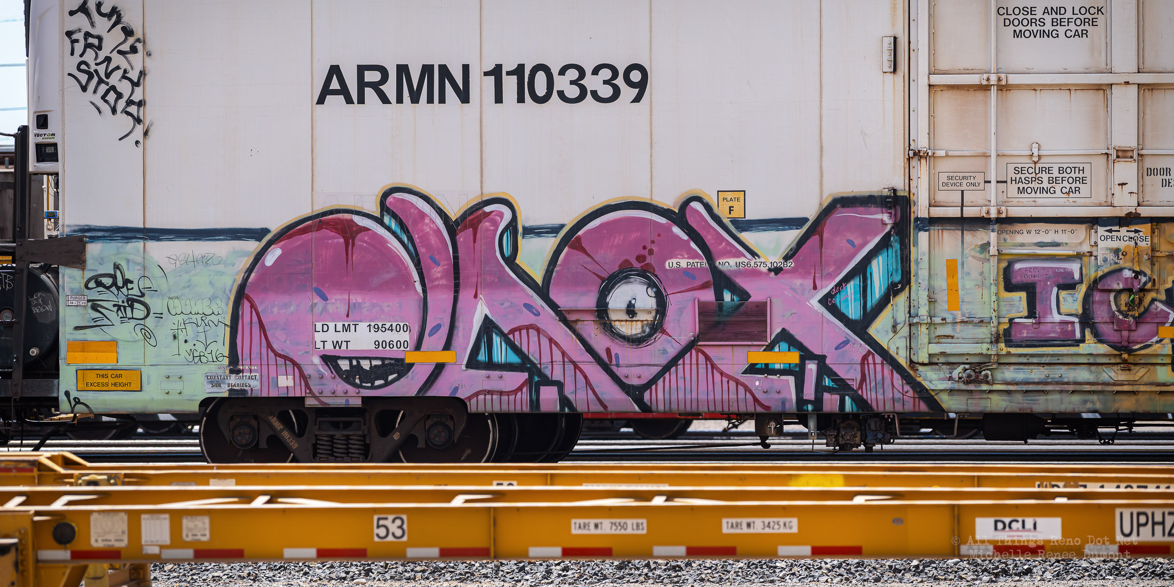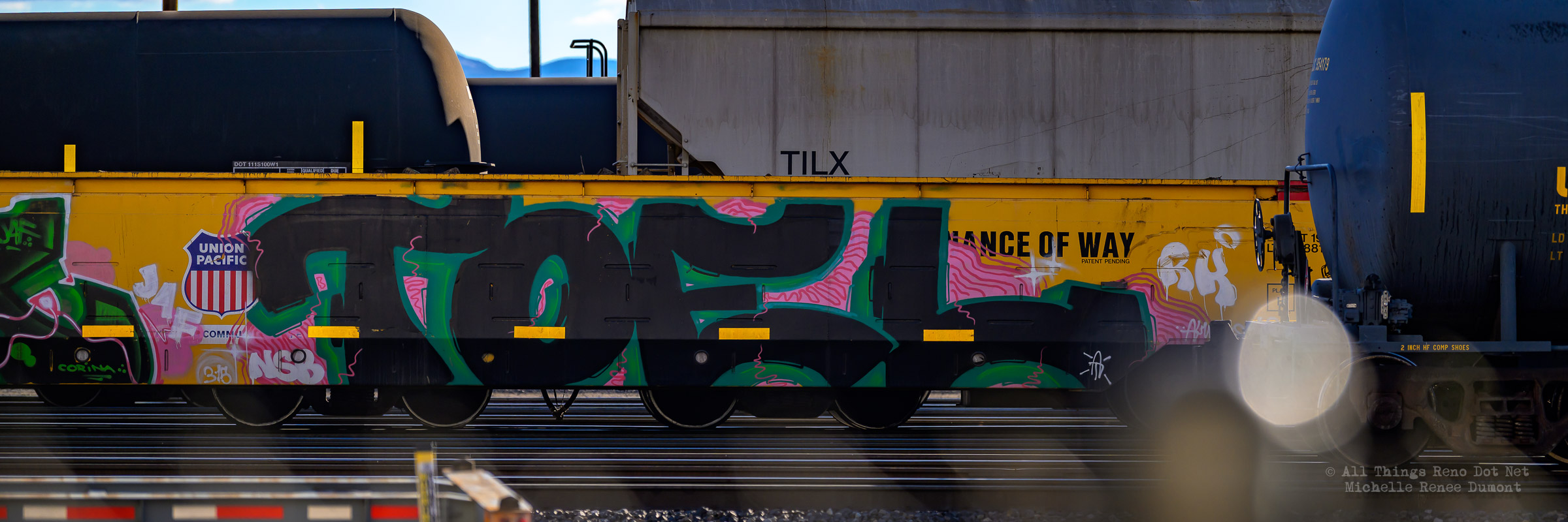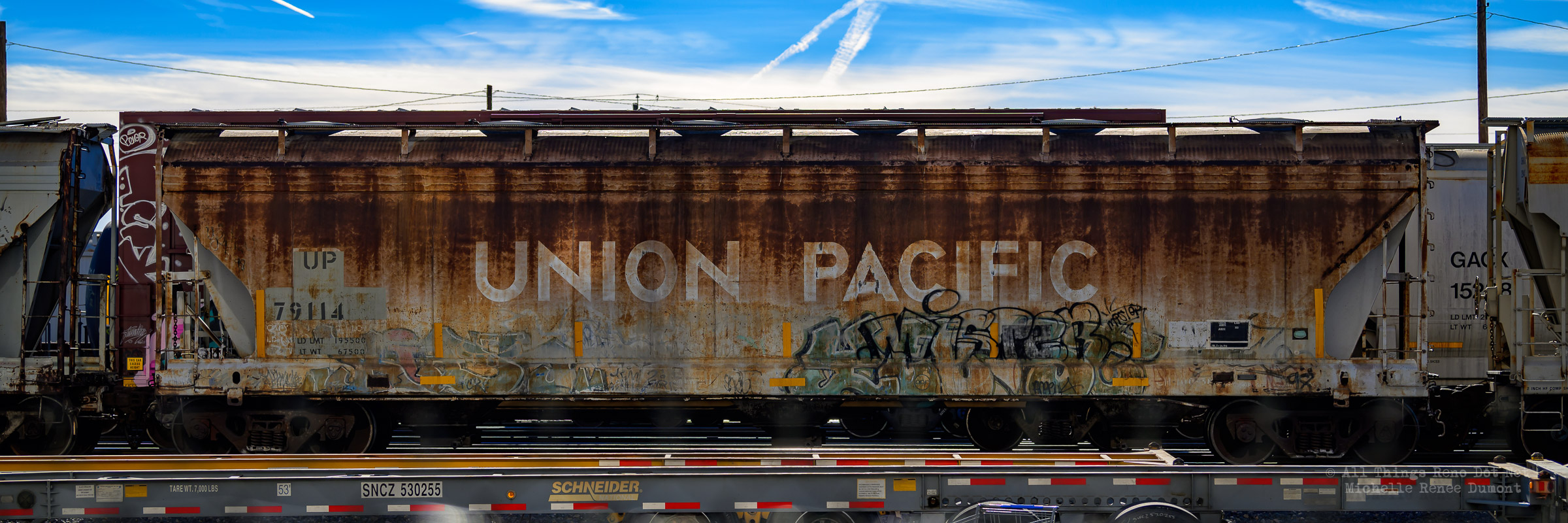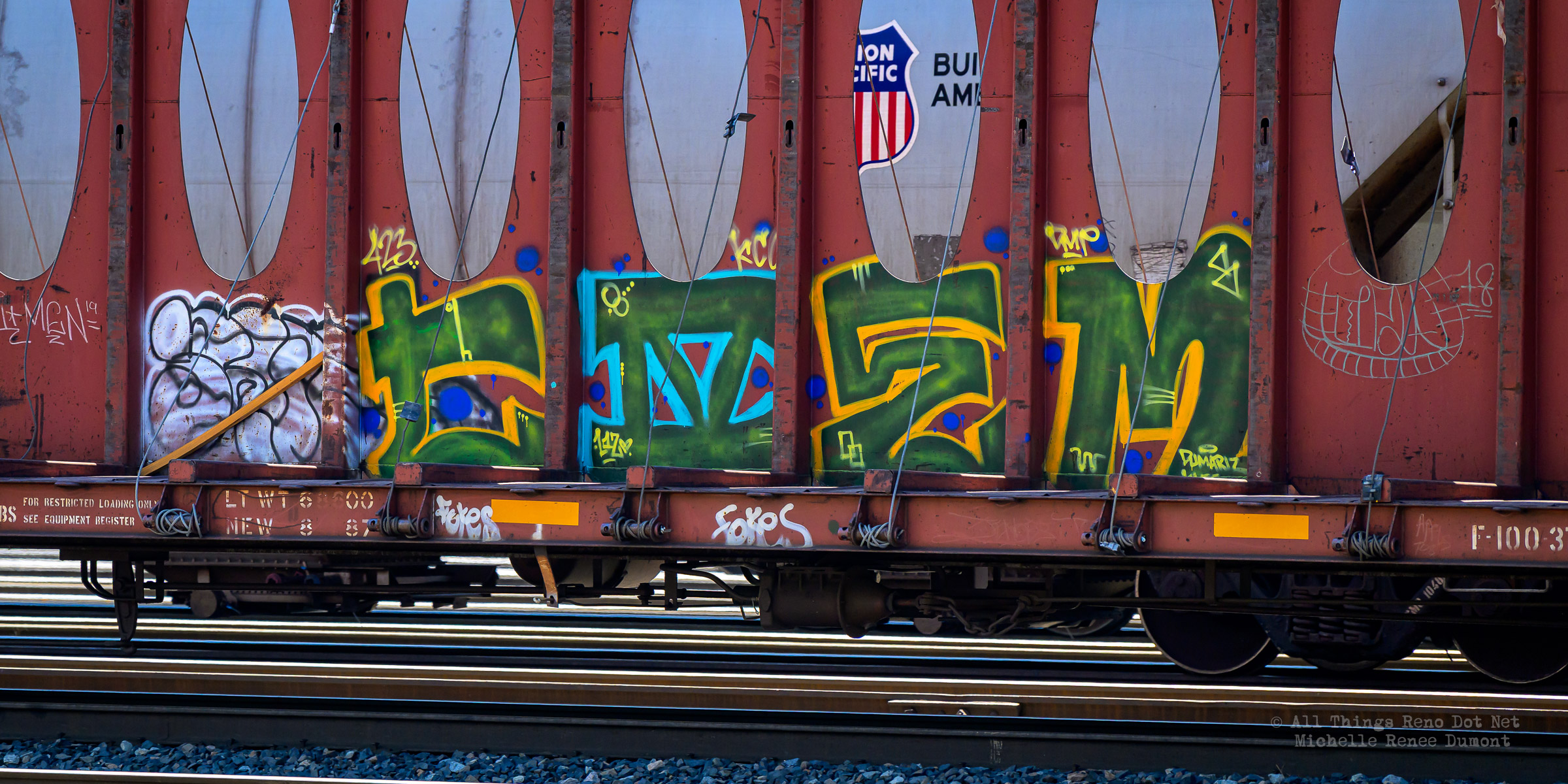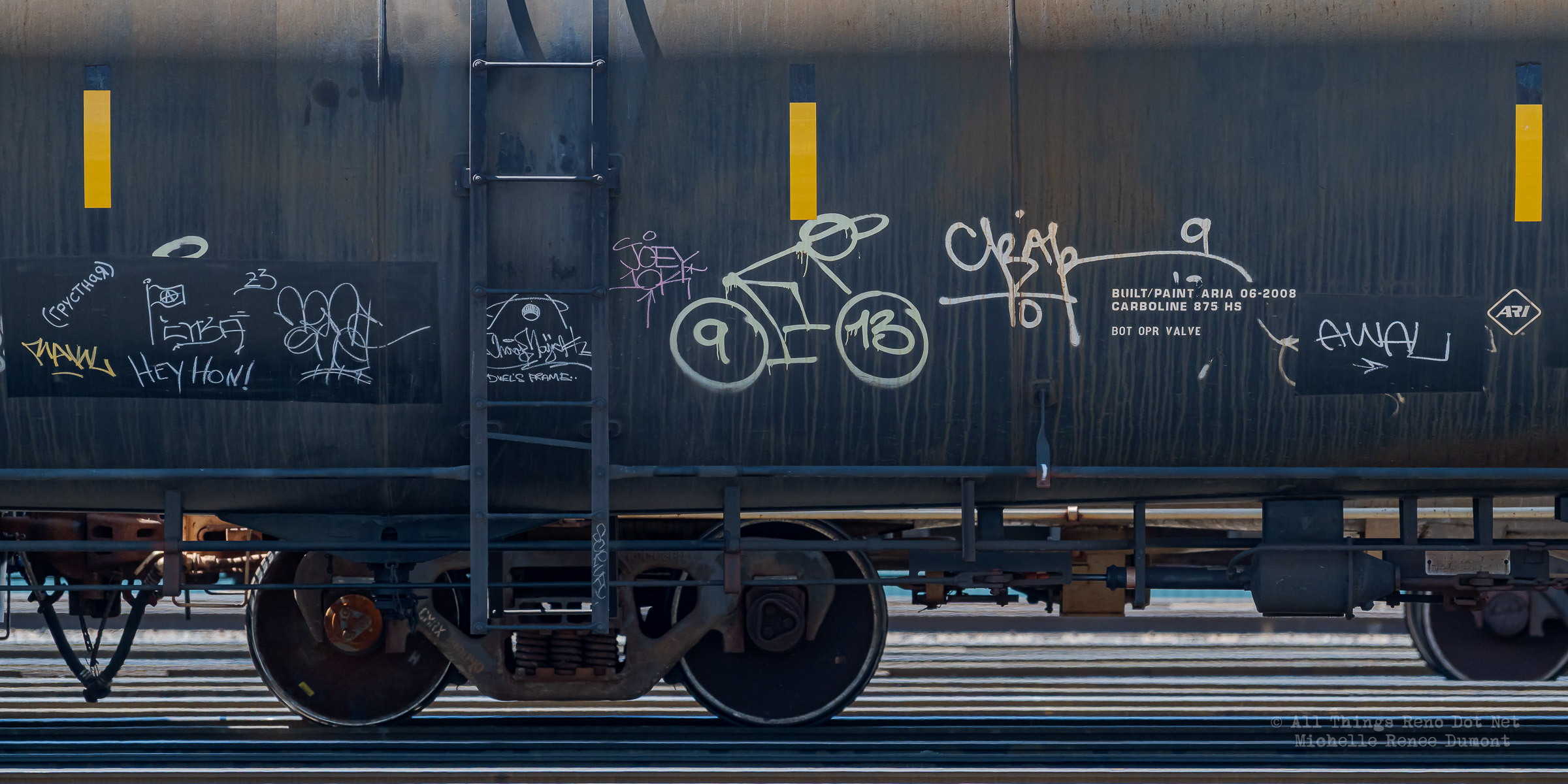 One of my daily projects is to bus over to the Union Pacific rail yard to photograph the sometimes colorful art work applied to train box cars and tanker cars. This is just a sampling of the images I’ve shot for the project over the years