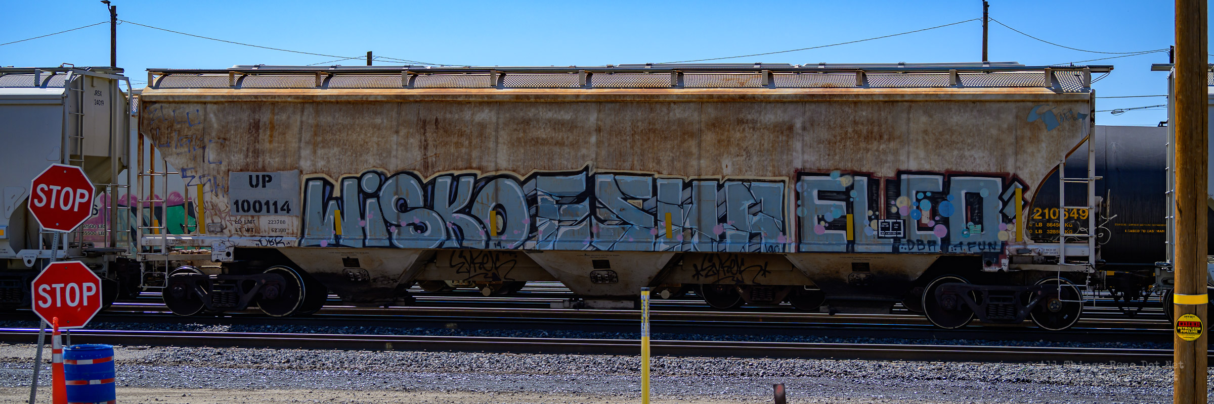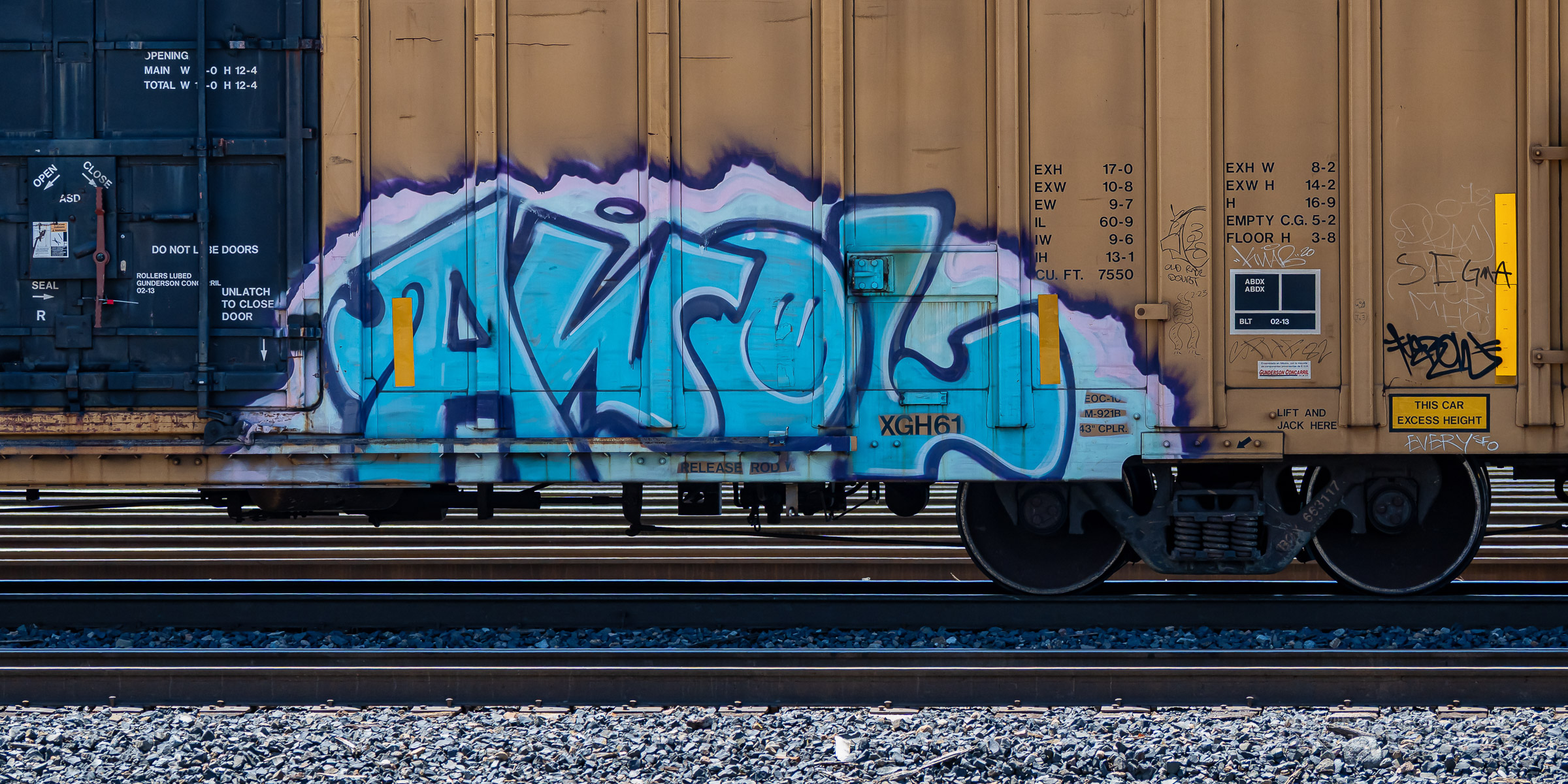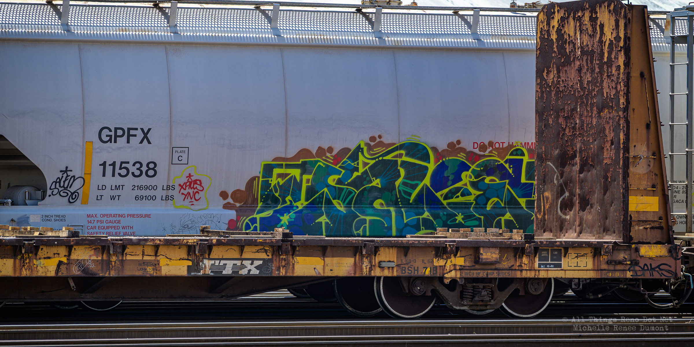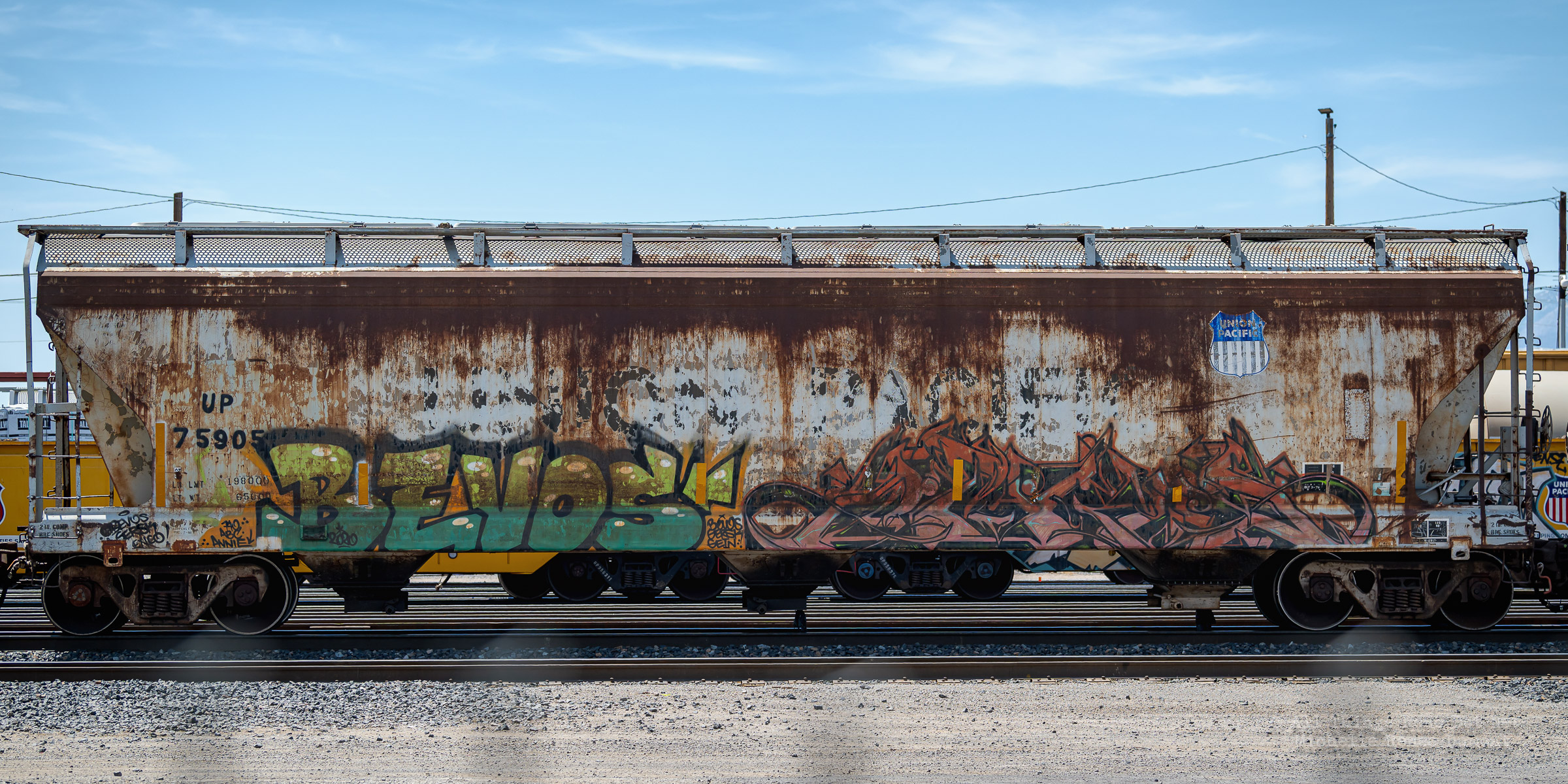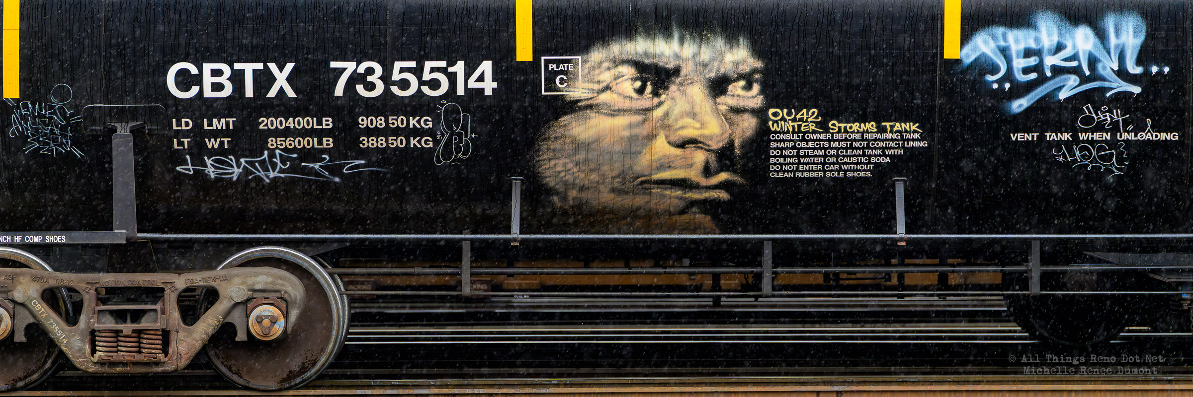 One of my daily projects is to bus over to the Union Pacific rail yard to photograph the sometimes colorful art work applied to train box cars and tanker cars. This is just a sampling of the images I’ve shot for the project over the years