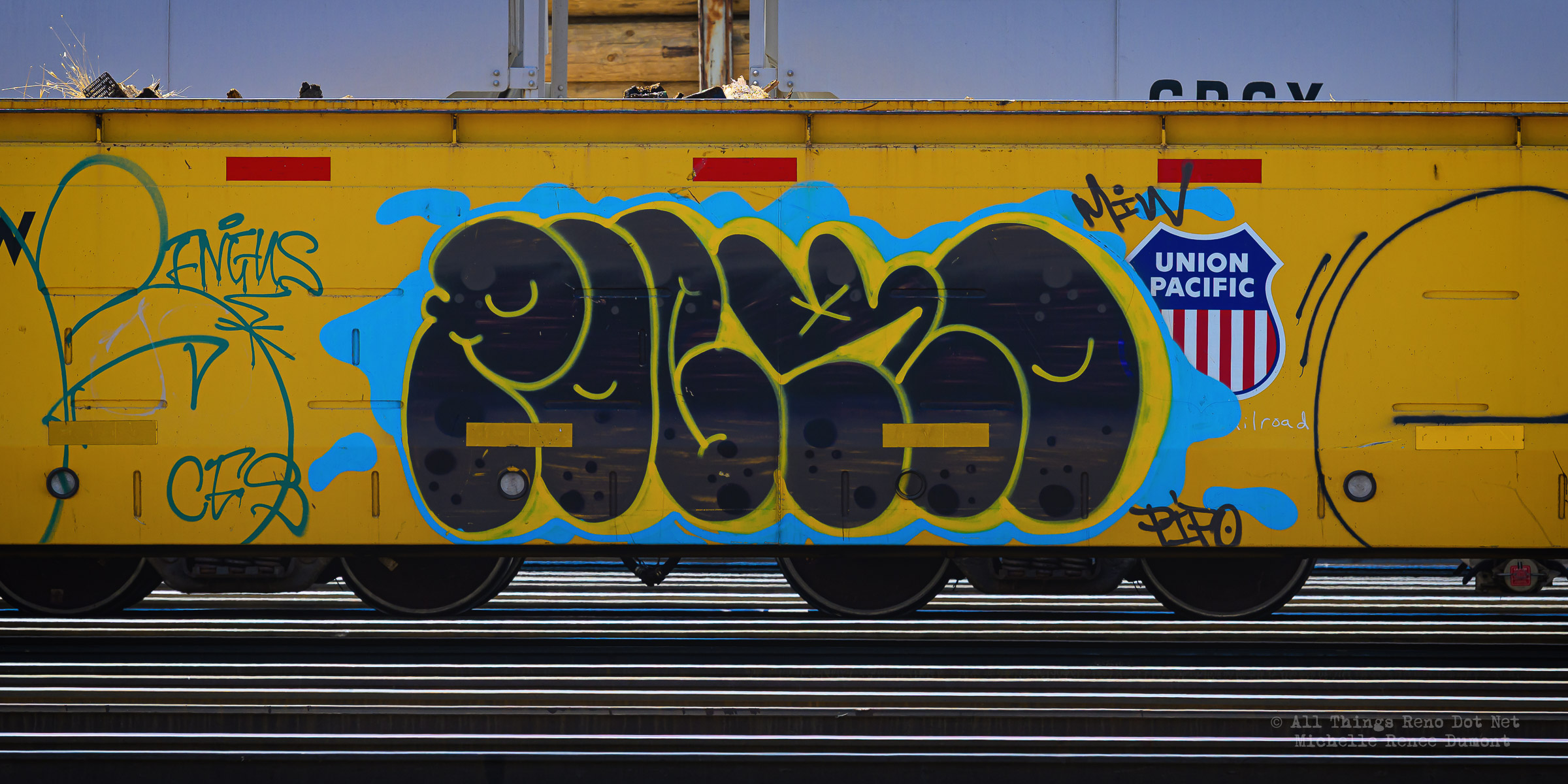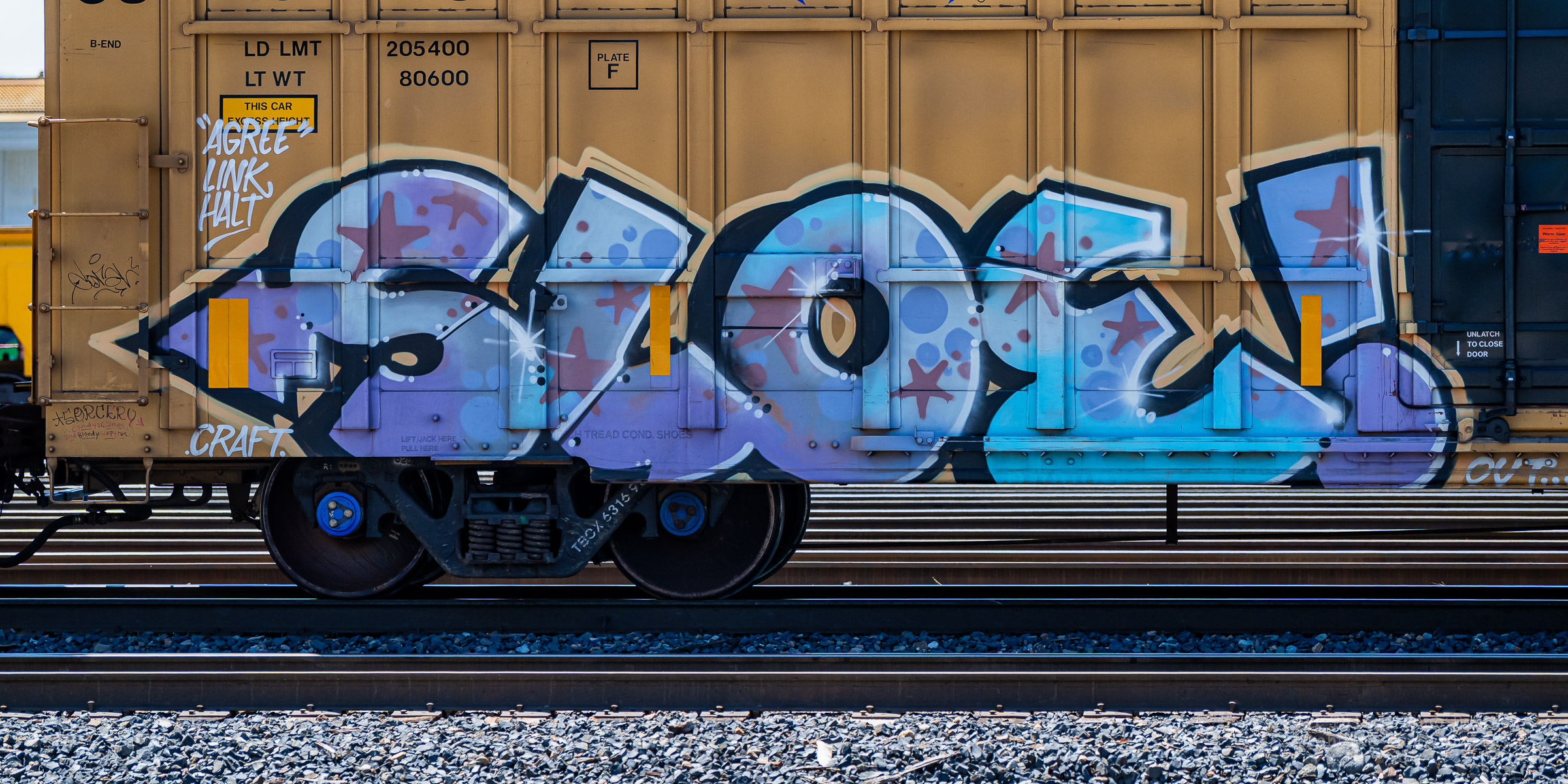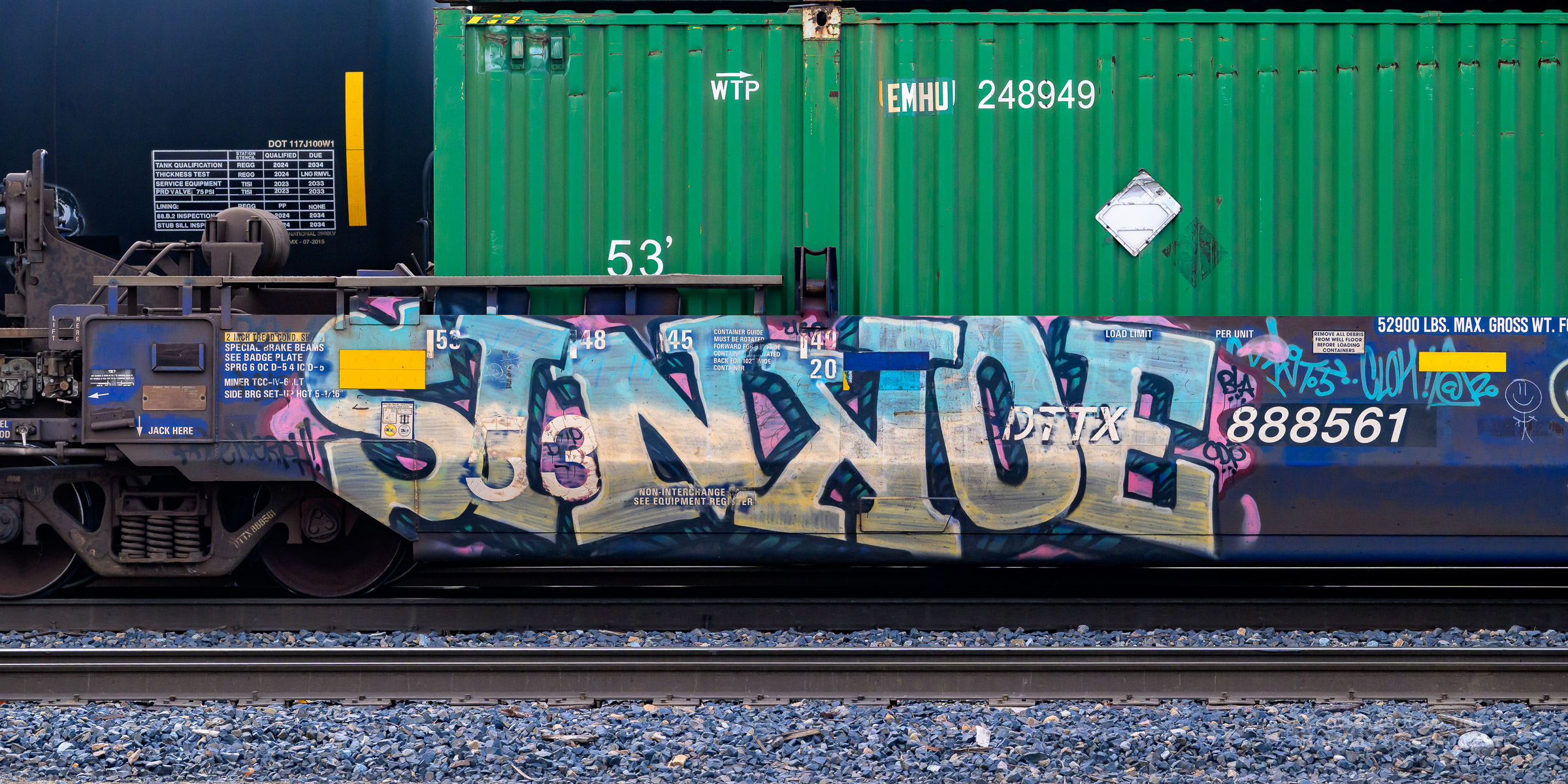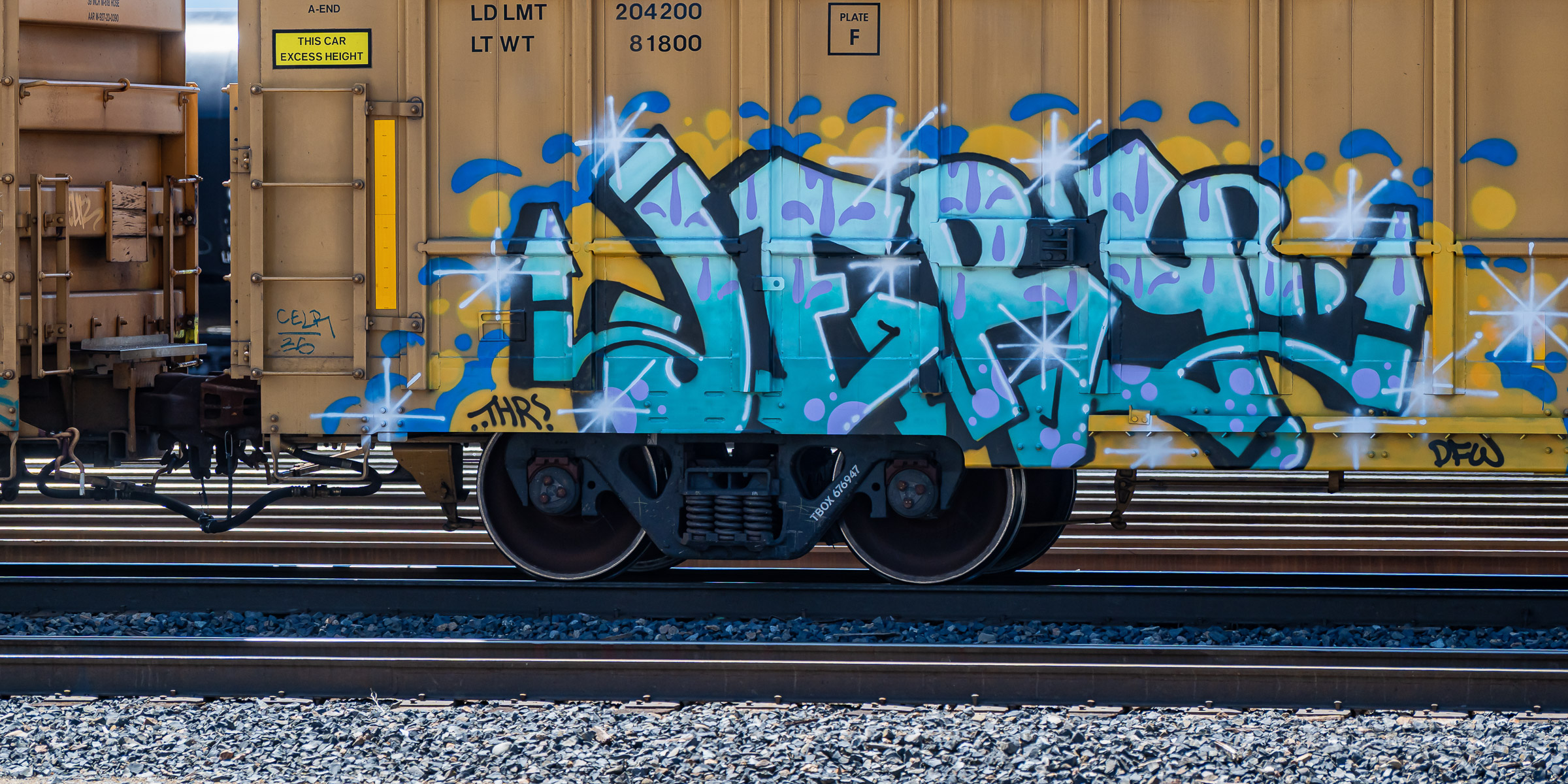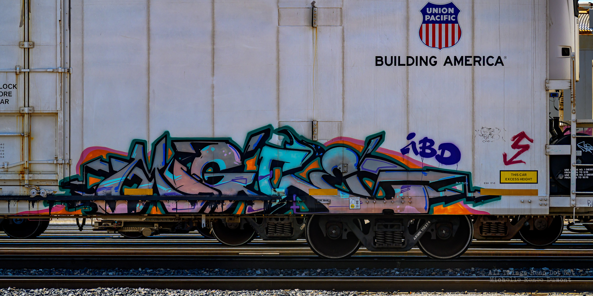 One of my daily projects is to bus over to the Union Pacific rail yard to photograph the sometimes colorful art work applied to train box cars and tanker cars. This is just a sampling of the images I’ve shot for the project over the years