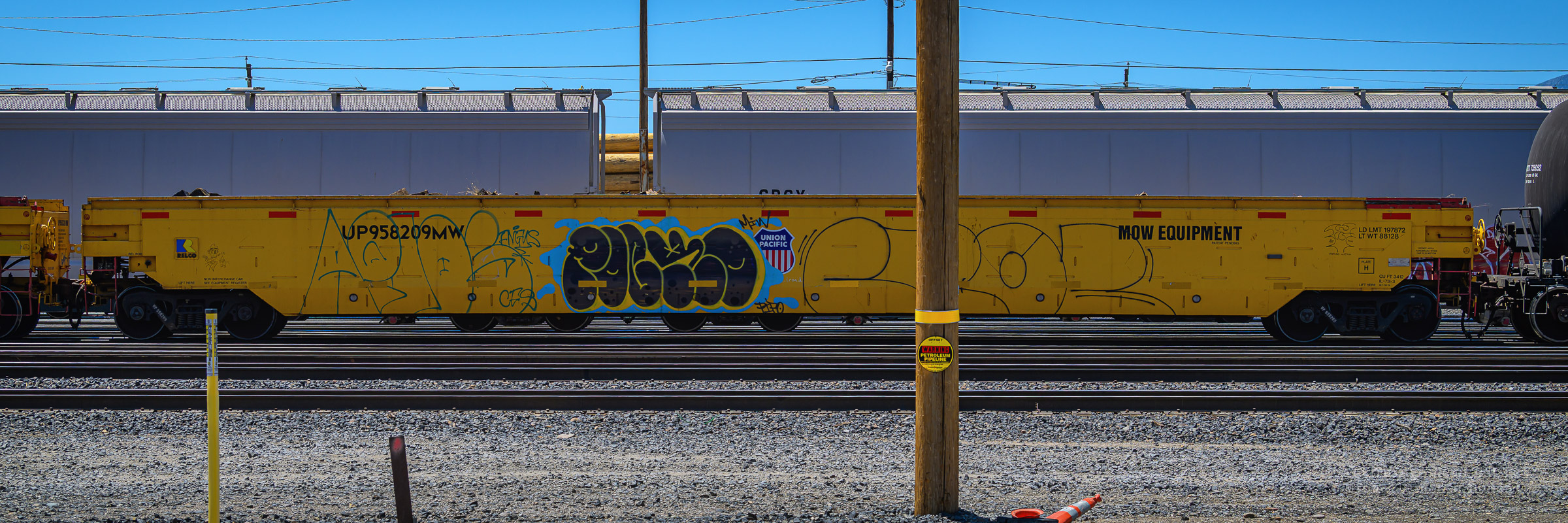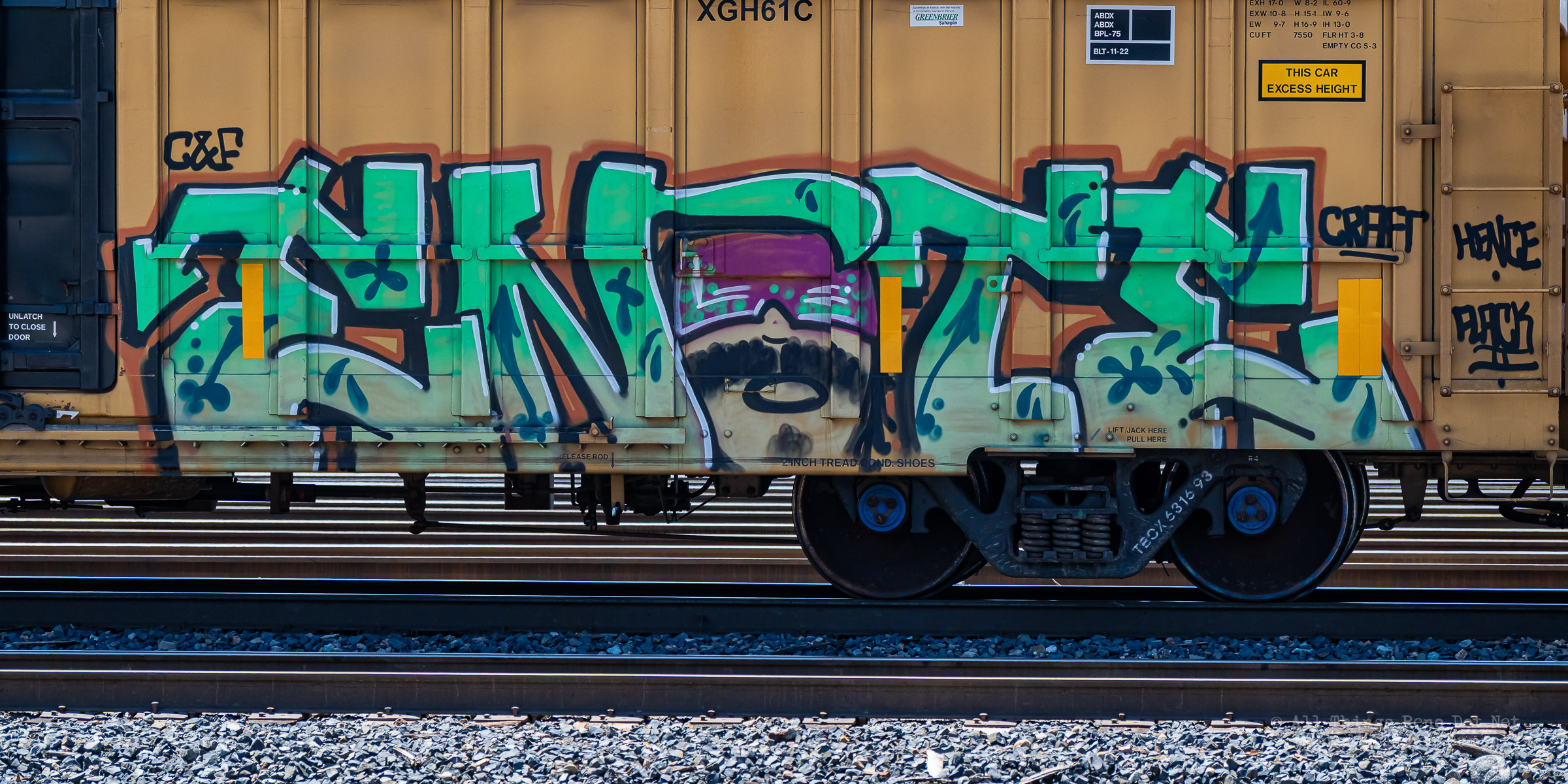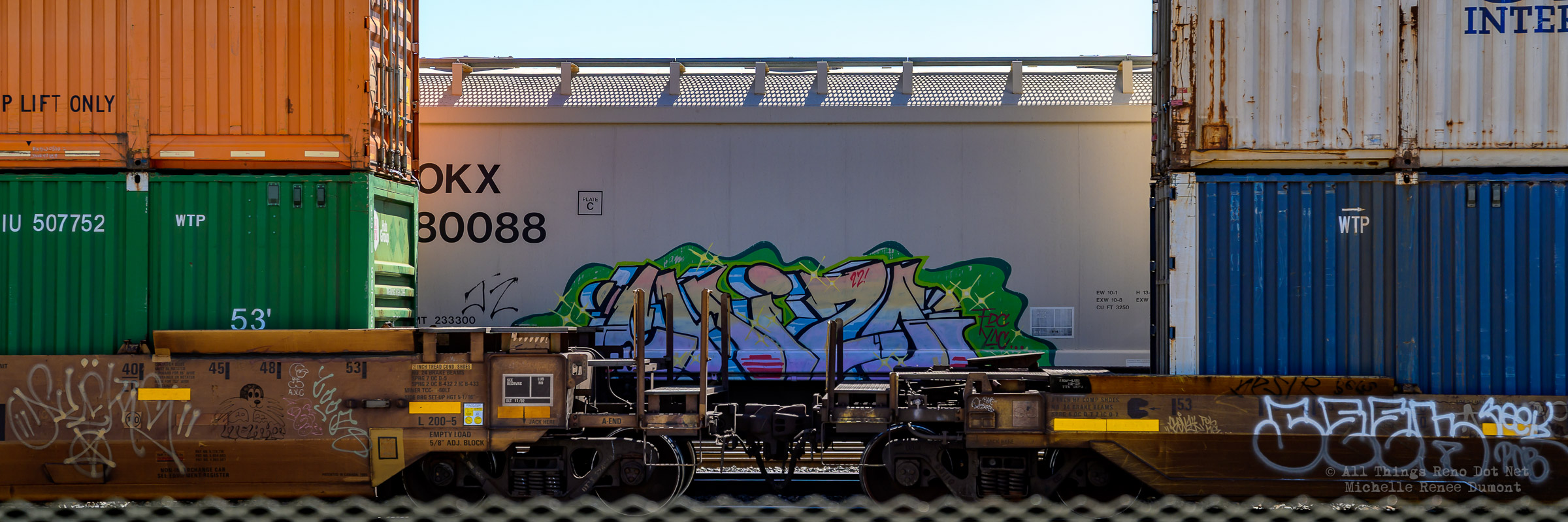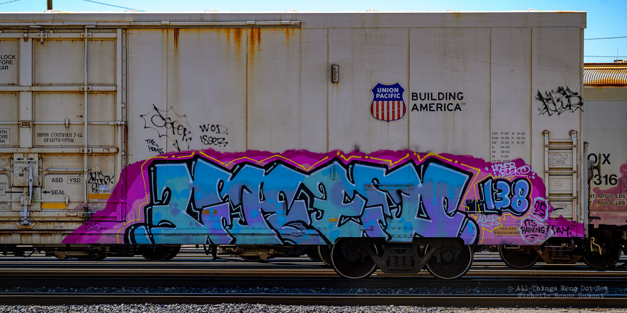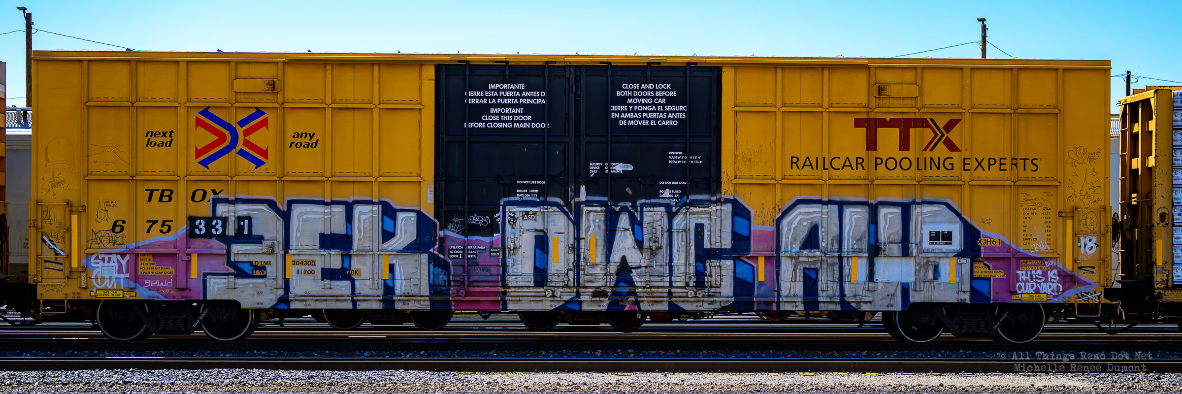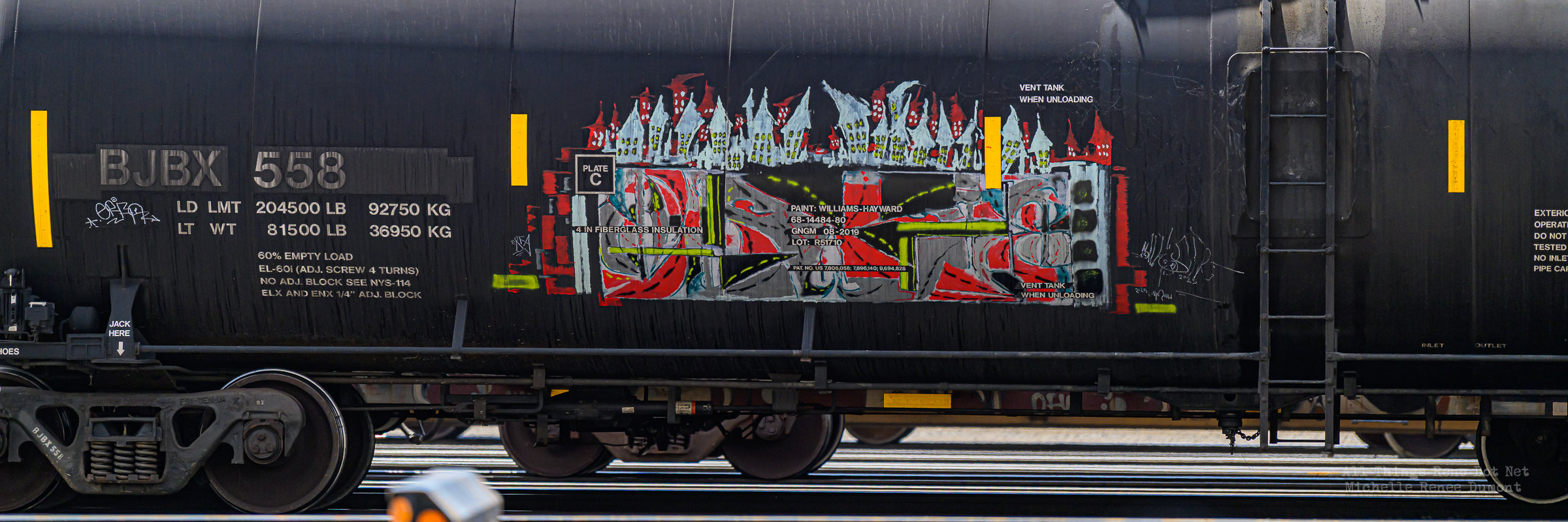 One of my daily projects is to bus over to the Union Pacific rail yard to photograph the sometimes colorful art work applied to train box cars and tanker cars. This is just a sampling of the images I’ve shot for the project over the years