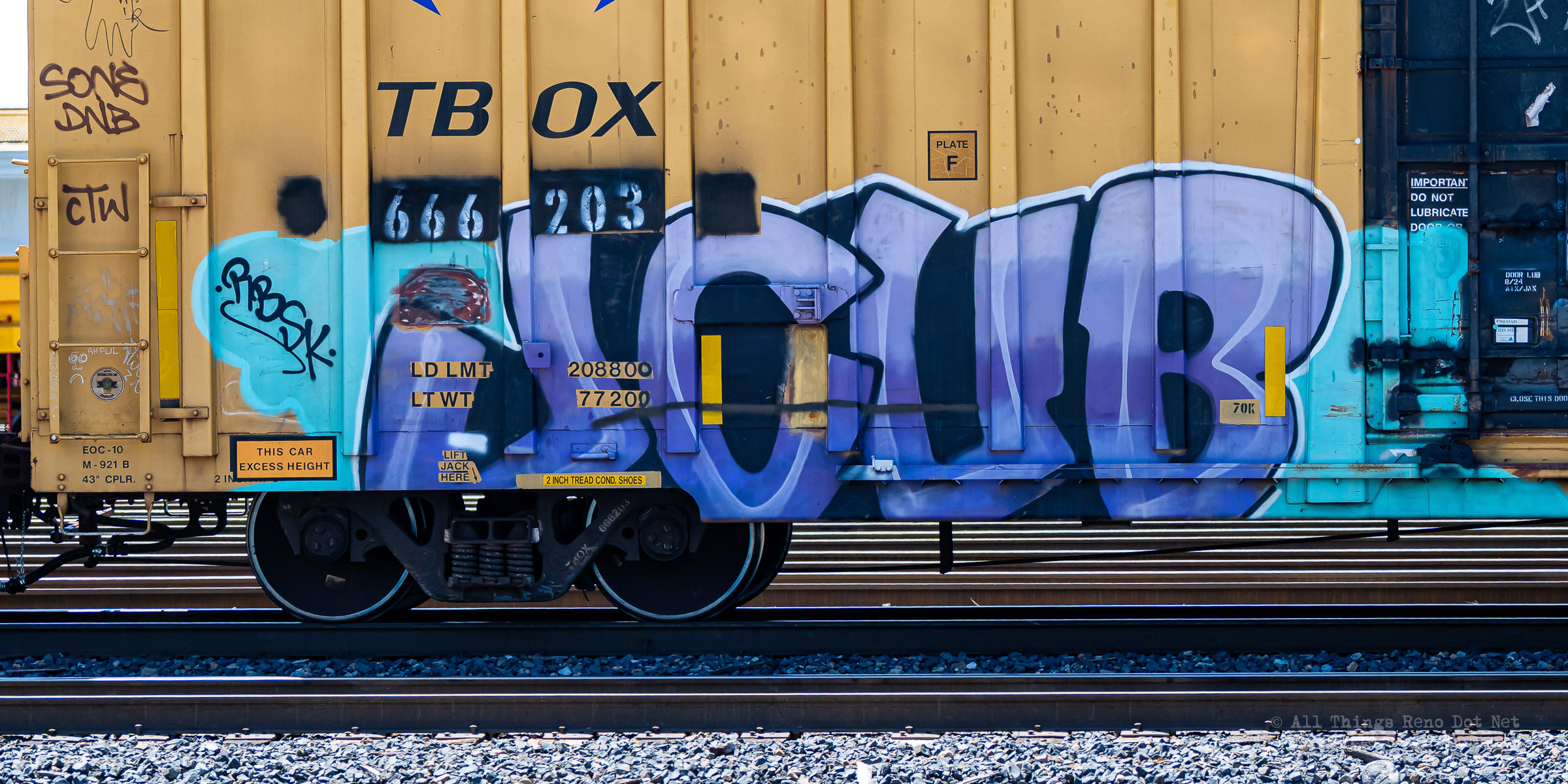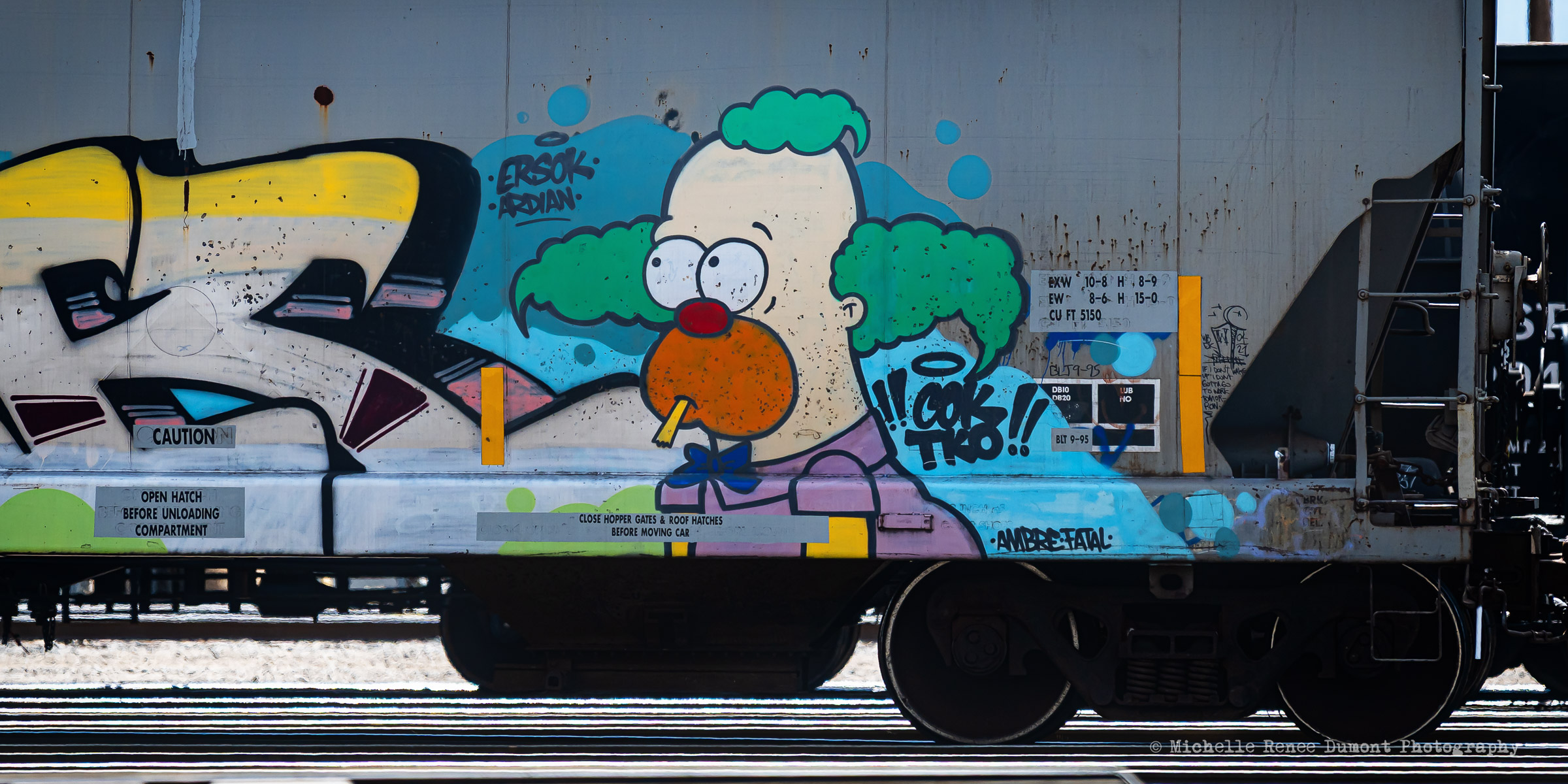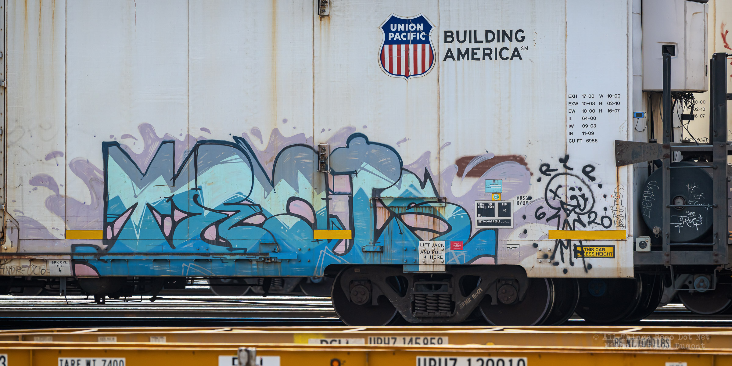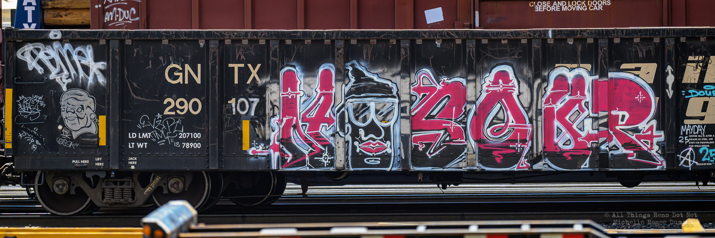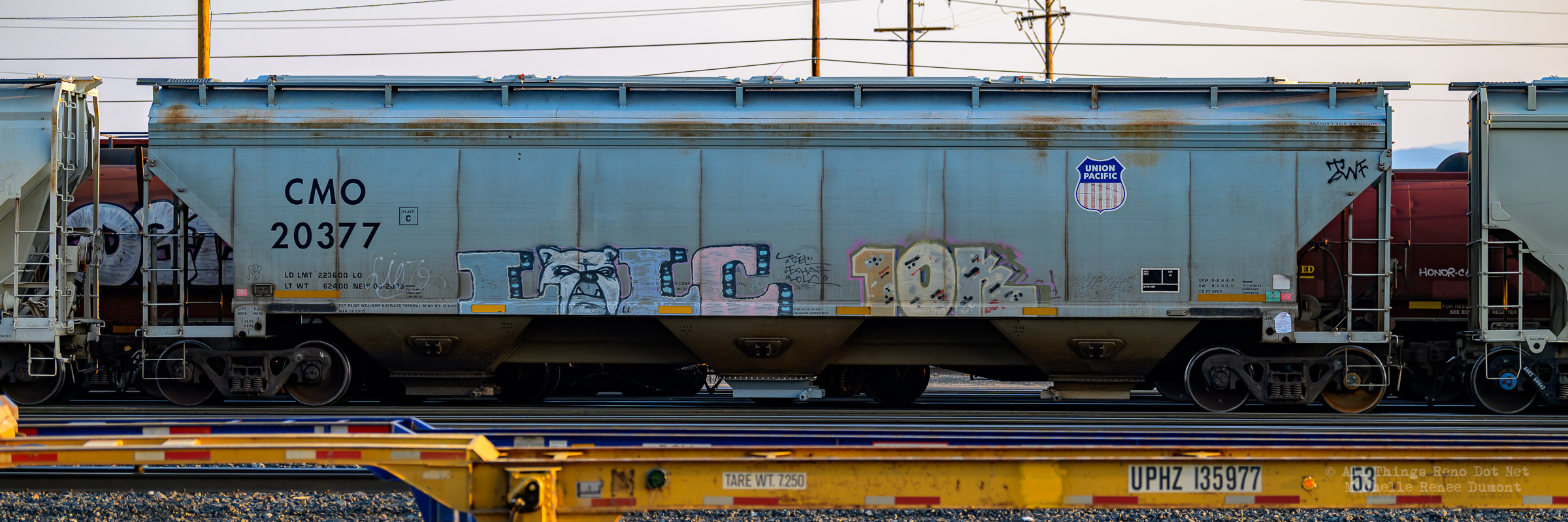 One of my daily projects is to bus over to the Union Pacific rail yard to photograph the sometimes colorful art work applied to train box cars and tanker cars. This is just a sampling of the images I’ve shot for the project over the years