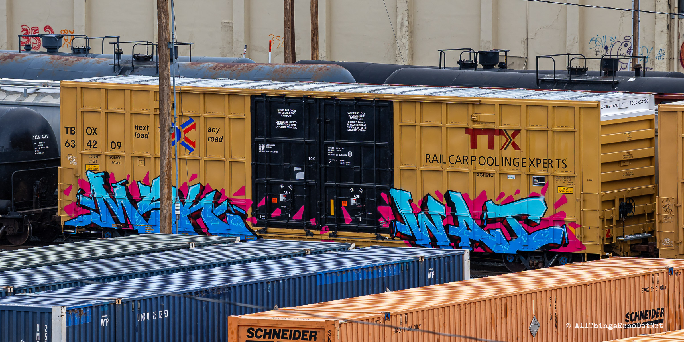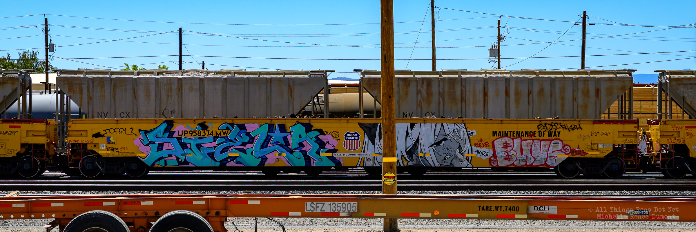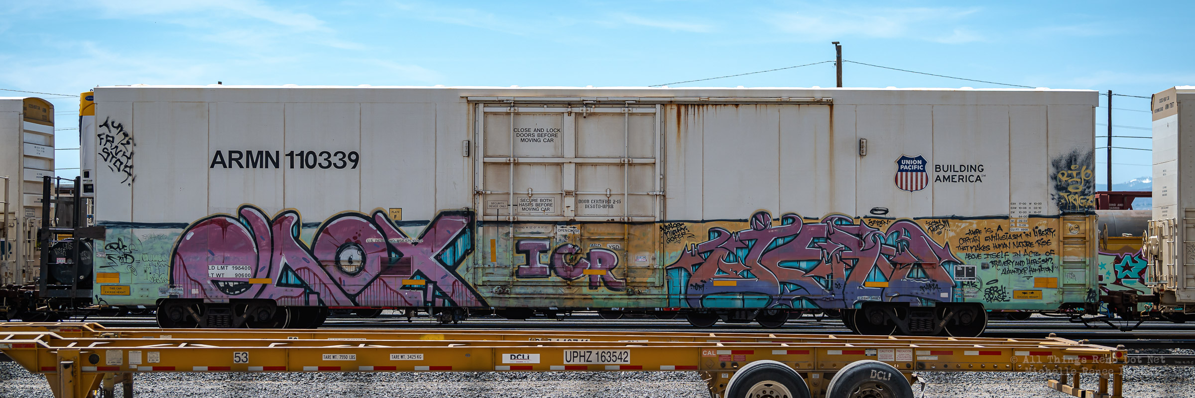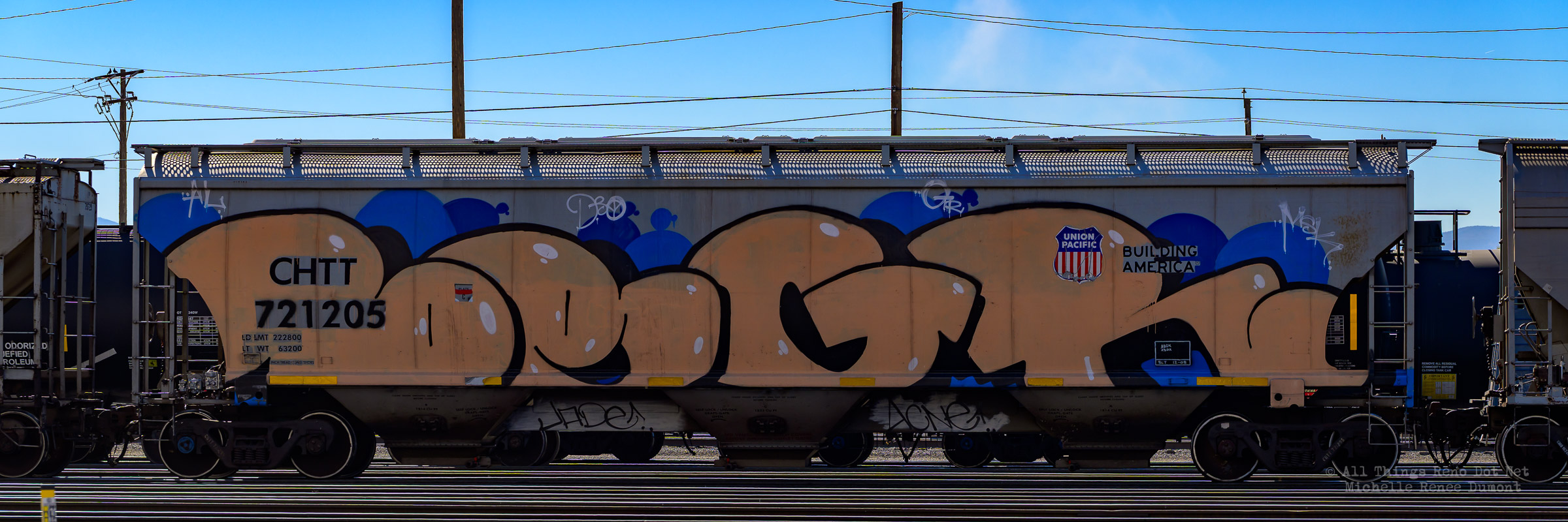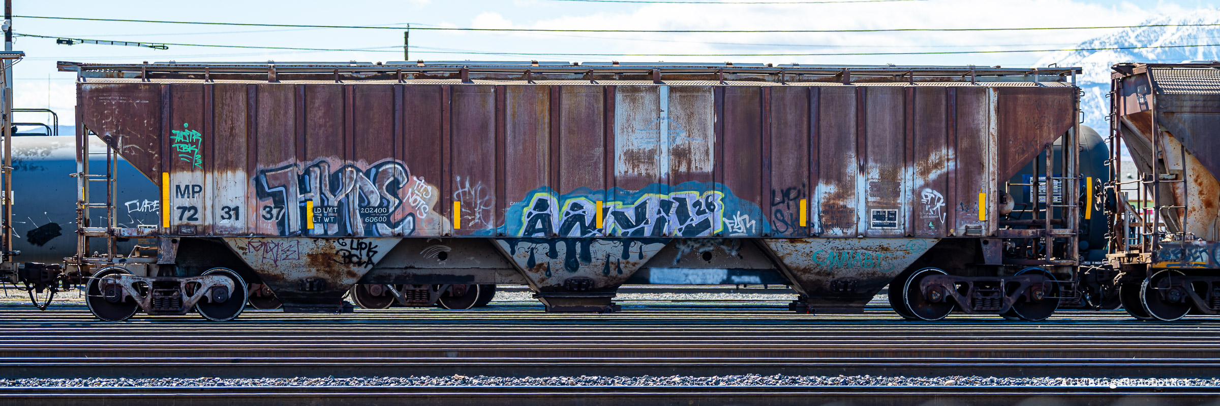 One of my daily projects is to bus over to the Union Pacific rail yard to photograph the sometimes colorful art work applied to train box cars and tanker cars. This is just a sampling of the images I’ve shot for the project over the years