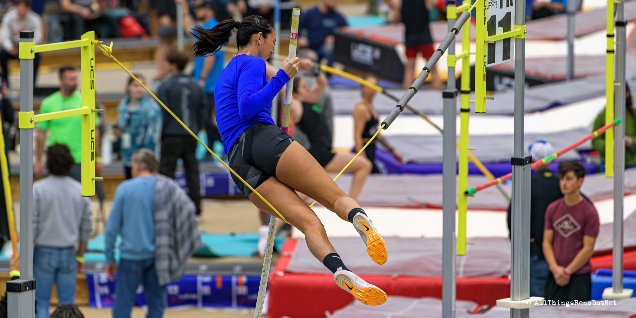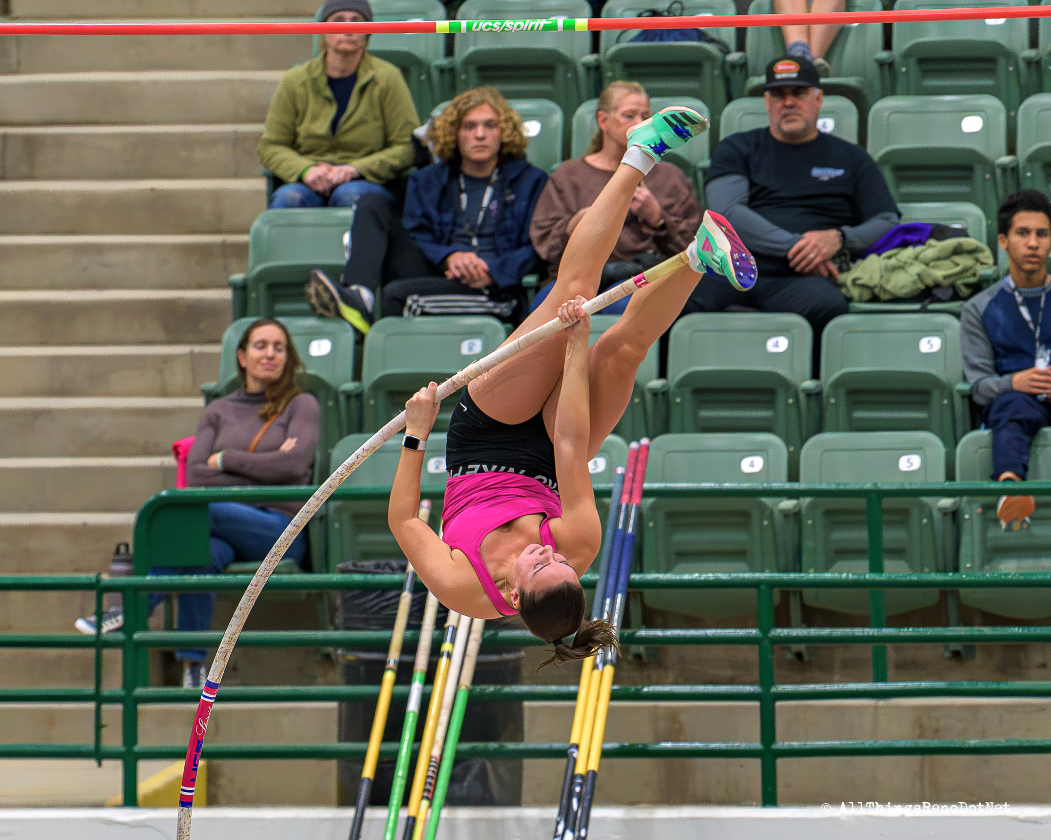 This was an event I covered back in January 2024 at the Reno Sparks Livestock Events Center. It was a free event for spectators. Well, I perceived it to be. I entered the venue and wasn’t told there was a spectator fee. Anyway, there’s another event scheduled for January 2026, the National Pole Vault Summit 2026, and this one has an advertised spectator fee. I have paid to get into sporting events to photograph them, but only because I got to take advantage of my age and tickets were highly discounted for Seniors ($25 for Adults, $5 for Seniors). But this upcoming event is a little too pricey for me with absolutely no discounts. They don’t even have a media credential availability. So I thought I’d share these images from 2024.