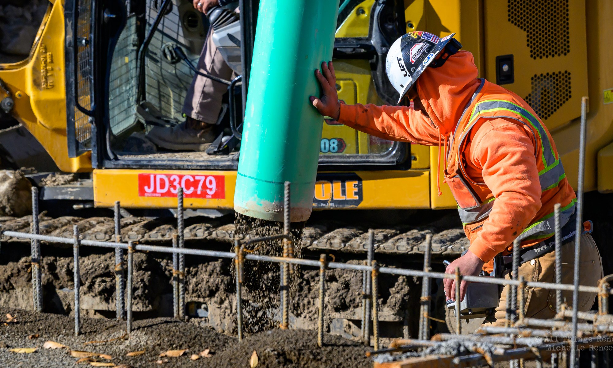 Under the close watchful eye of Supervisors, crews were out on a cold autumn Saturday morning working on back filling the bridge abutments in anticipation of the upcoming scheduled reopening of the river. Some were busy removing any imperfections and/or rough edges in the abutment concrete, while others were moving boulders around like they were pebbles with the Excavator.