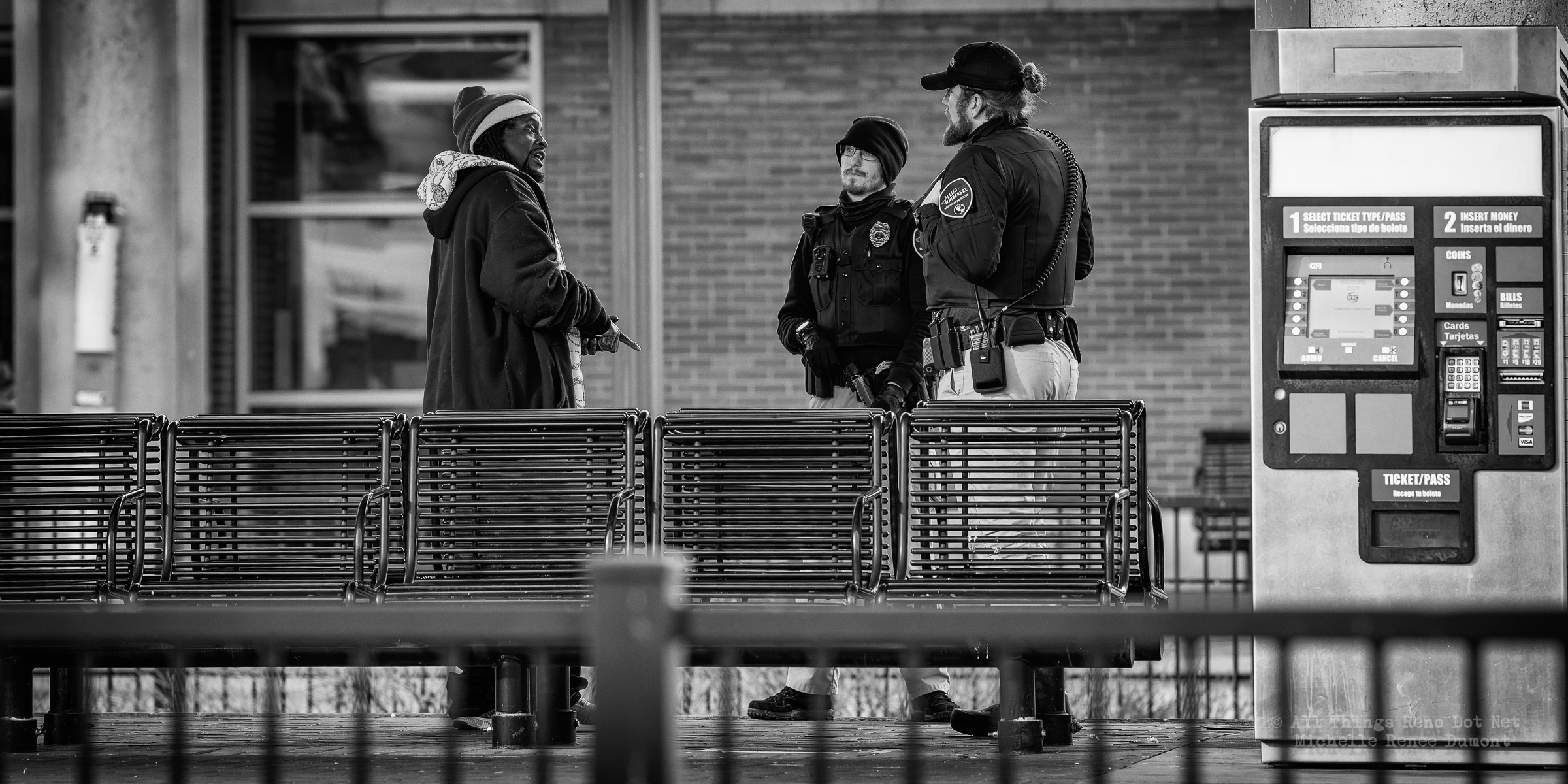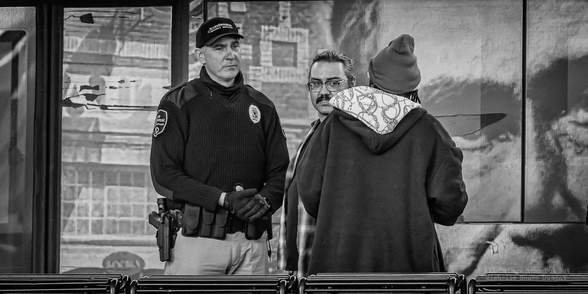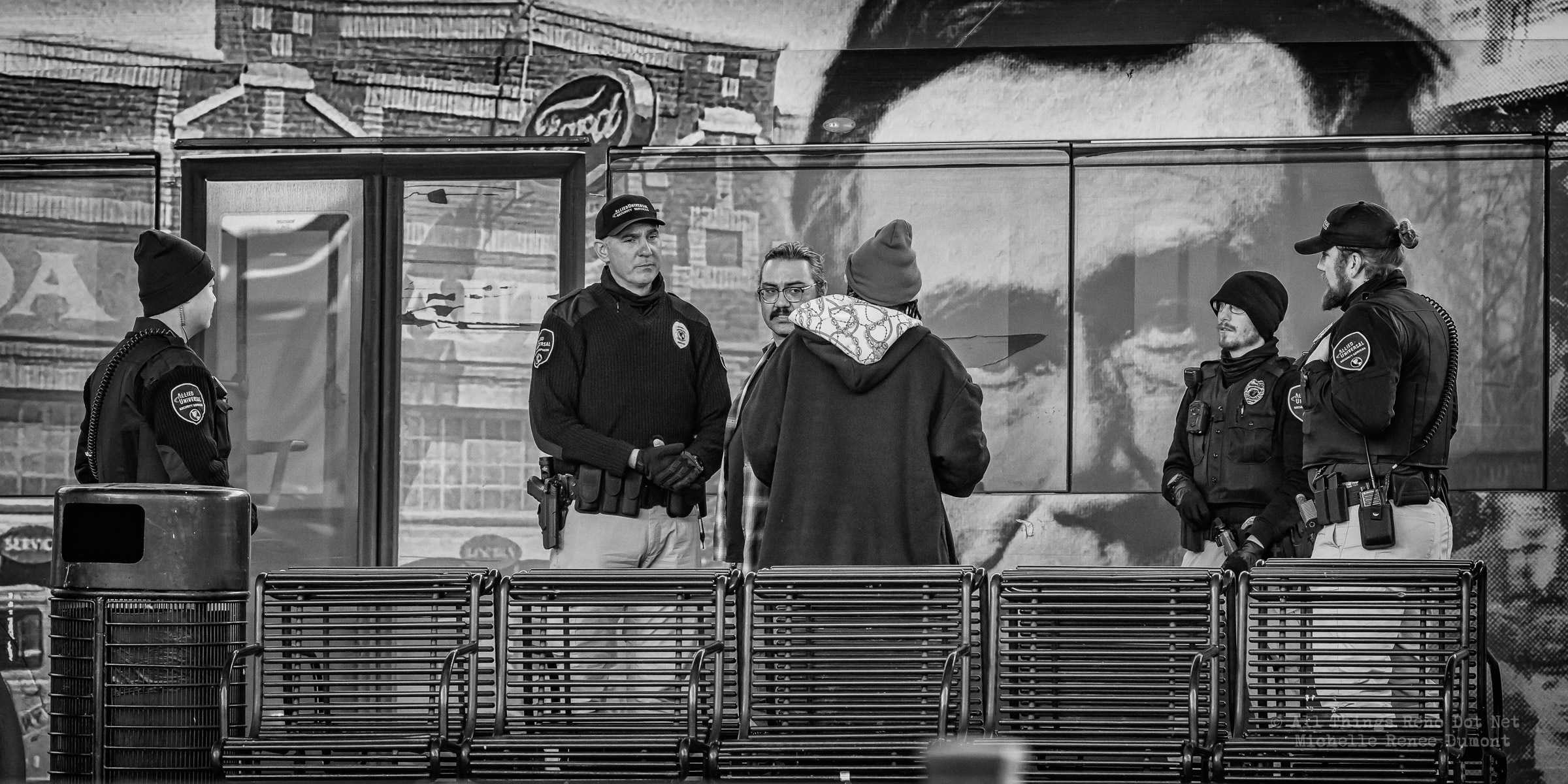 Our downtown bus station security have to put up with all sorts on a daily basis. I’m guessing this fella was 86d from the premises for whatever and refuses to leave. So eventually four of them surrounded him. Not sure about the conclusion of this standoff as I boarded my bus and headed home.
