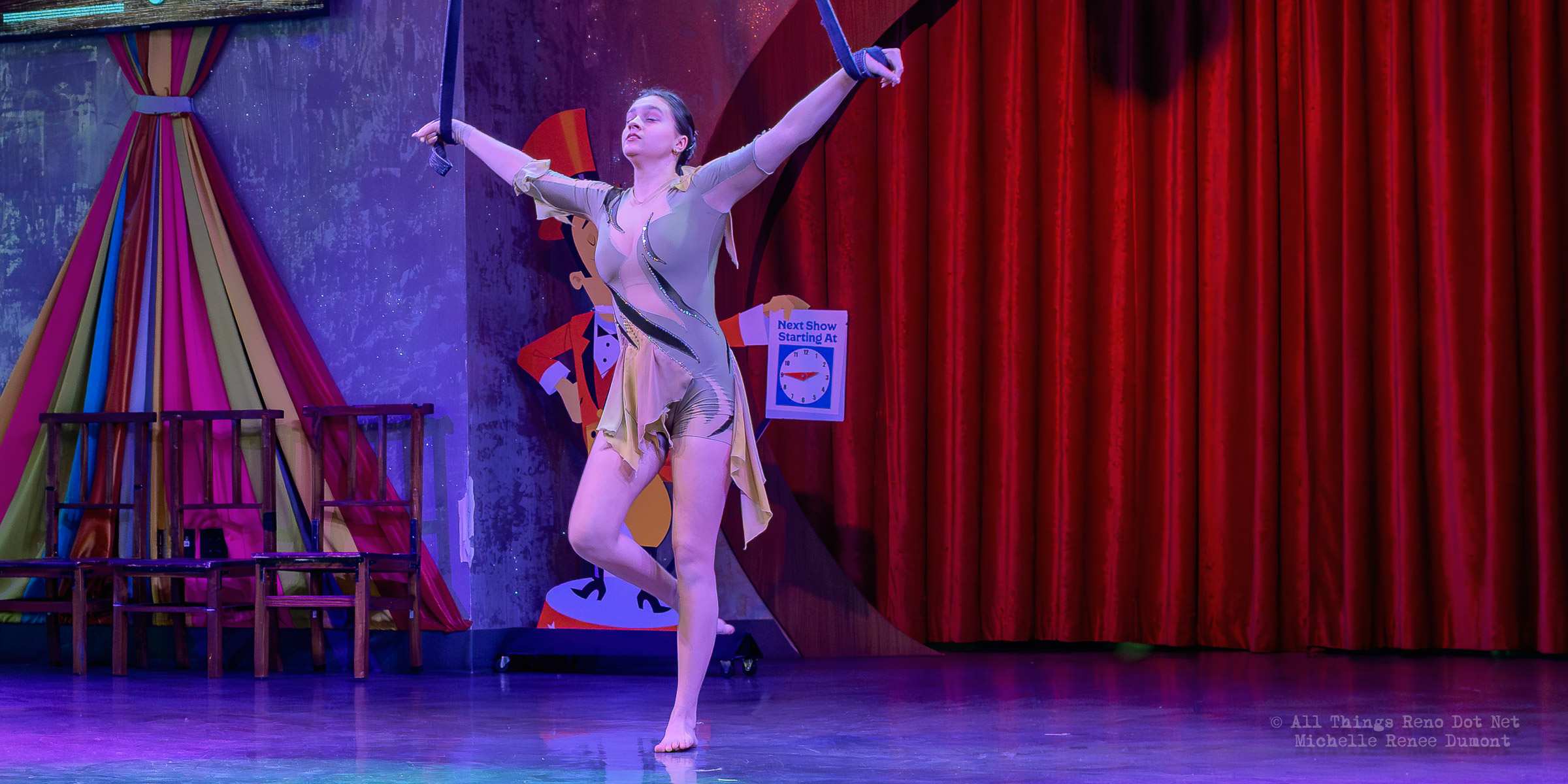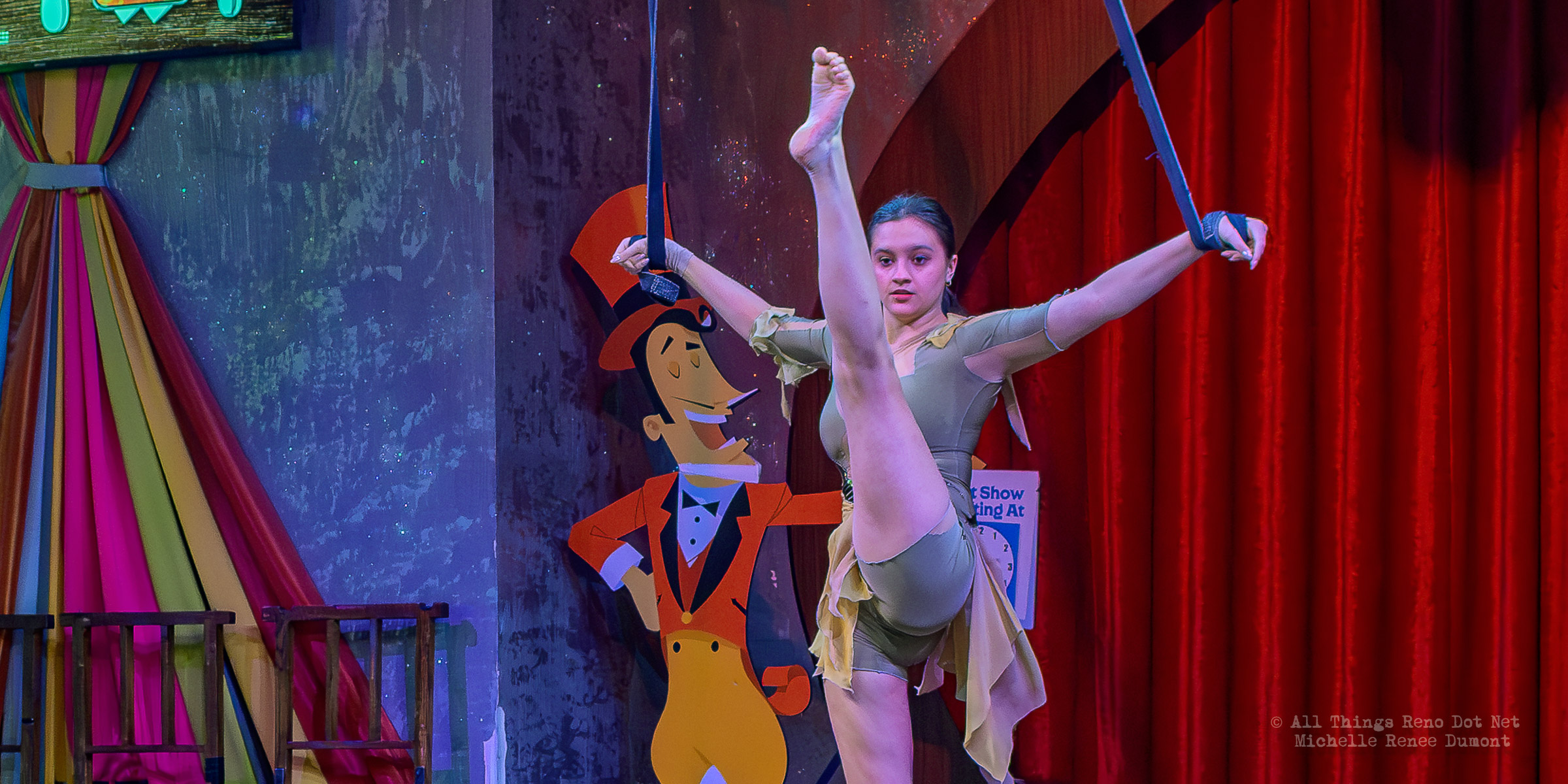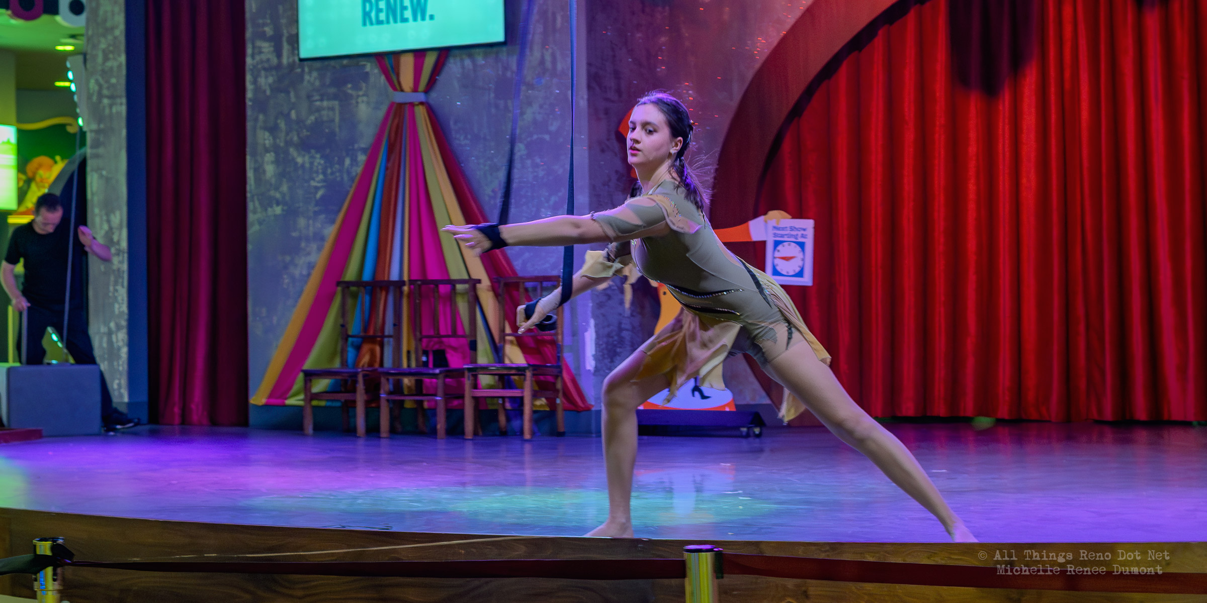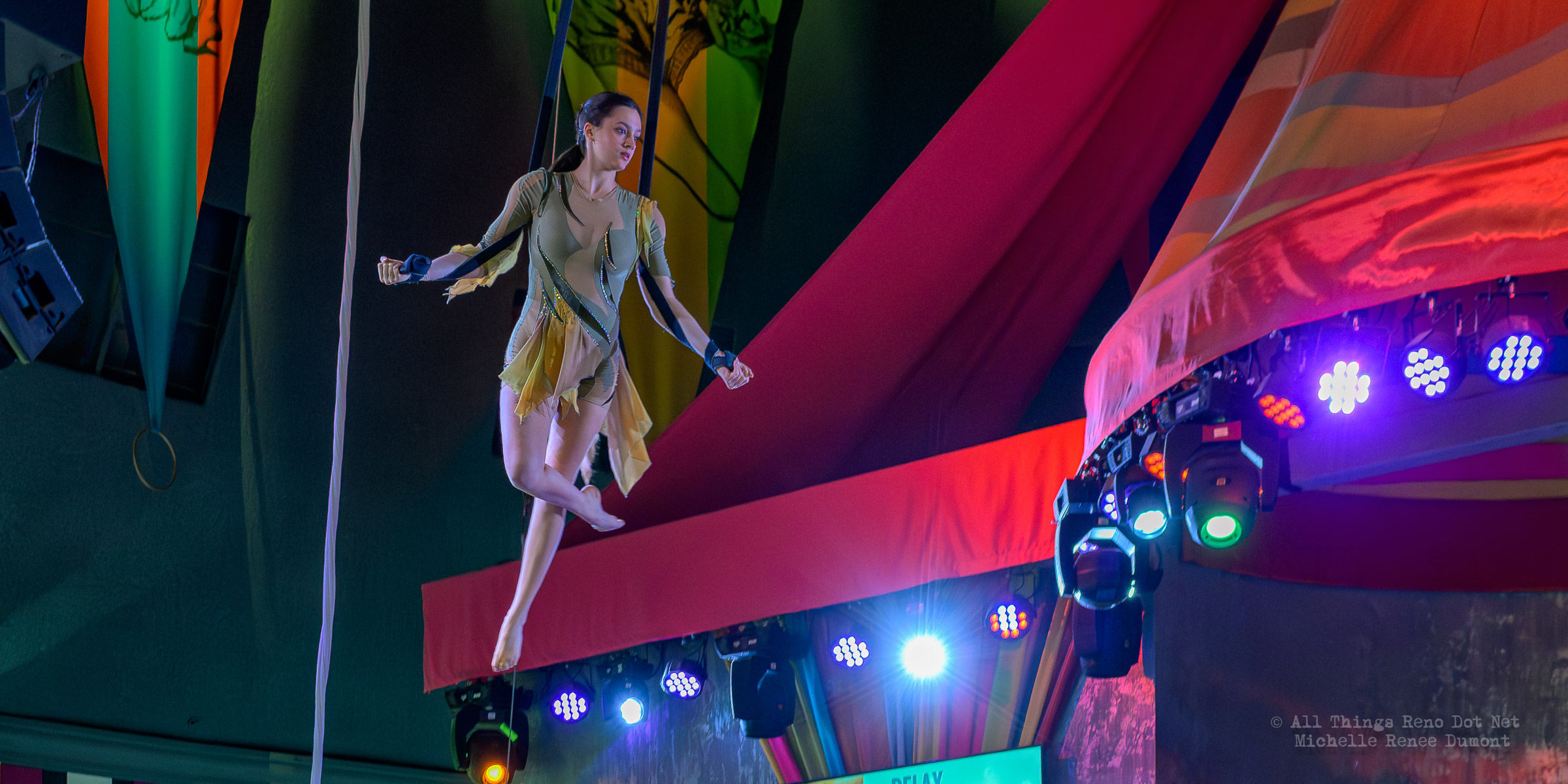 This performer has been here before. I’m guessing, she works with the Cirque du Soleil troop because her act involves giant swings across the stage ala Cirque, while contorting herself from those straps. She’s a very serious performer, never cracking a smile during her entire performance, even while taking her bow at the end.