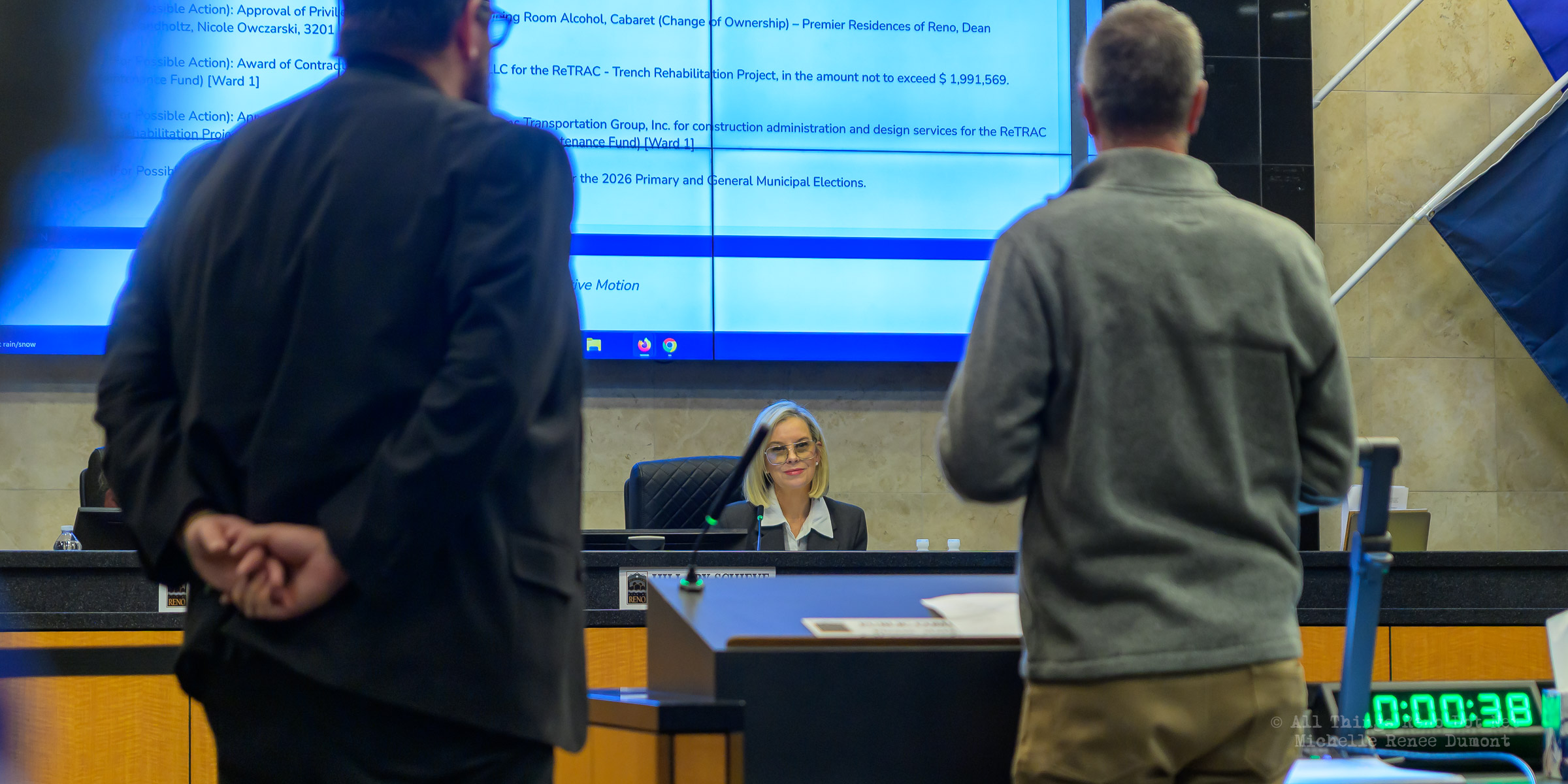 I went to hear the pros and cons of an agreement the city made with the owners of the Reno Aces Baseball Team. The stadium they’ve occupied since 2009, owned by the city, will be handed over to the team owners, with conditions. The conditions was the hot topic of the day
