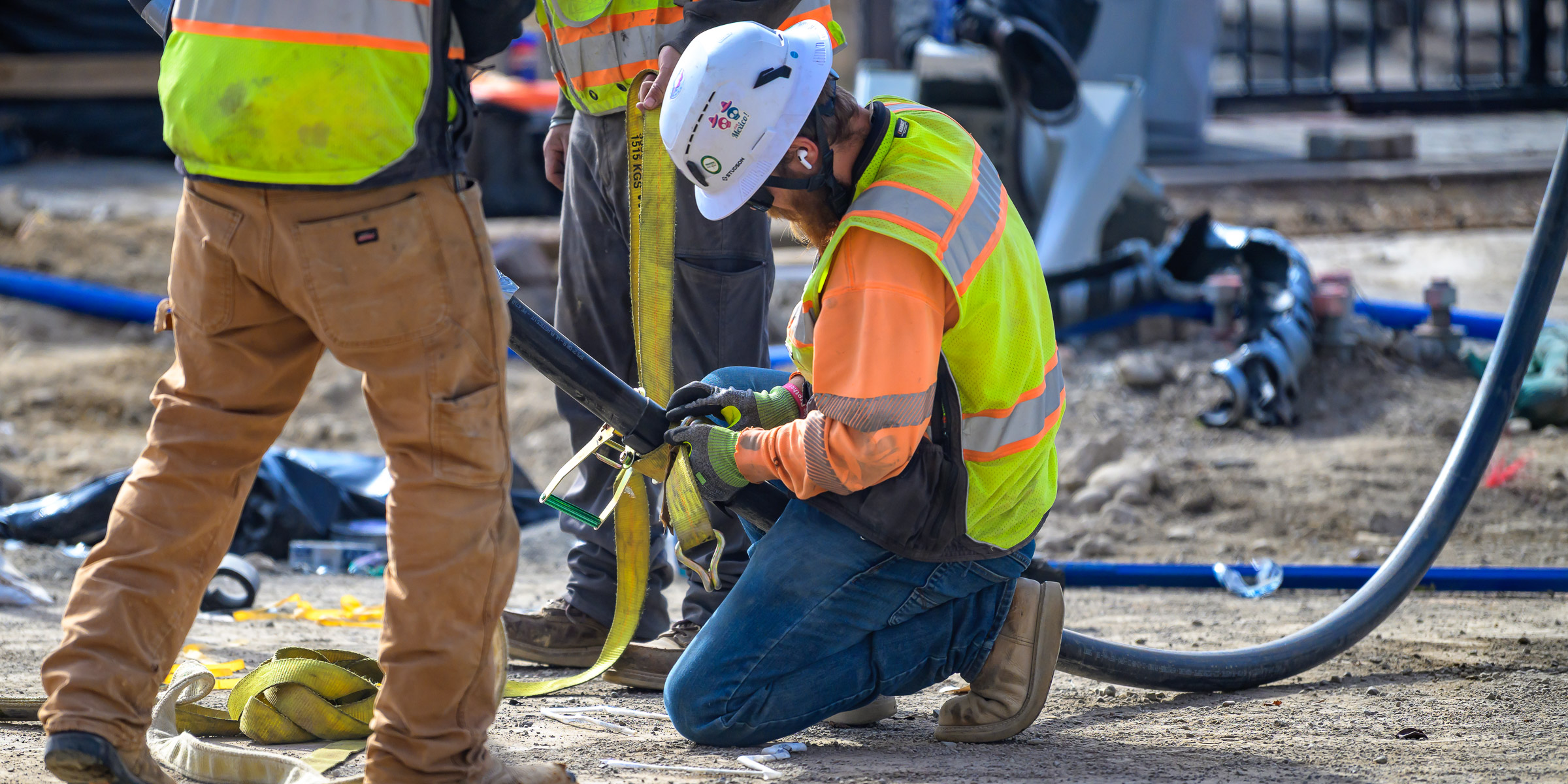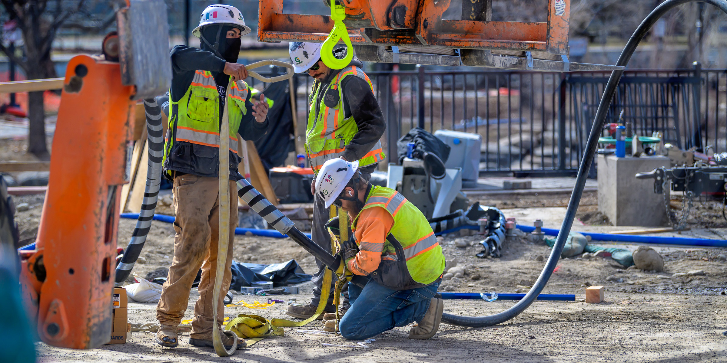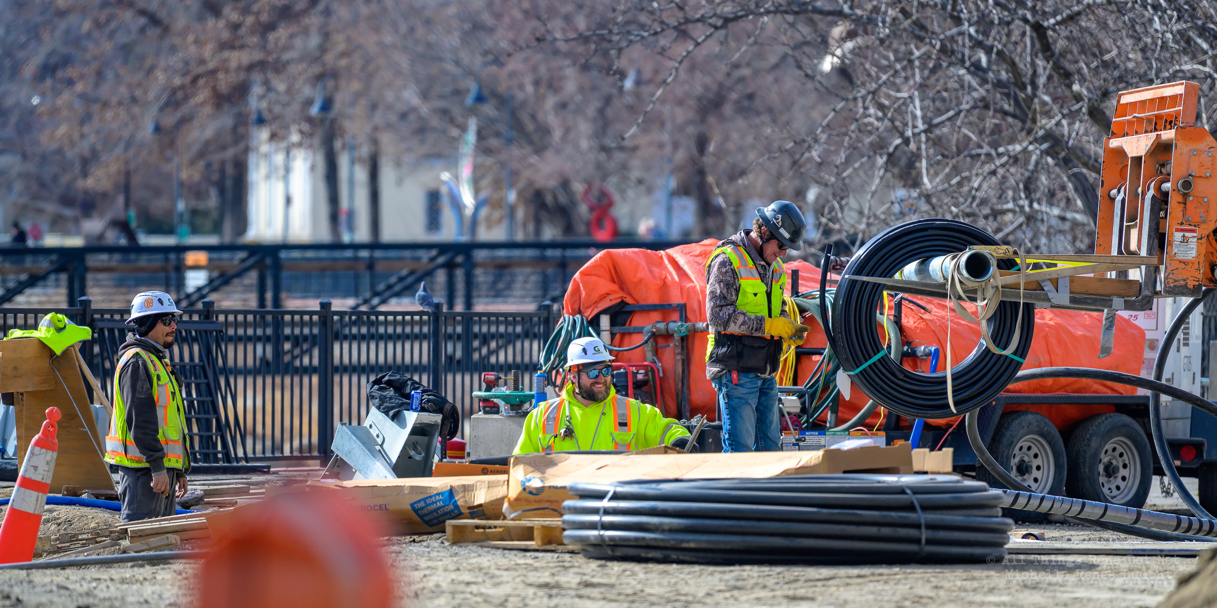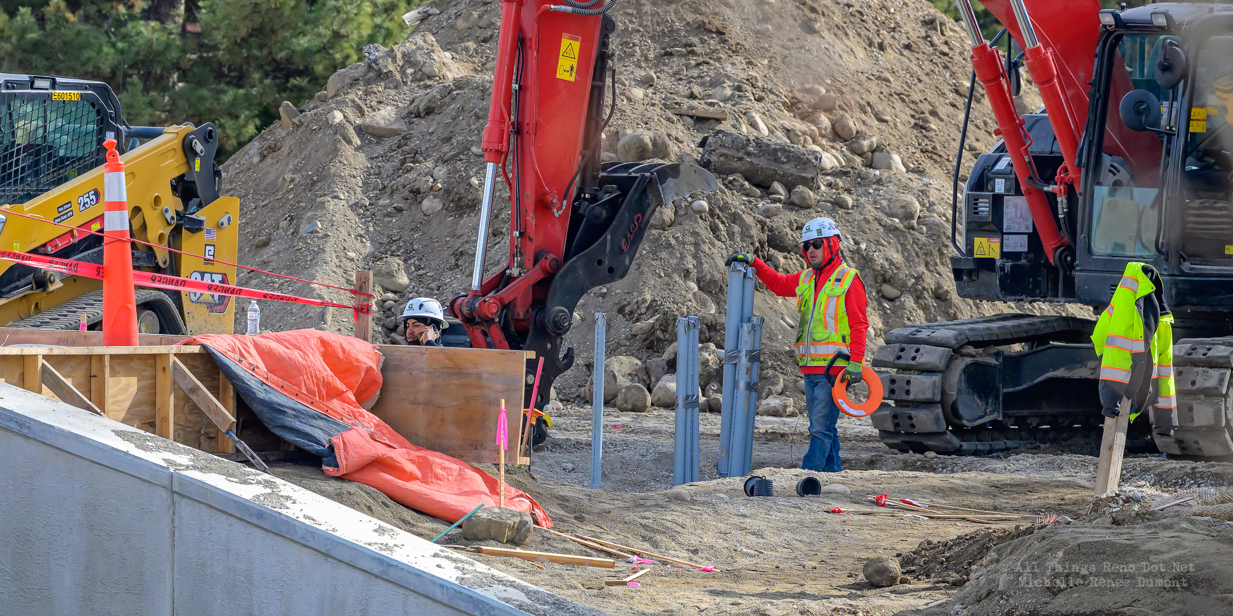 Work continues on the storm drain on the South bridge and plastic water lines are being fished through the North bridge girders.