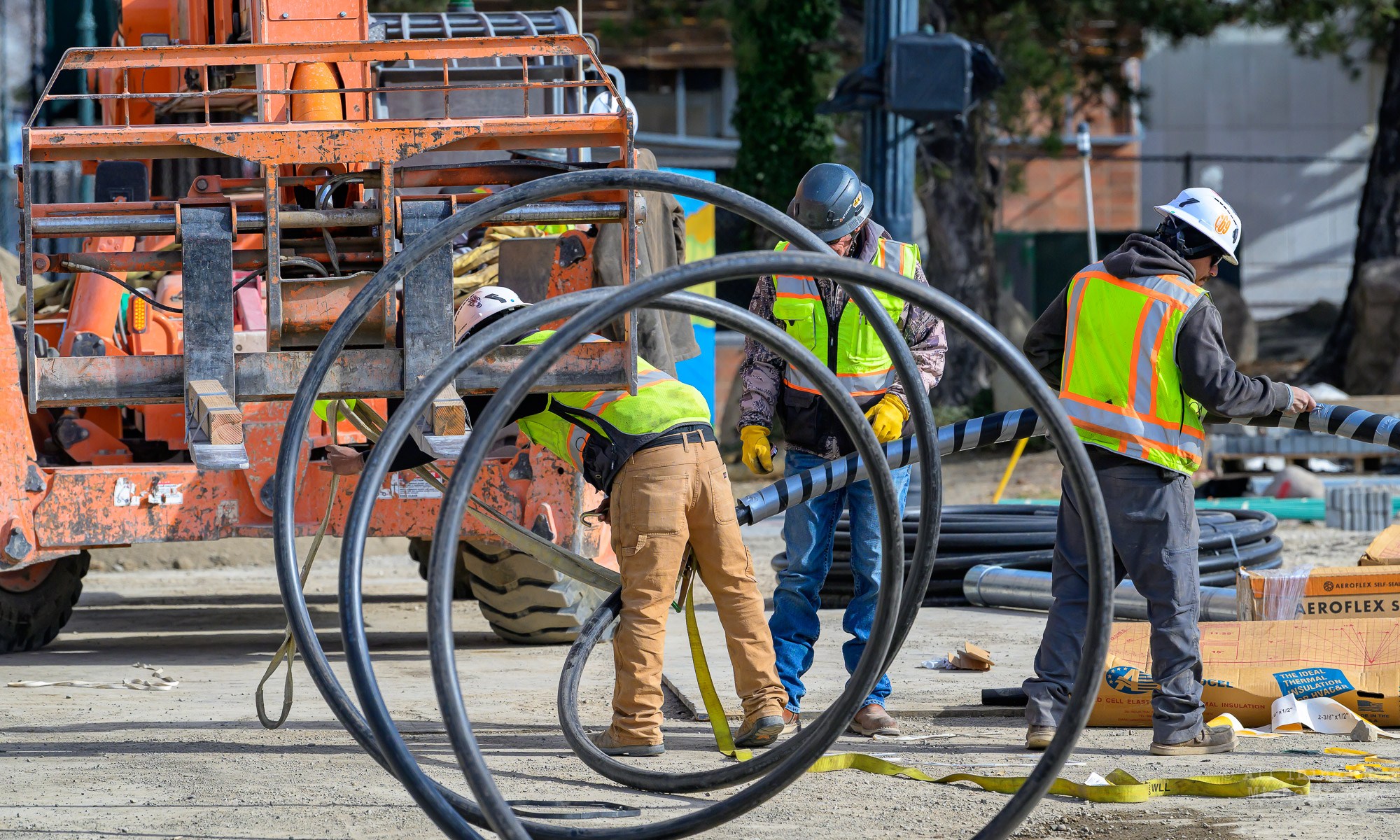 Work continues on the storm drain on the South bridge and plastic water lines are being fished through the North bridge girders.