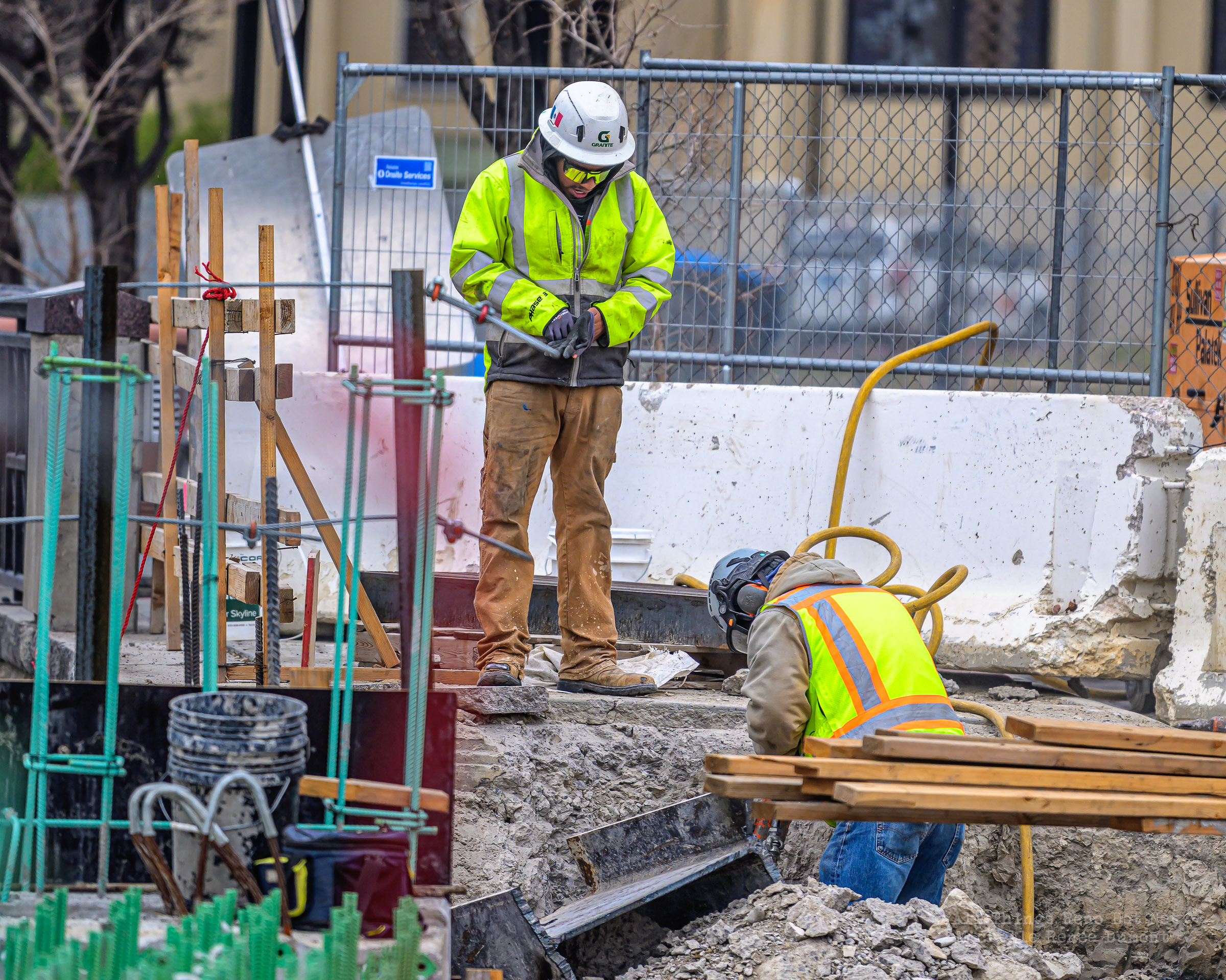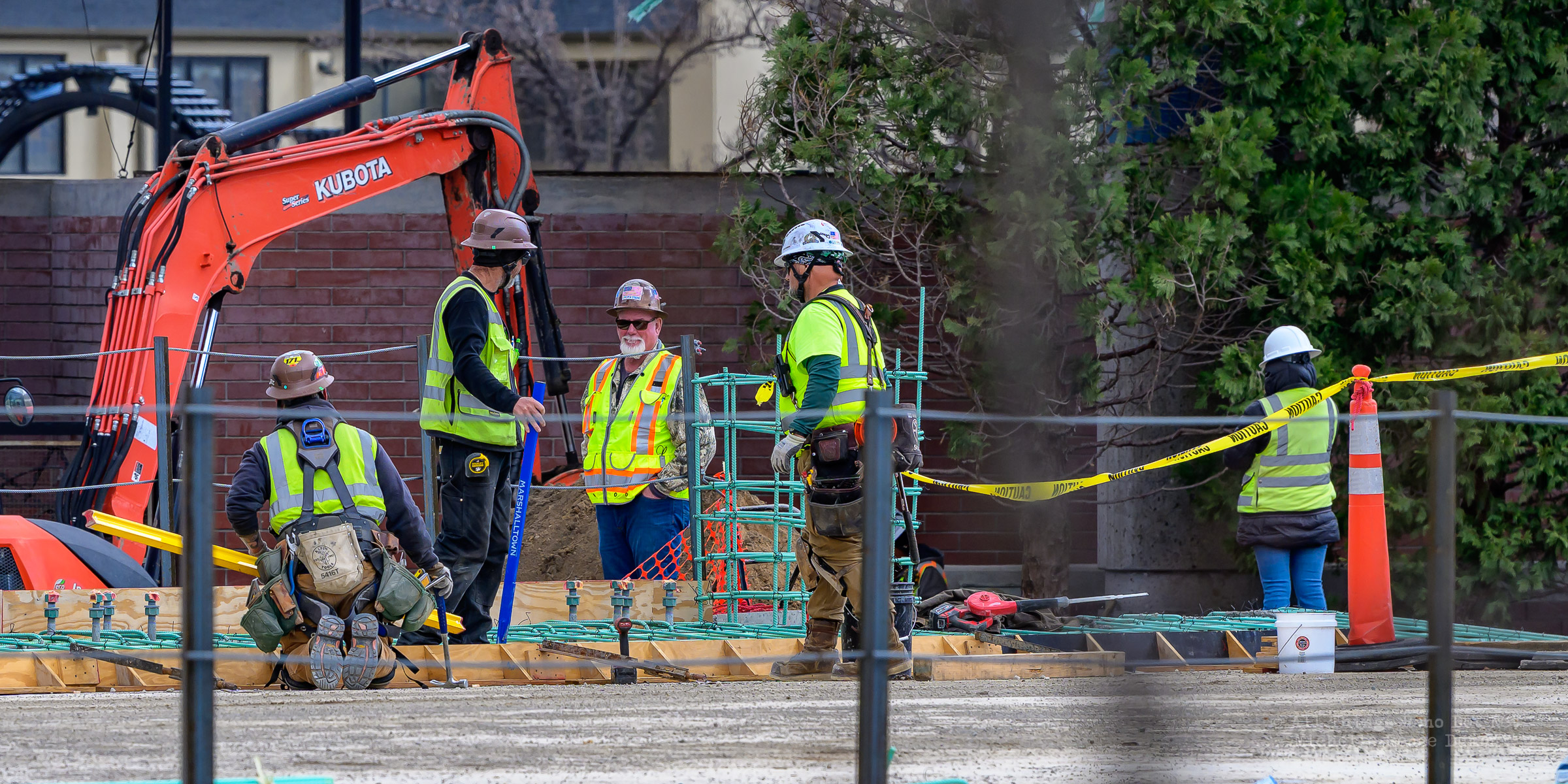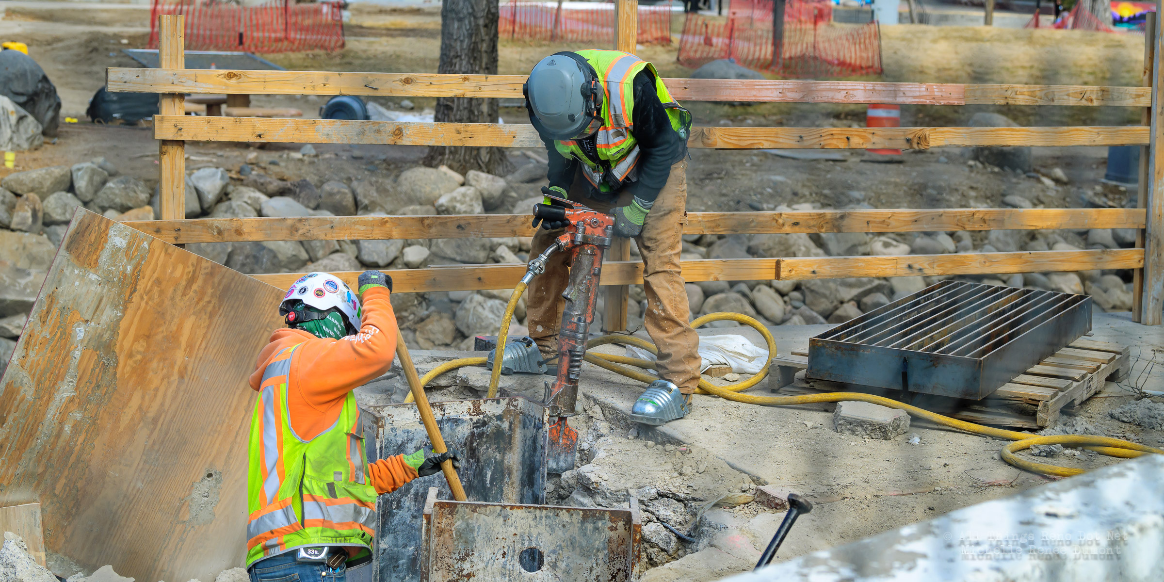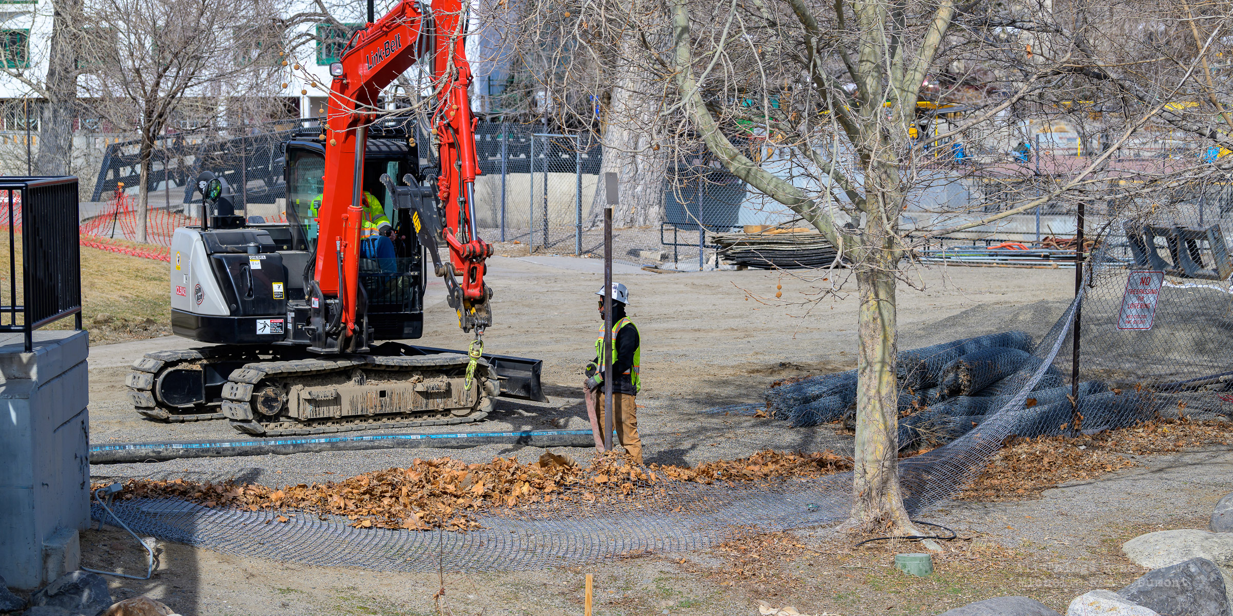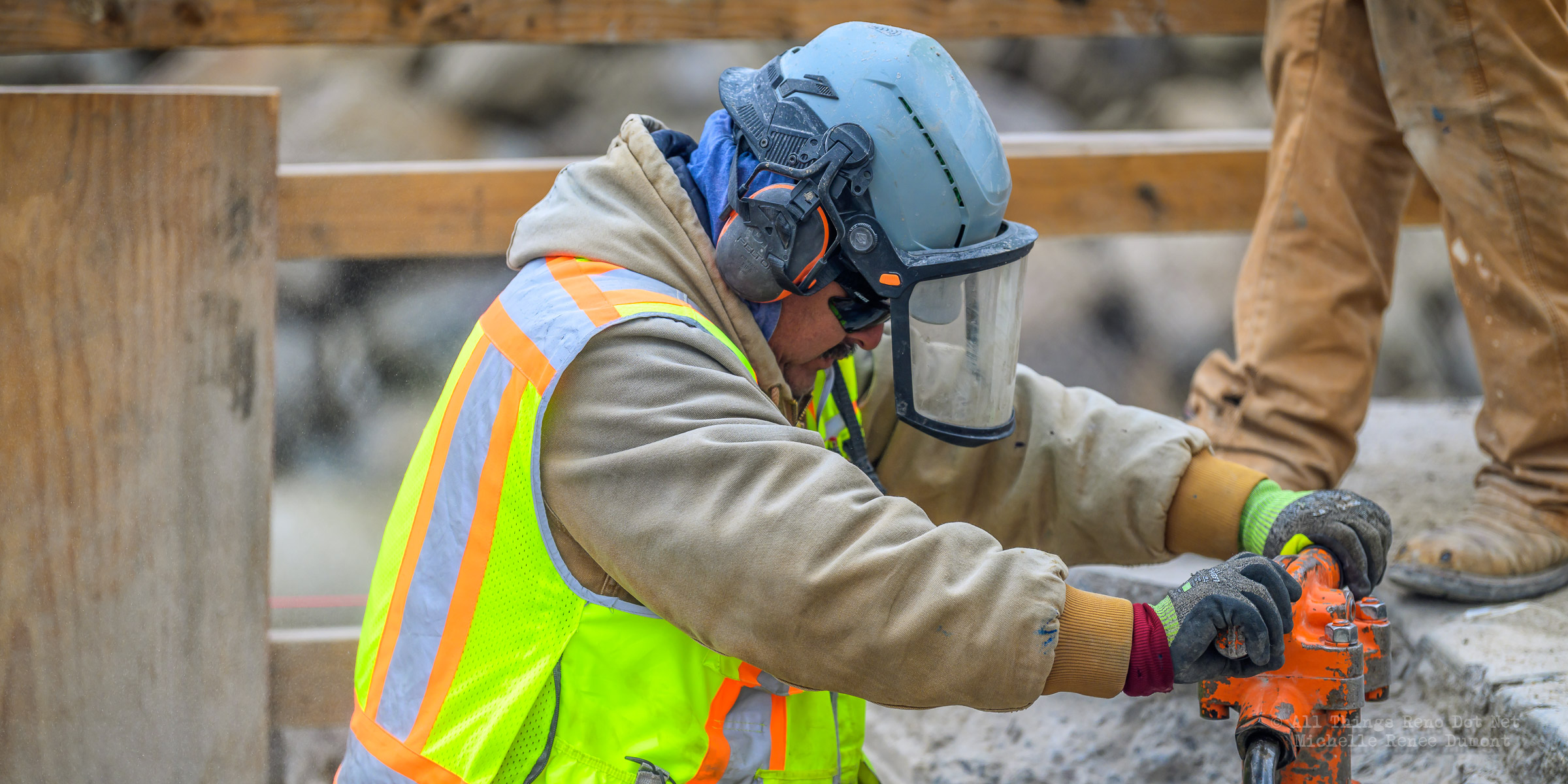 The construction project continues with the pouring of concrete on the walkway leading under the main bridge and the cutting down of the final I-beams that were used to shore up the soil on the southern bridge. The I-beams had to be cut down by 3 feet to prevent them from protruding through the roadbed over time.