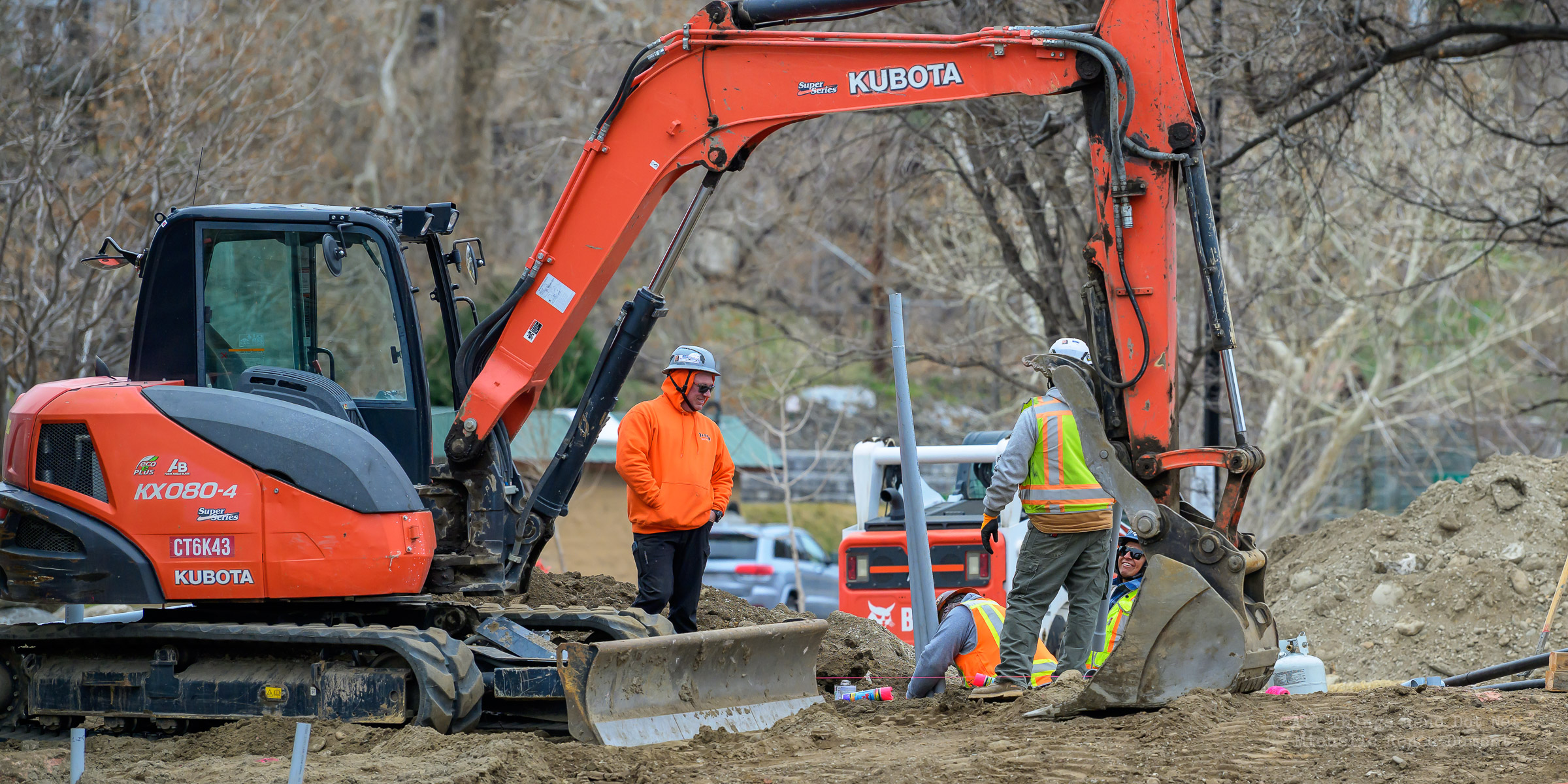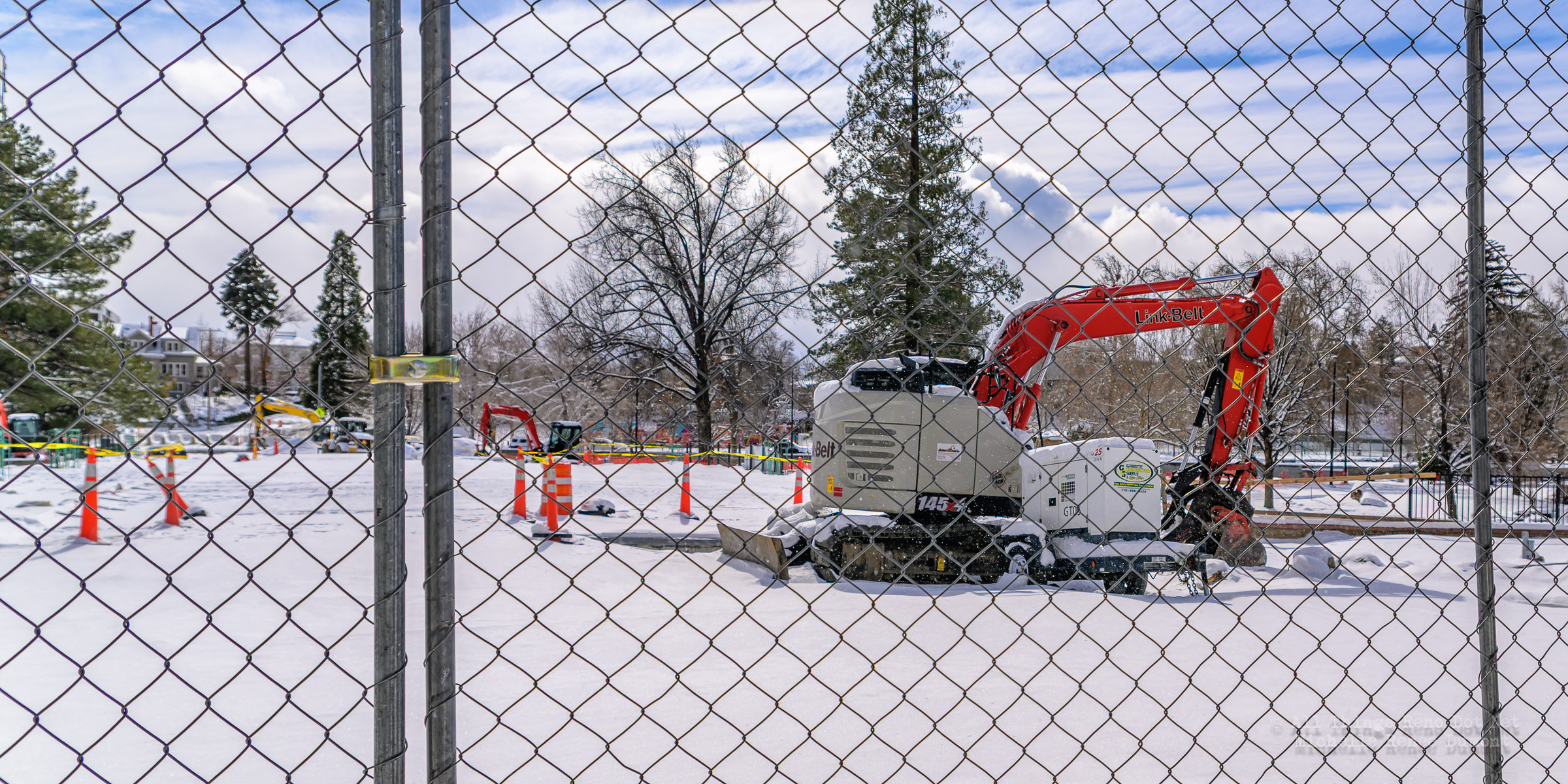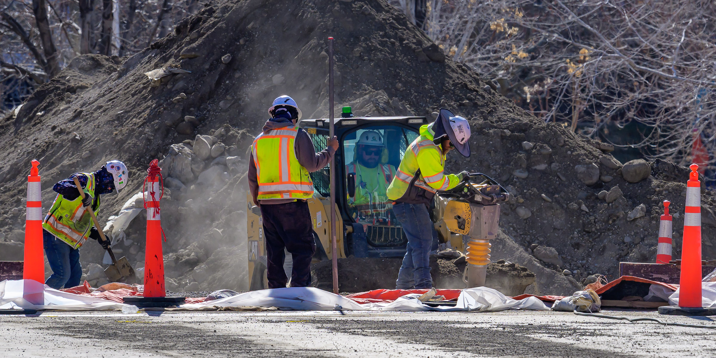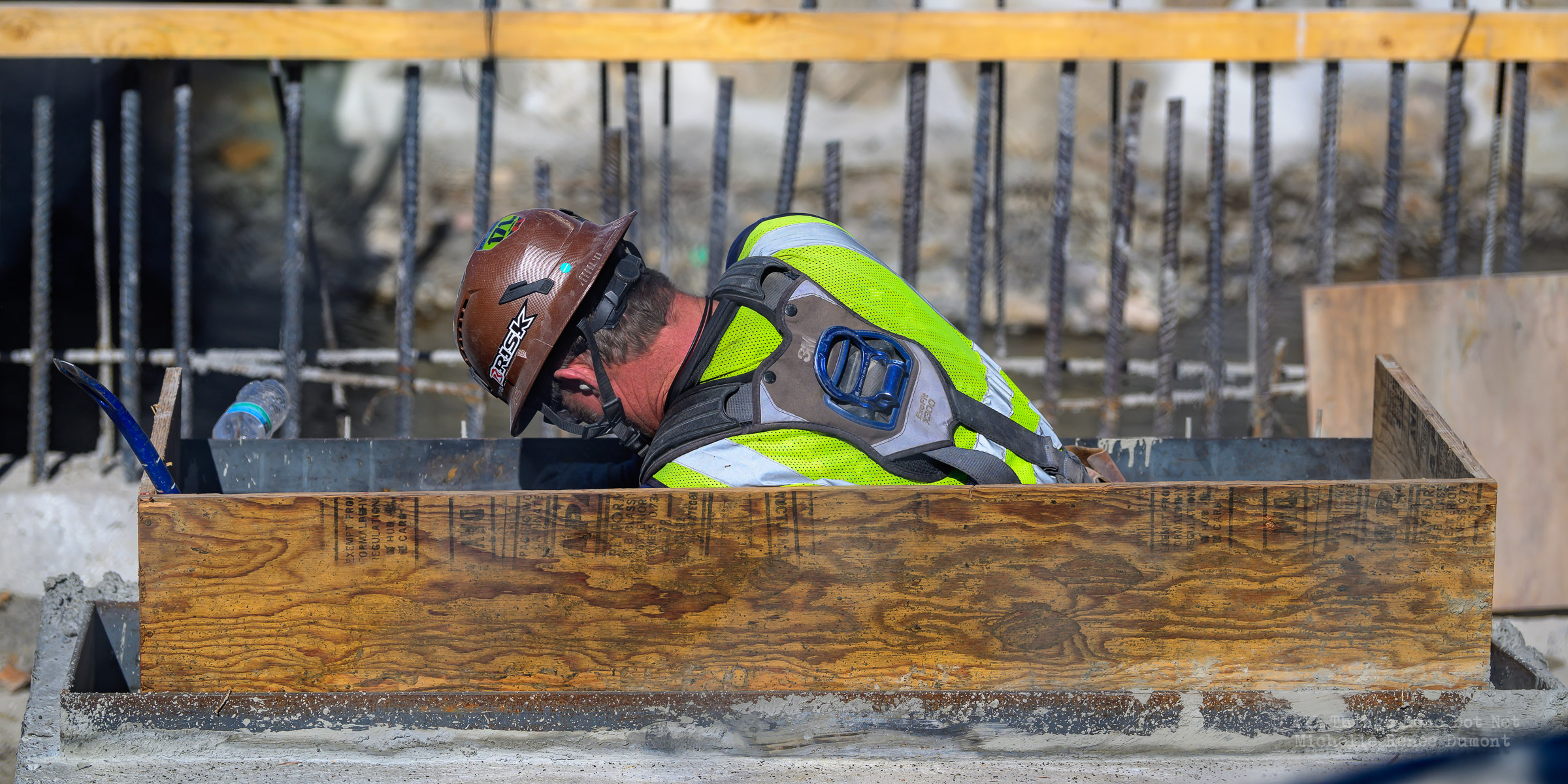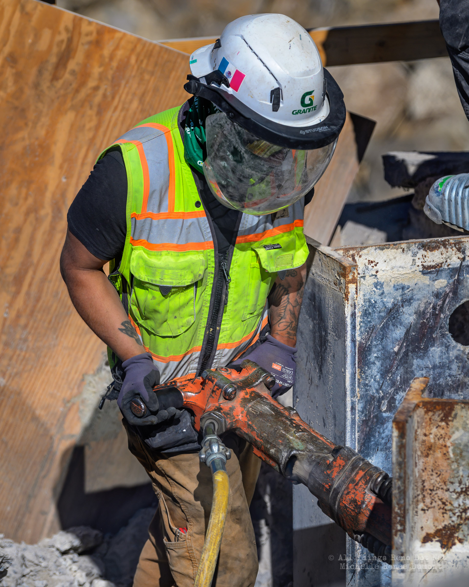 The construction project continues with the pouring of concrete on the walkway leading under the main bridge and the cutting down of the final I-beams that were used to shore up the soil on the southern bridge. The I-beams had to be cut down by 3 feet to prevent them from protruding through the roadbed over time.