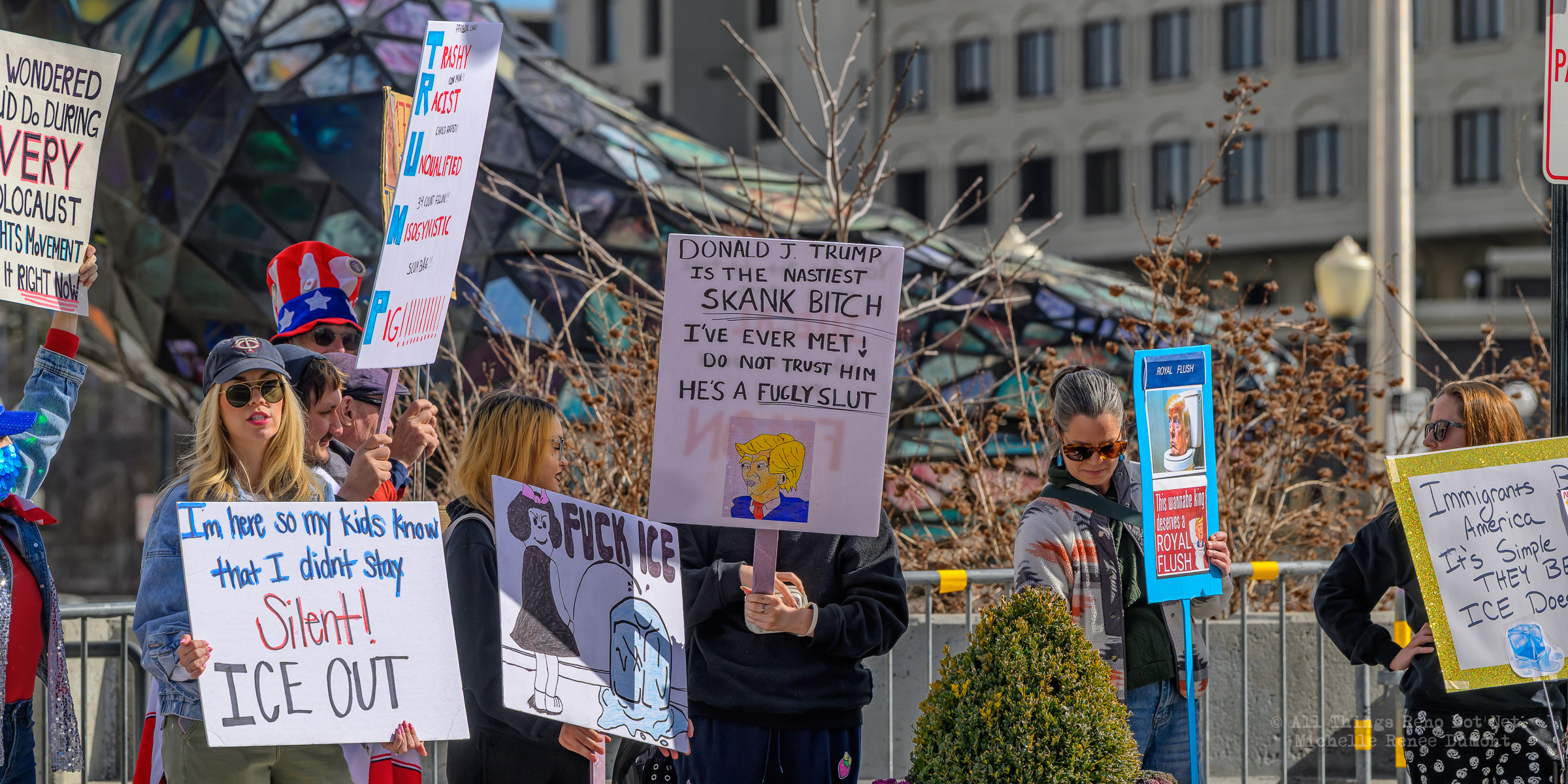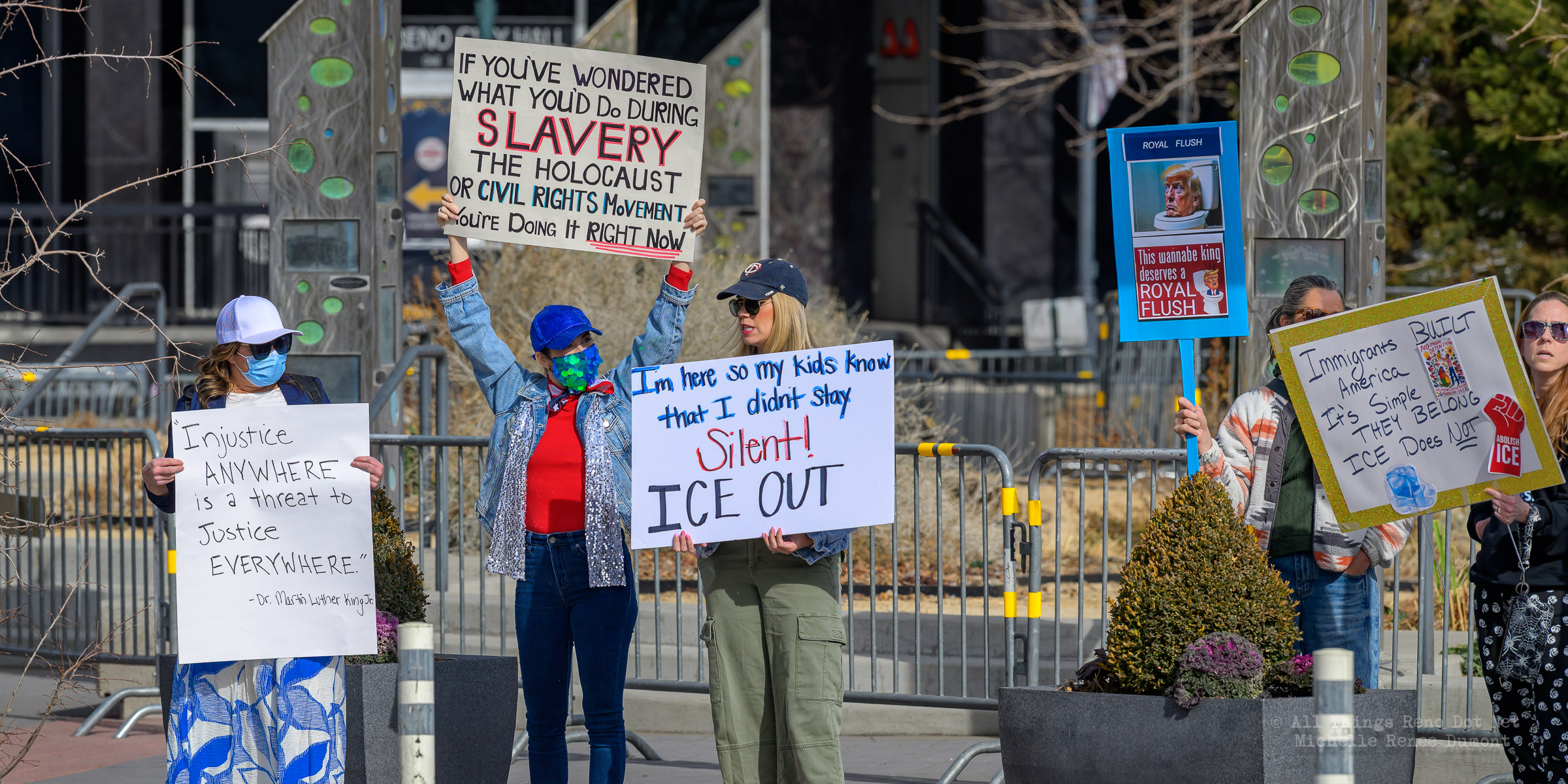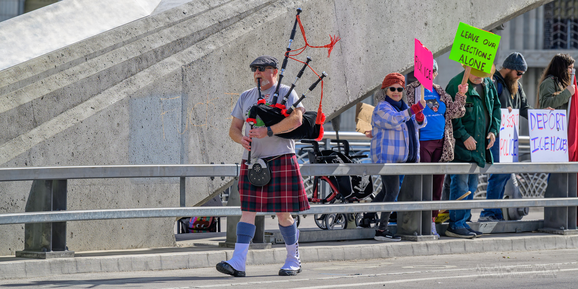 We had another Ice protest downtown, where I estimate about a hundred angry Seniors gathered on the plaza across from City Hall to demonstrate their displeasure with the Trump administration and the DHS tactics of disappearing people without as much as an arrest warrant. I say “angry Seniors” because Law Enforcement warned protesters in a presser to keep their protests respectful and peaceful, or else. I’m sure those crazy Seniors attending today’s protest took that warning to heart. But there was a police presence, just in case, to ensure a peaceful event.